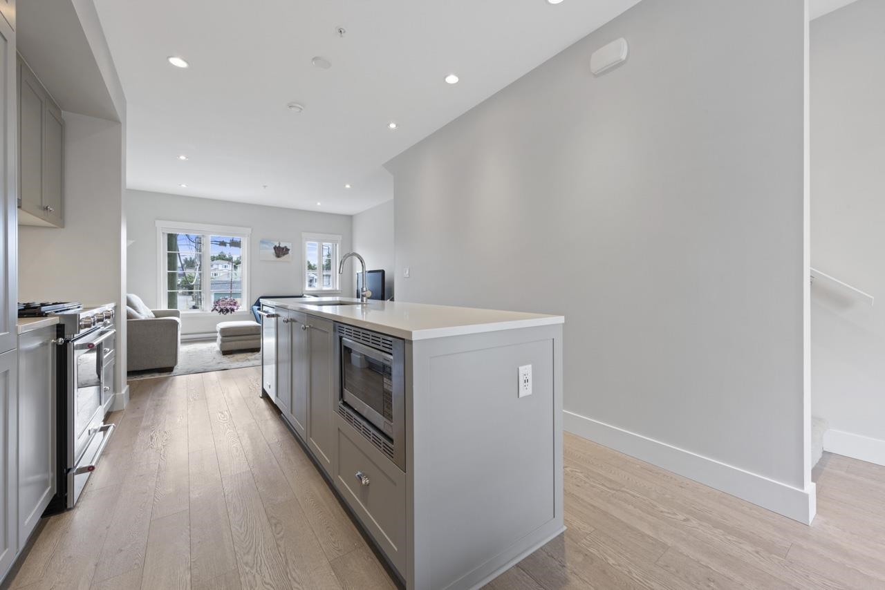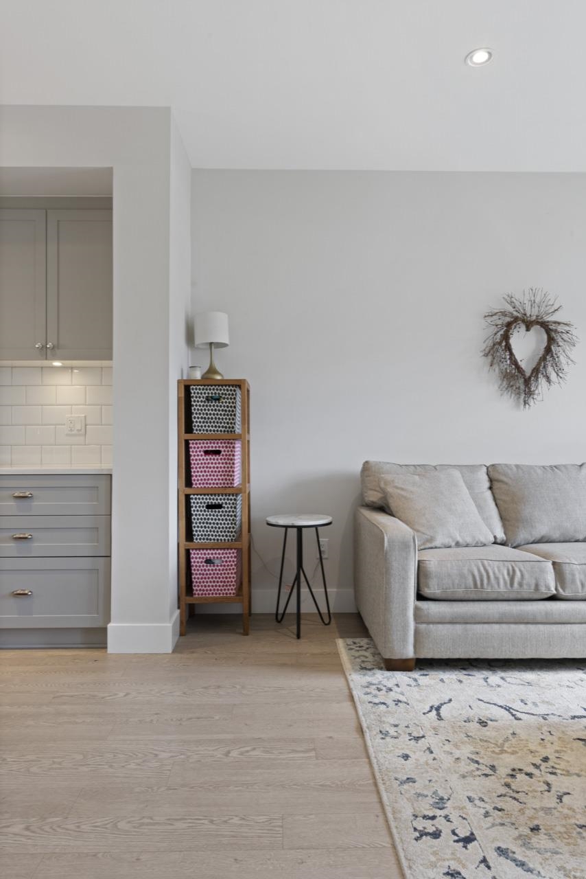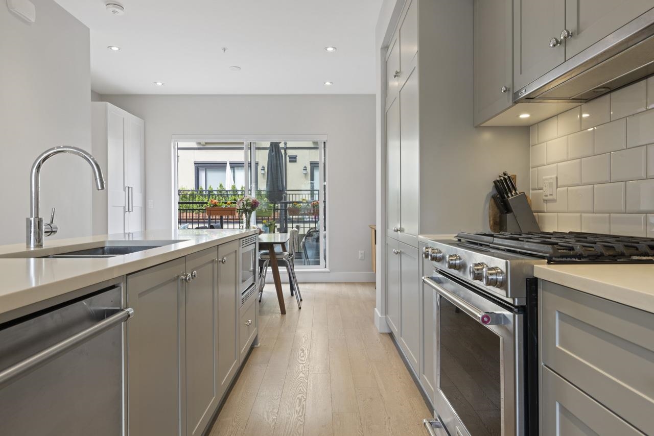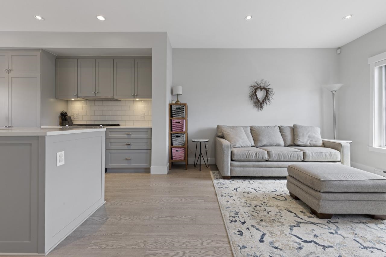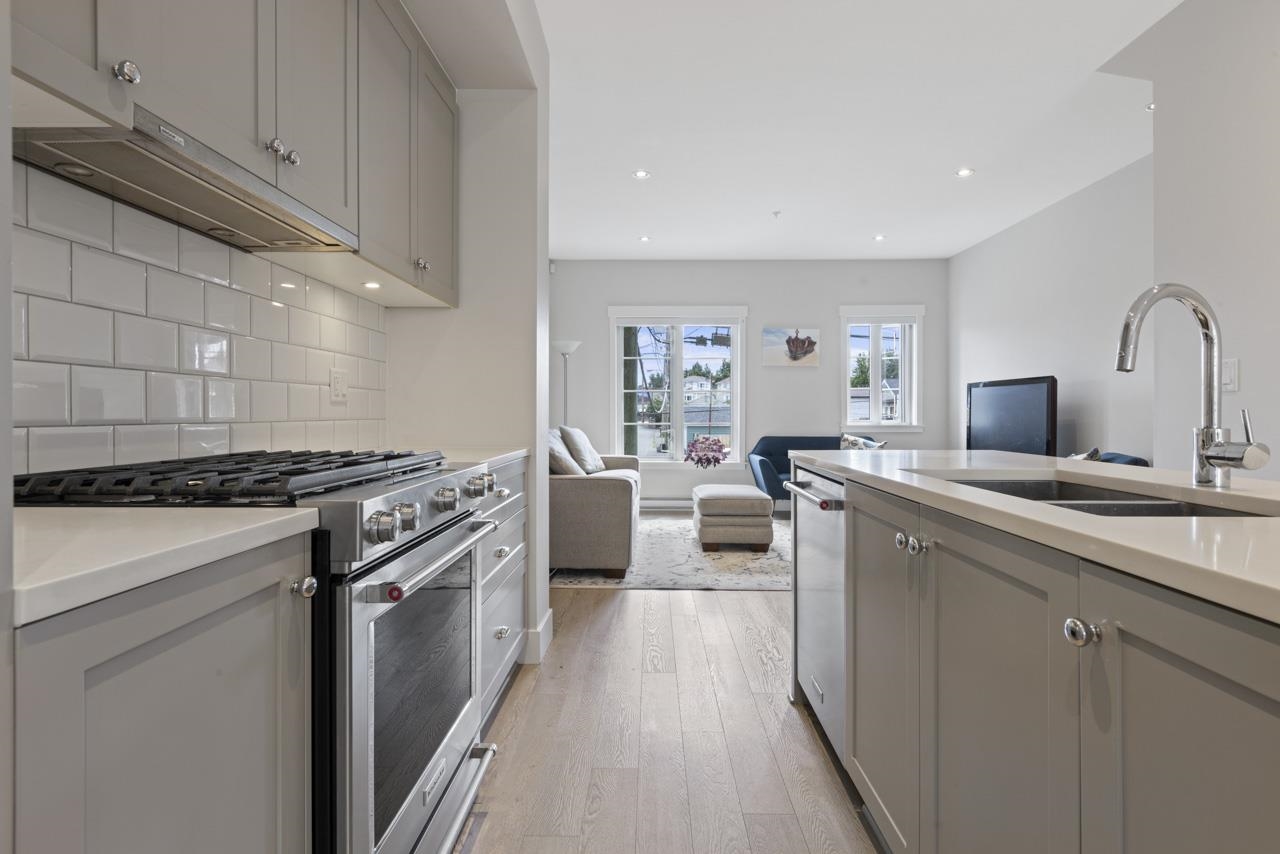 Tucked away on the quiet back side of this solid attractive complex is this well-appointed townhome. A thoughtful Floorplan with 3 bedrooms, 3 full bathrooms & oversized attached private garage make this the perfect home for young families or professionals needing a great WFH set up. The entry level has 1 bedroom, full bathroom & garage access. The main has a dazzling kitchen with integrated appliances, gas range & island saddled by the spacious living area & dining with access to a sunny balcony. Upstairs has 2 bedrooms w/ vaulted ceilings, 2 full baths including the primary w/ ensuite & California closets. Super central with Kingcrest and Kensington parks, Selkirk Annex & all that King Ed Village has to offer just a short stroll away, this is an opportunity that should not be missed.