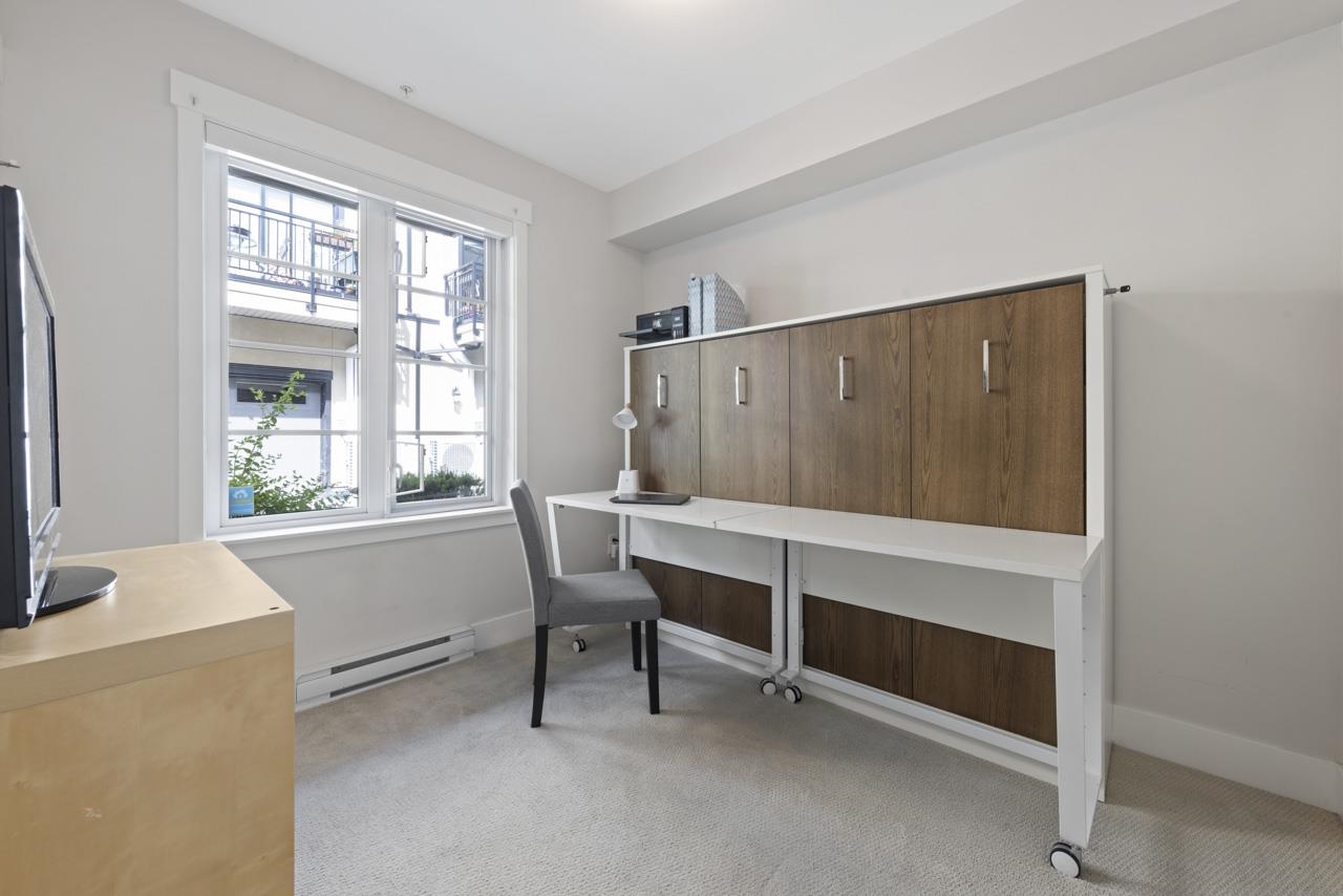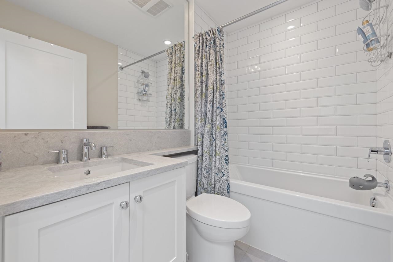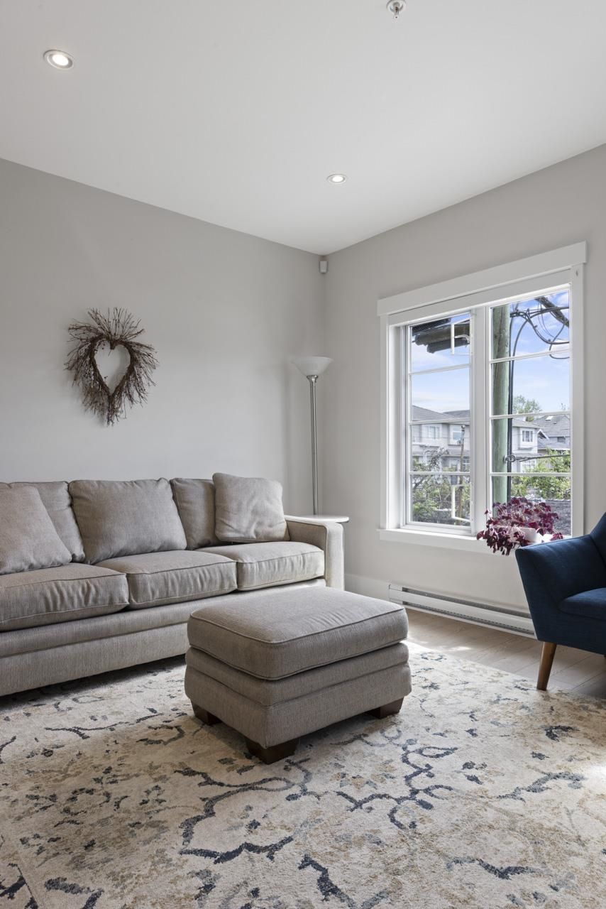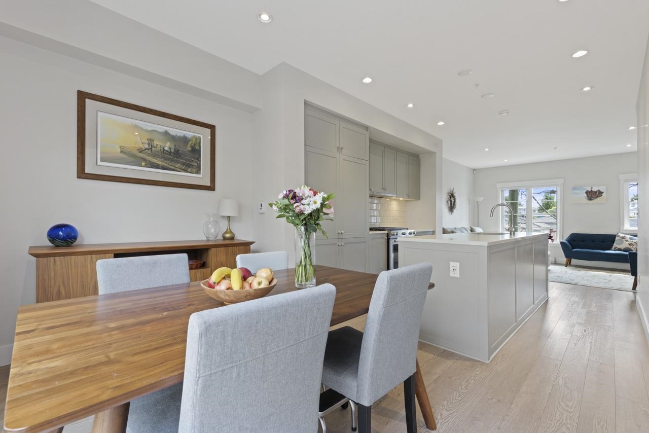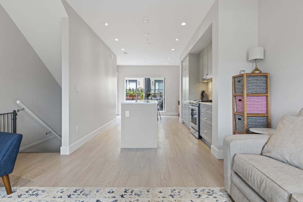 Tucked away on the quiet back side of this solid attractive complex is this well-appointed townhome. A thoughtful Floorplan with 3 bedrooms, 3 full bathrooms & oversized attached private garage make this the perfect home for young families or professionals needing a great WFH set up. The entry level has 1 bedroom, full bathroom & garage access. The main has a dazzling kitchen with integrated appliances, gas range & island saddled by the spacious living area & dining with access to a sunny balcony. Upstairs has 2 bedrooms w/ vaulted ceilings, 2 full baths including the primary w/ ensuite & California closets. Super central with Kingcrest and Kensington parks, Selkirk Annex & all that King Ed Village has to offer just a short stroll away, this is an opportunity that should not be missed.