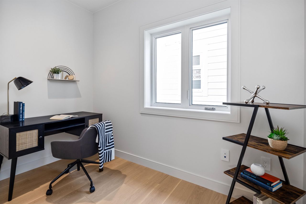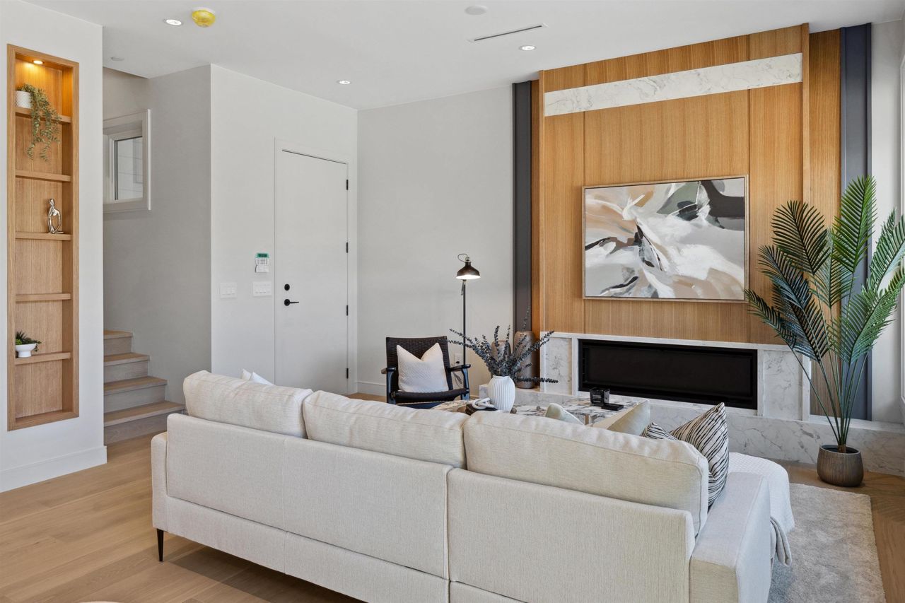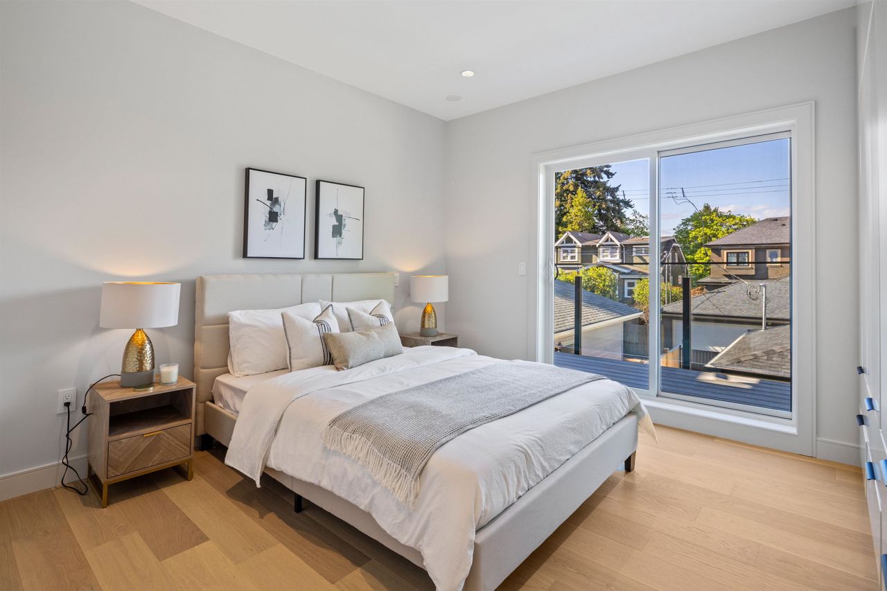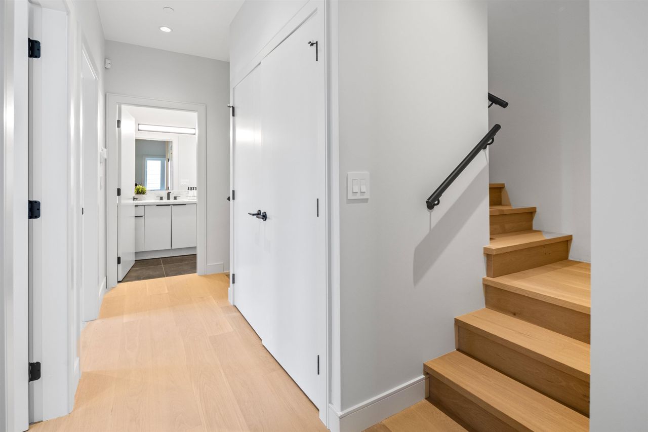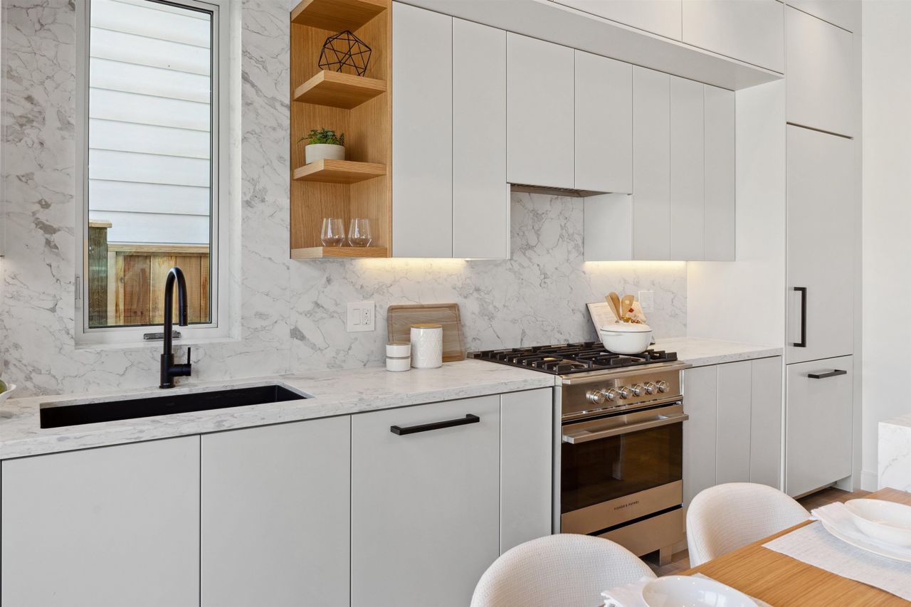 Rear Quiet Unit with Private Backyard and Gorgeous Northshore Mountain View! Rare contemporary 3 bdrms, 2.5 bath Plus Den 1/2 duplex. Situated in the prime Point Grey neighborhood. features an open concept main floor with a sleek modern kitchen offering Fisher& Paykel built-in appliances, gorgeous millwork, and high quality finishings. 10' high ceilings and oversized windows allow for an abundance of light and a view of the surrounding greenery. The efficient floor plan allows for 3 bedrooms, 2 baths and open den on the upper two floors with large built functional cabinets and large patio doors for each bedroom. Bonus: 1 car garage plus 1 open carport space!, 622 s.q . crawl space for storage!OPEN HOUSE Sunday( June 8 ) 2-4 p.m.
