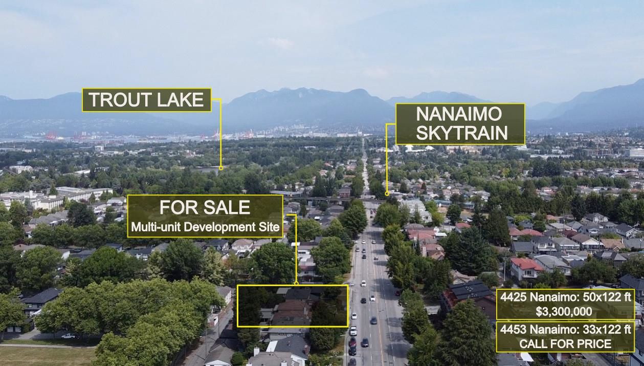 DEVELOPMENT SITE - Multifamily development site (a mix of duplexes, infill homes, possibly more) - STEPS from Nanaimo SKYTRAIN station, TROUT Lake/John Hendry Park and COMMERCIAL drive. Tenanted - please do not walk on property. Measurements approximate. Please check with City of Vancouver to confirm size and development potential. Gladstone Secondary, parks, elementary schools, restaurants on Commercial drive all within walking distance. Excellent family neighbourhood with tons of growth potential.