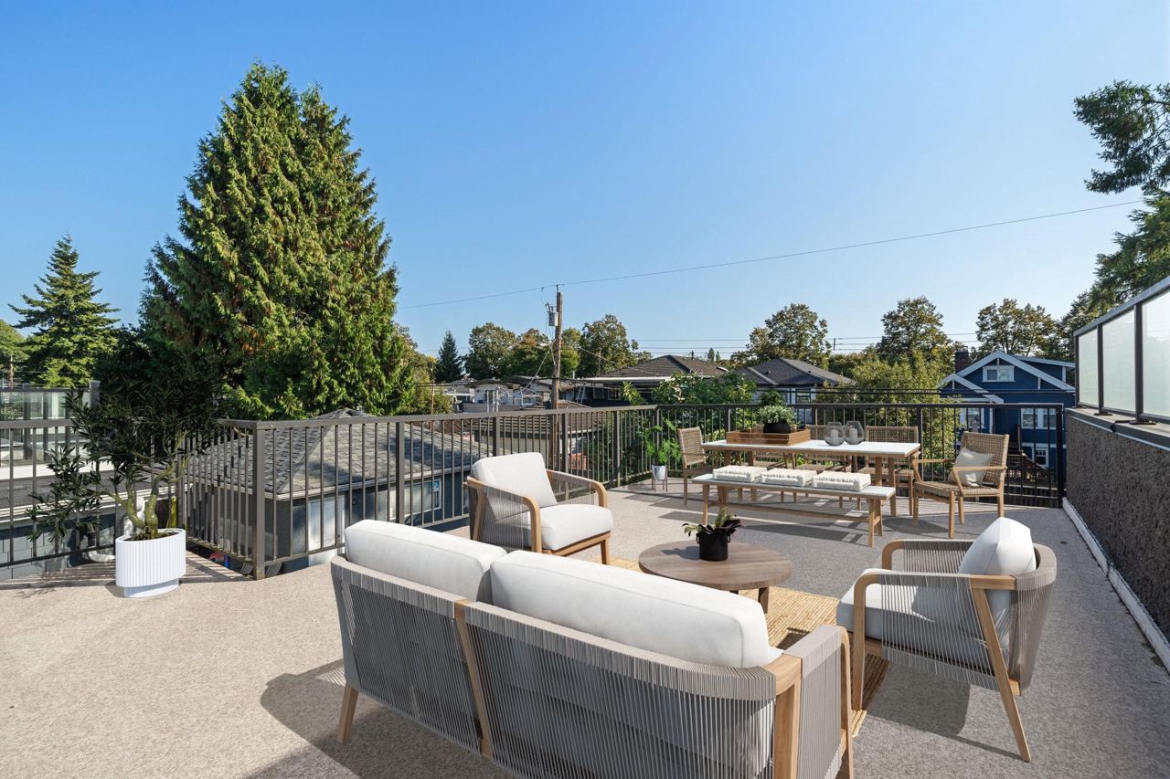 Welcome to this spacious 1875SF 1/2 Duplex with Mortgage helper on a wide lot located walking distance to Main Street & Fraser Street! This 4 Bedroom/ 4 Bathroom home has an open concept living, great for entertaining. Enjoy summer BBQs on the huge 500SF, sunny South facing patio upstairs, a backyard perfect for your pets plus a front yard. Features include wood cabinetry, gas fireplace, radiant heating throughout. Flexible floor plan features 1 bedroom or studio suite (Air B&B or monthly) or use as office or dining space. Huge bedrooms, over-height ceiling on both floors and laundry upstairs, Centrally located, close to transit, Florence Nightingale Elementary, Charles Tupper Secondary. This one feels like home, with low maintenance. https://youtu.be/An3ugGIIotw
