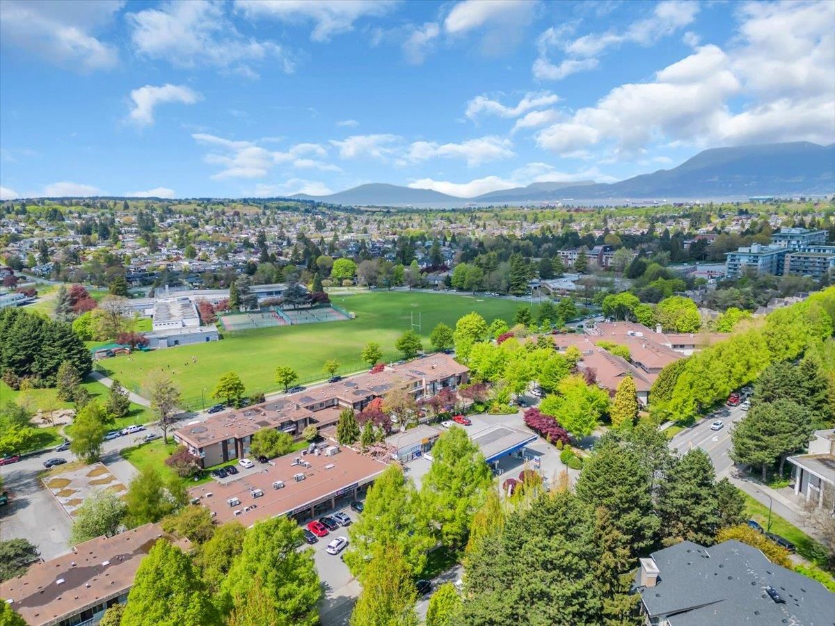 Marguerite House, a luxury concrete building by Polygon in Vancouver's Westside. This penthouse is located right next to the peaceful and luscious Quilchena park- find yourself living with calm and tranquility in this state of the art building. This family friendly neighborhood is nestled amongst many curated parks and some of the most well known schools like Crofton and St Georges. This rare unit features a spacious living arrangement with 10 foot ceilings and windows that stretch across the whole unit inviting lots of bright and natural light. With over 300 sqft of patio space- you can enjoy the west facing exposure, sunbathing privately or having a cook out with the family. This unit has A/C as well, so you can enjoy the sun without the heat! Two car parking in private gated spaces.