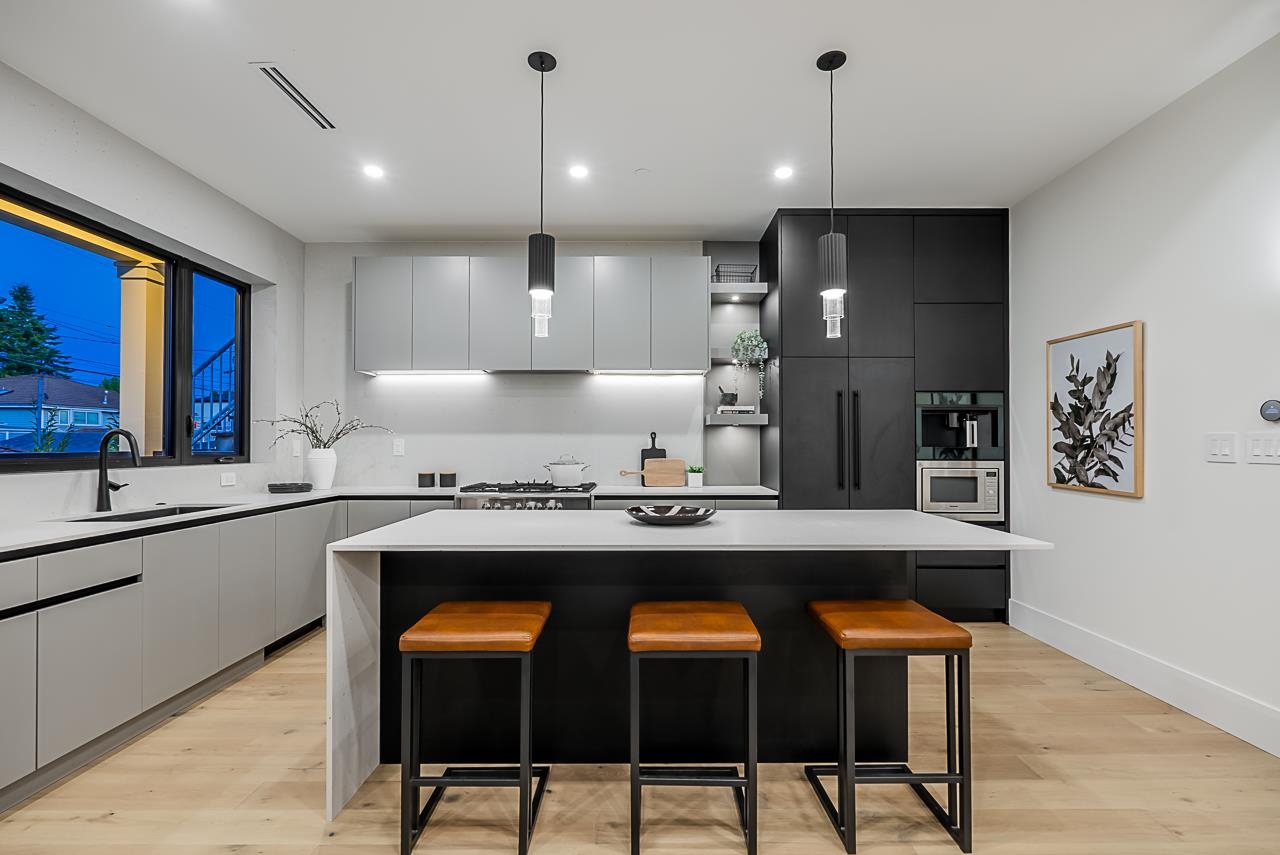 Immaculate artistry illustrates this stunning FRASERHOOD home featuring high ceilings and exquisite finishing details, proudly built by MEDALLION HOMES. The main floor has an open concept of liv, din, family room, and kit finished with Fisher Paykel appliances, and a built-in COFFEE MAKER. Upstairs features 3 bedrooms with high vaulted ceilings, basement includes MEDIA ROOM and OFFICE, in addition, you will find a LEGAL 1 BED SUITE. Entertain outside in your private dream backyard with a DECK off the main floor, with built-in OUTDOOR FIREPLACE and BBQ. The bottom patio has an outdoor BUILT-IN BBQ. The DOUBLE GARAGE is probably one of the nicest garages I have seen in recent years, with HIGH VAULTED CEILINGS, additional 500 lbs METAL STORAGE RACKS, EPOXY on the floor, and EV READY to go.