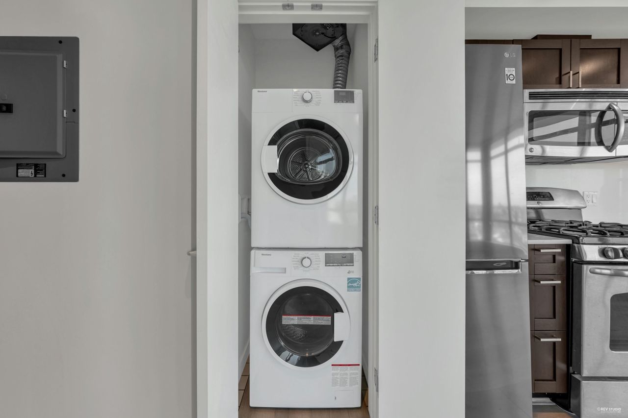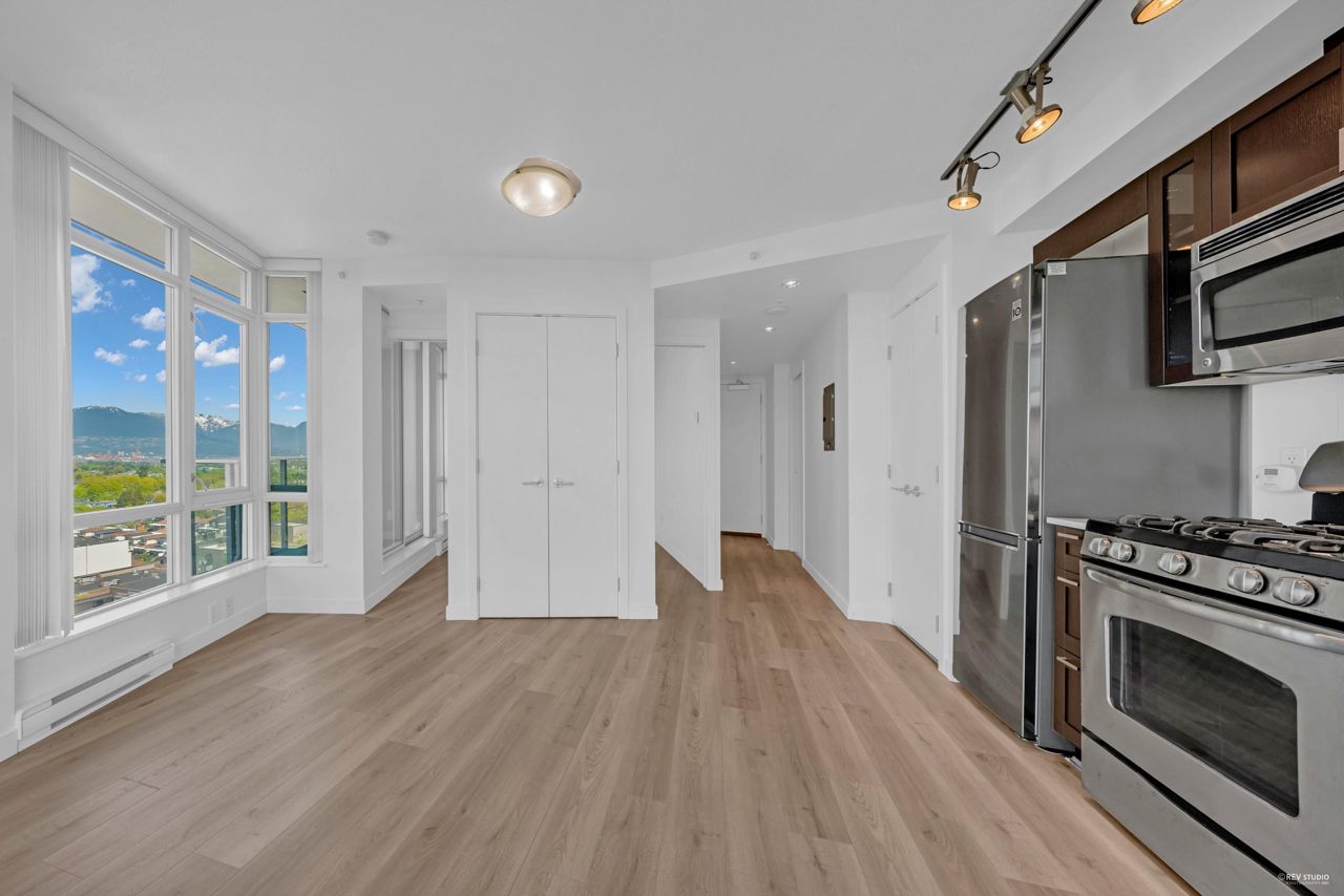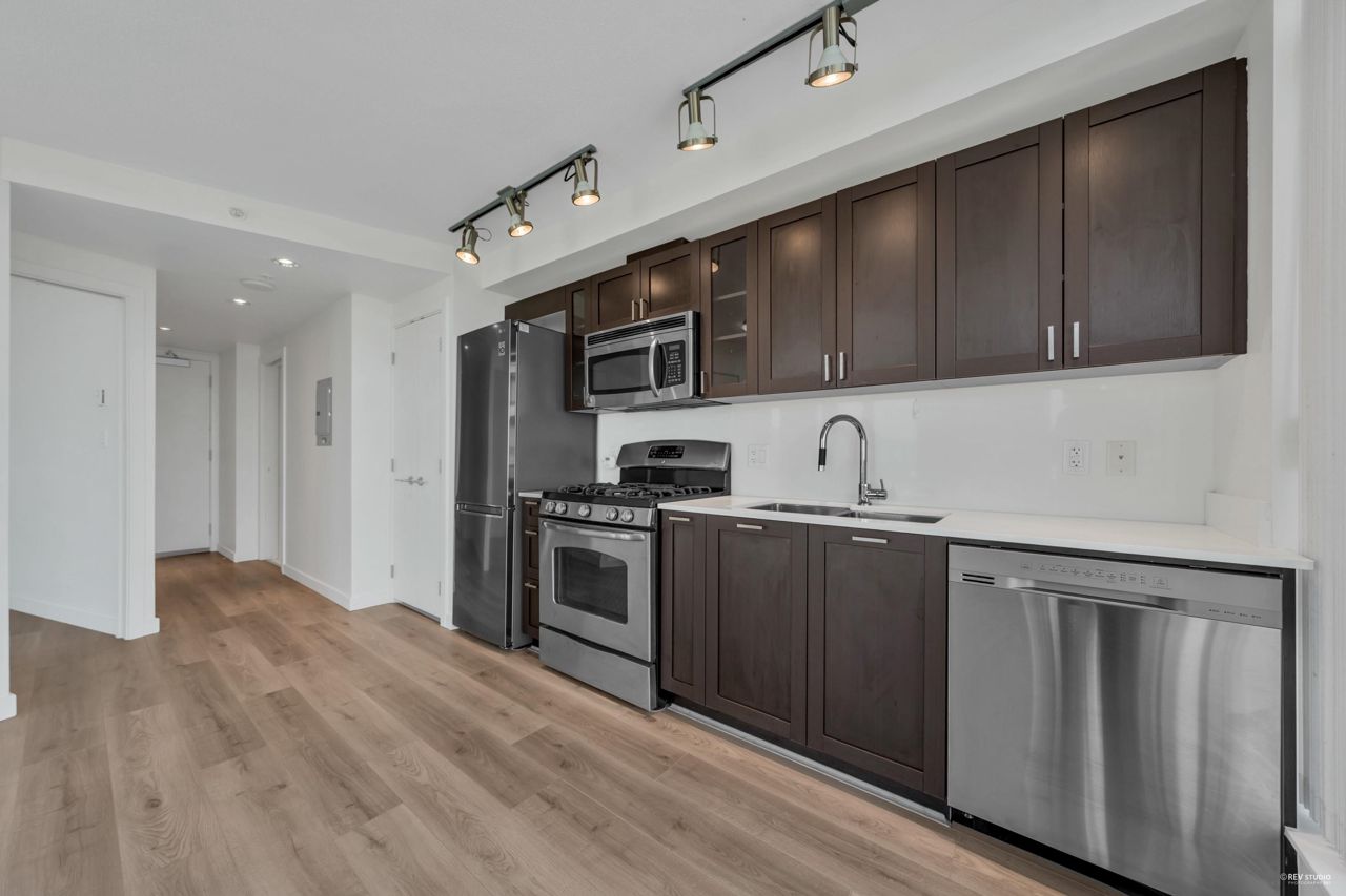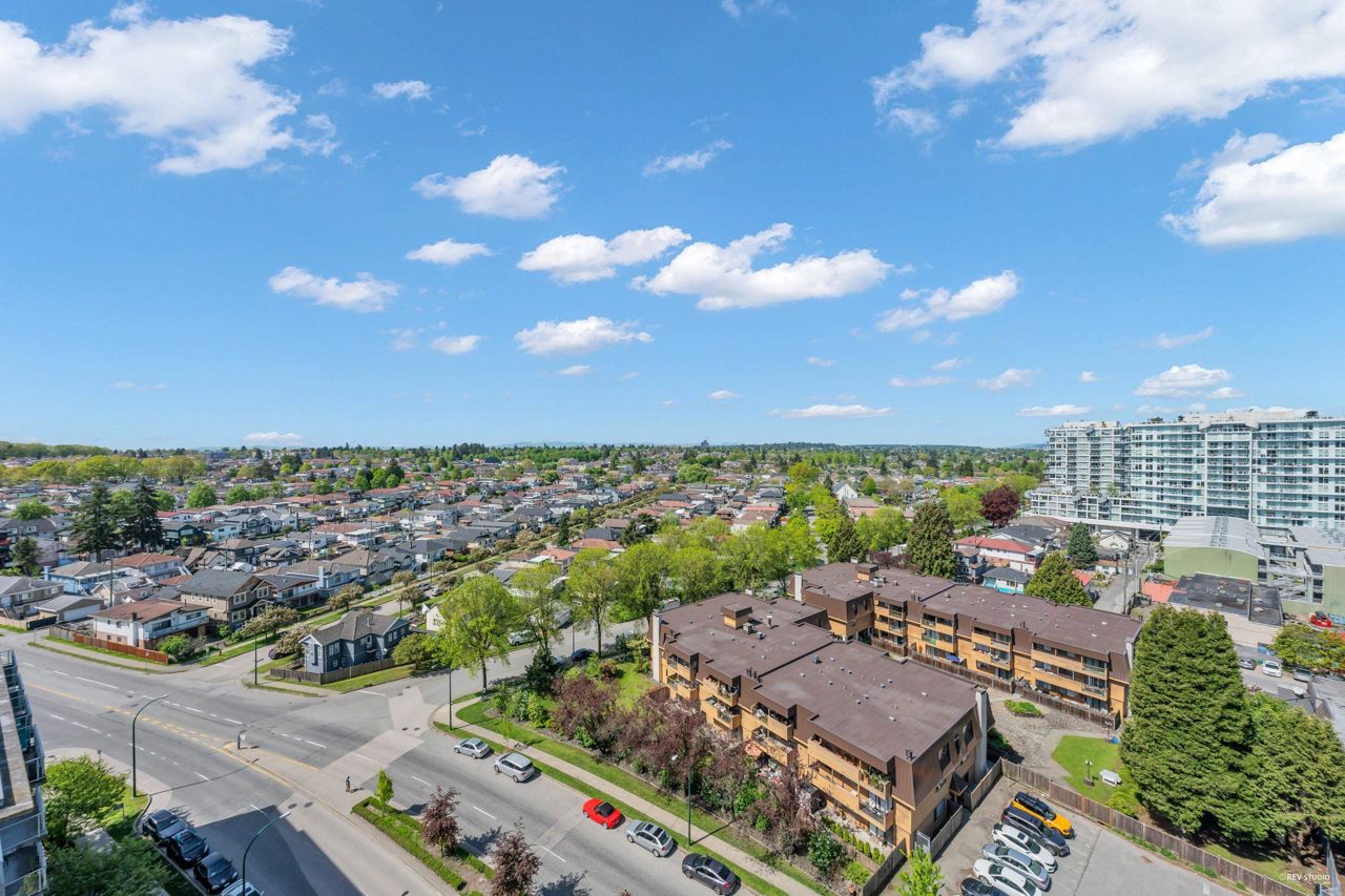Don't miss this excellently laid out corner 1 bed home! Featuring gorgeous gourmet chef's kitchen w/granite countertops, SS appliances, fully tiled spa-like bathroom & beautiful laminate flooring, very efficient floor plan. Relax on your own private balcony overlooking the city. Building Amenities including well equipped fitness centre, amenity/games room, meeting rooms & a fantastic rooftop terrace! You simply cannot beat this PRIME LOCATION, just a short drive to downtown, Richmond, Burnaby & Metrotown for all your shopping, dining & entertainment needs. 1 parking & 1 storage locker included. Perfect for investors or first time home buyer! Open House May 20th & 21st 2:00 - 4:00 p.m.