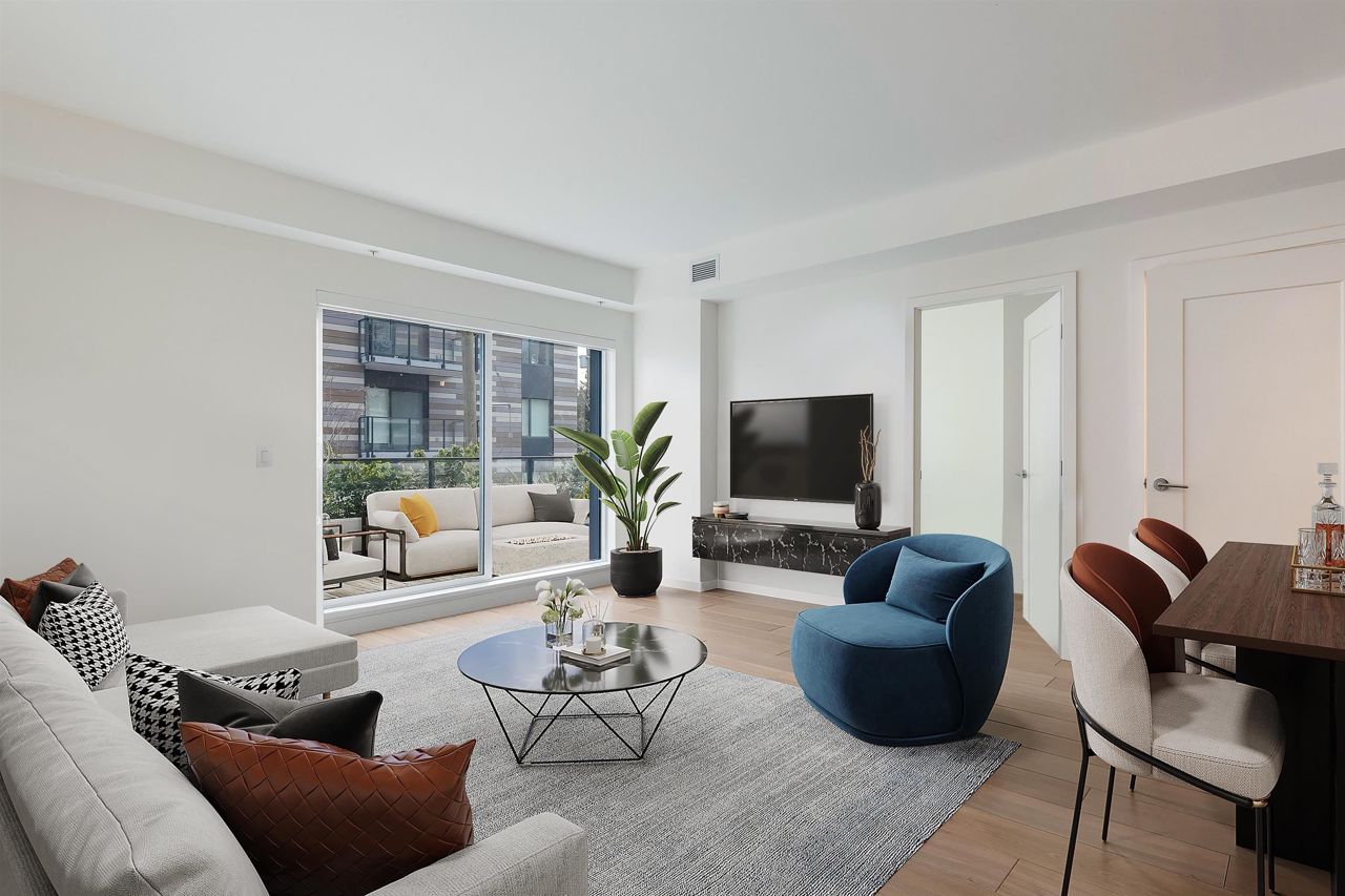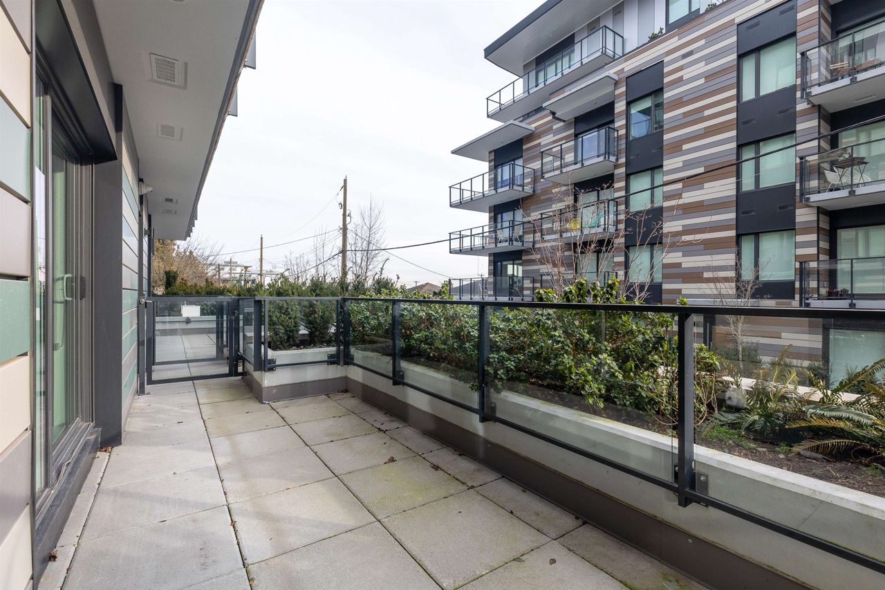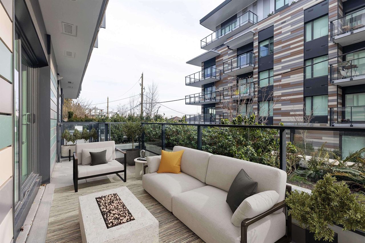 Welcome to PARK HOUSE--luxury boutique living designed by award-winning FRANCL Architecture. This ultra-spacious 1 Bed + Den ground-level suite features an open floor plan, airy 9’ ceilings, A/C, sleek engineered hardwood flooring throughout & a generously-sized 139 sqft private patio with separate entrance. Kitchen offers high-end Miele appliances, Italian Scavolini cabinetry & Caesarstone countertops with waterfall edge on the kitchen island. 1 parking stall included. Great location! Located just off of Cambie and bordered by Winona Park & Langara Golf Course. Close to Langara-49th Avenue Skytrain Station on the Canada Line, Marine Gateway, Oakridge Centre, Langara College, Churchill Secondary & so much more!