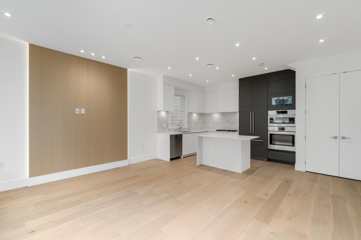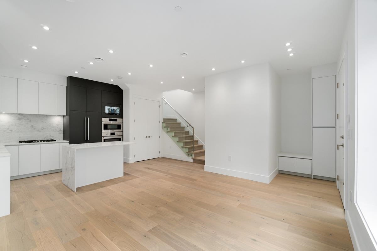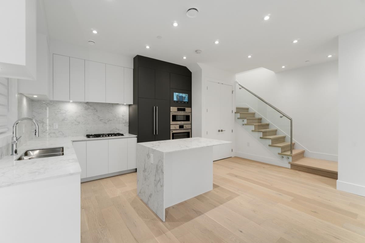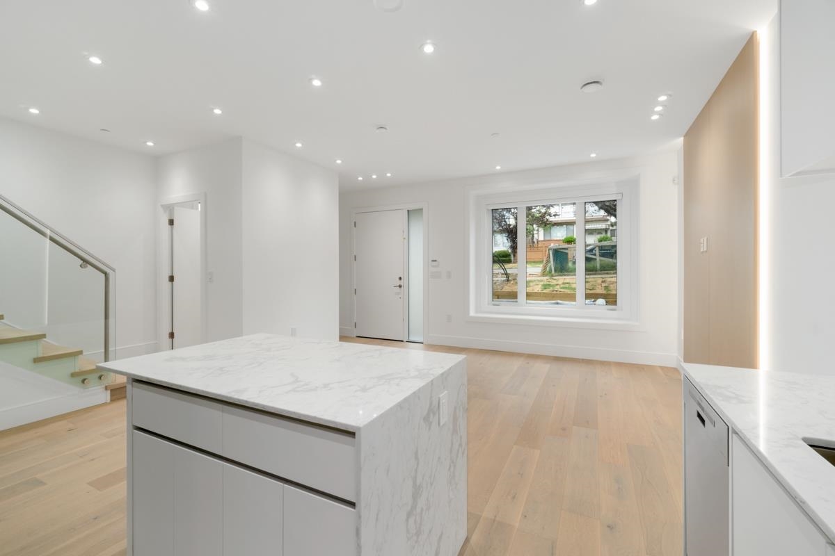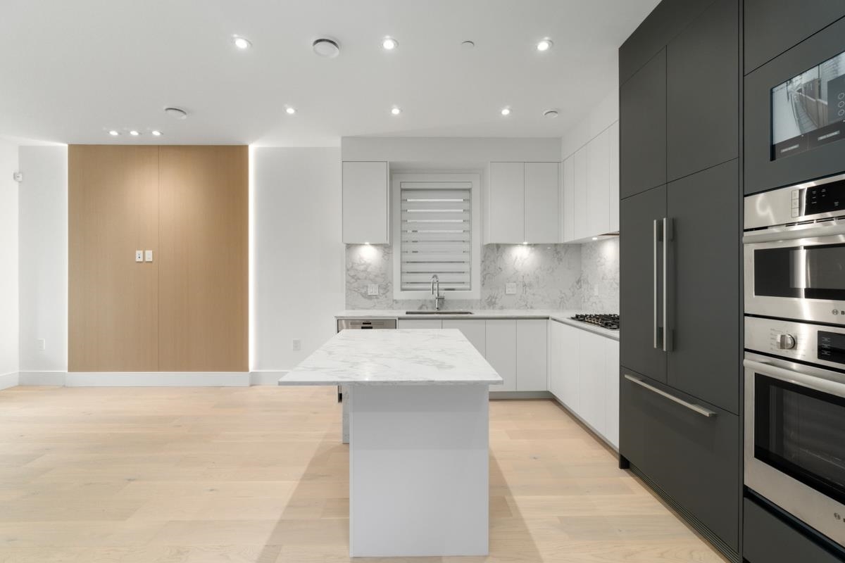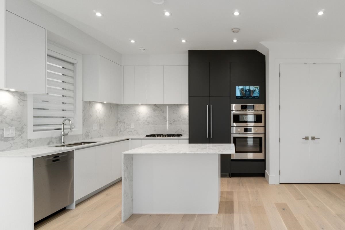 Welcome to the front unit of 50 East 58th Avenue, a stunning brand new contemporary duplex offering luxurious living in a prime location. This exceptional home features 4 bds and 3.5 bath, including 2 primary bedrooms with ensuite, providing ample space and comfort for families of all sizes. Step inside to discover an open concept layout with a south-facing living room and dining room, creating a bright and inviting atmosphere. The gourmet kitchen is a chef's dream, equipped with high-end Bosch stainless steel appliances, sleek countertops, and ample storage space. Throughout all three floors and stairs, you'll find engineered hardwood flooring and a beautiful glass stair railing, adding a touch of elegance to the home. School Catchment Churchill Secondary