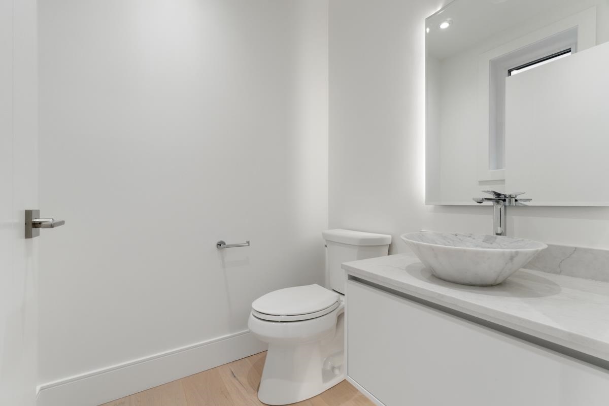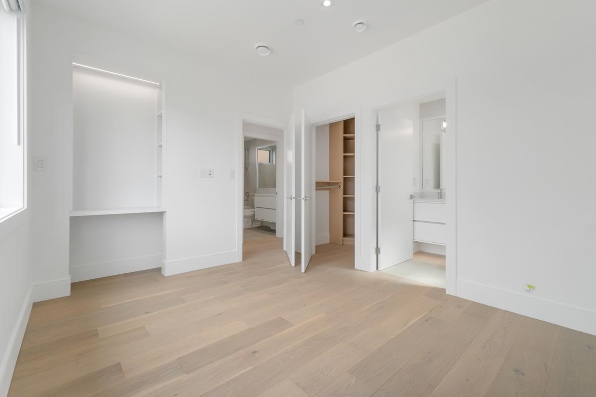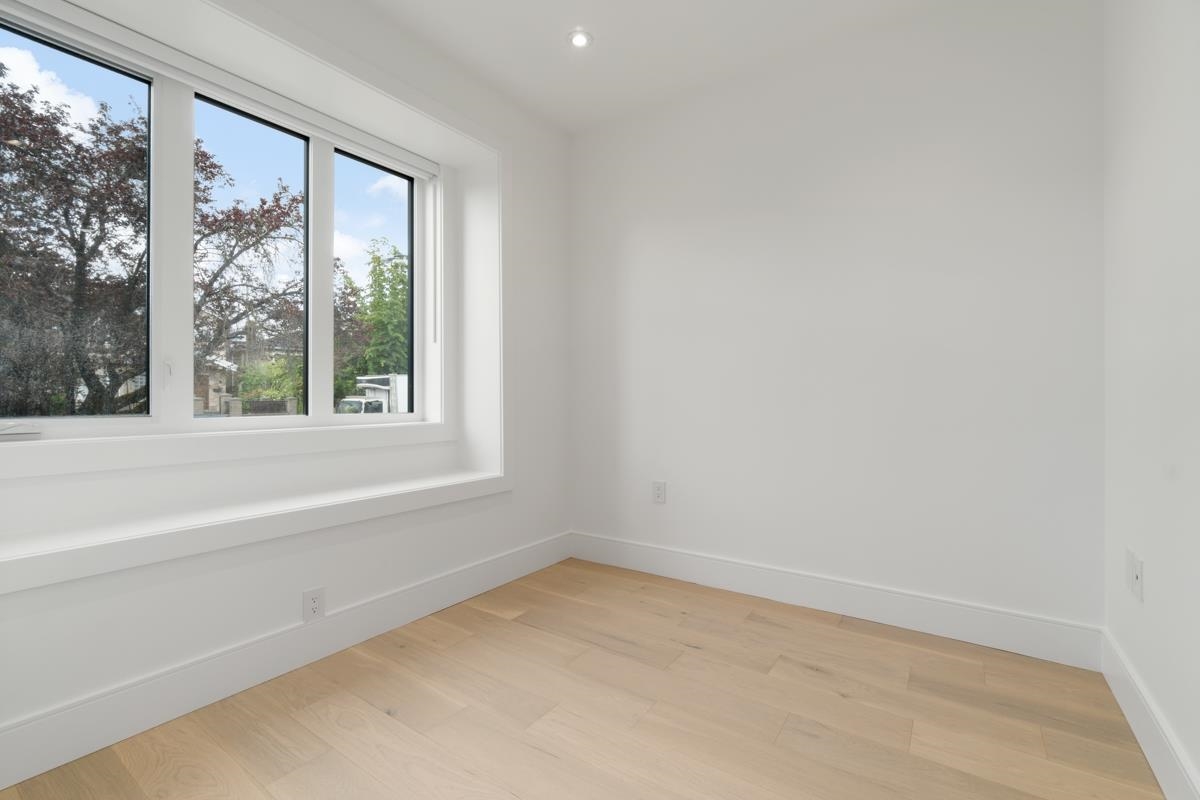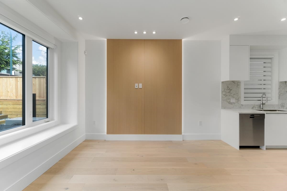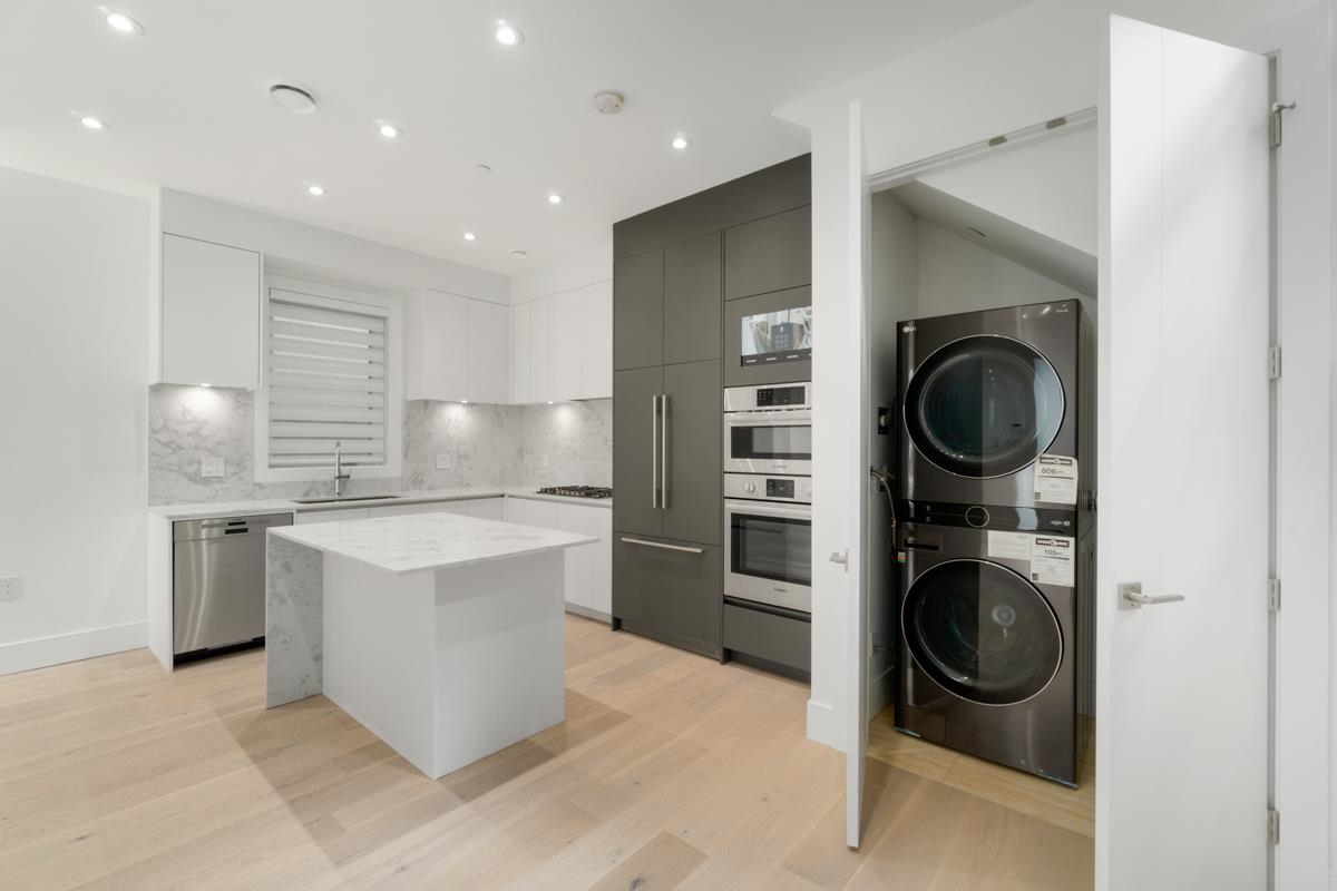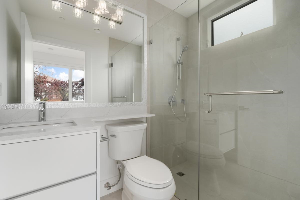 Welcome to the front unit of 50 East 58th Avenue, a stunning brand new contemporary duplex offering luxurious living in a prime location. This exceptional home features 4 bds and 3.5 bath, including 2 primary bedrooms with ensuite, providing ample space and comfort for families of all sizes. Step inside to discover an open concept layout with a south-facing living room and dining room, creating a bright and inviting atmosphere. The gourmet kitchen is a chef's dream, equipped with high-end Bosch stainless steel appliances, sleek countertops, and ample storage space. Throughout all three floors and stairs, you'll find engineered hardwood flooring and a beautiful glass stair railing, adding a touch of elegance to the home. School Catchment Churchill Secondary