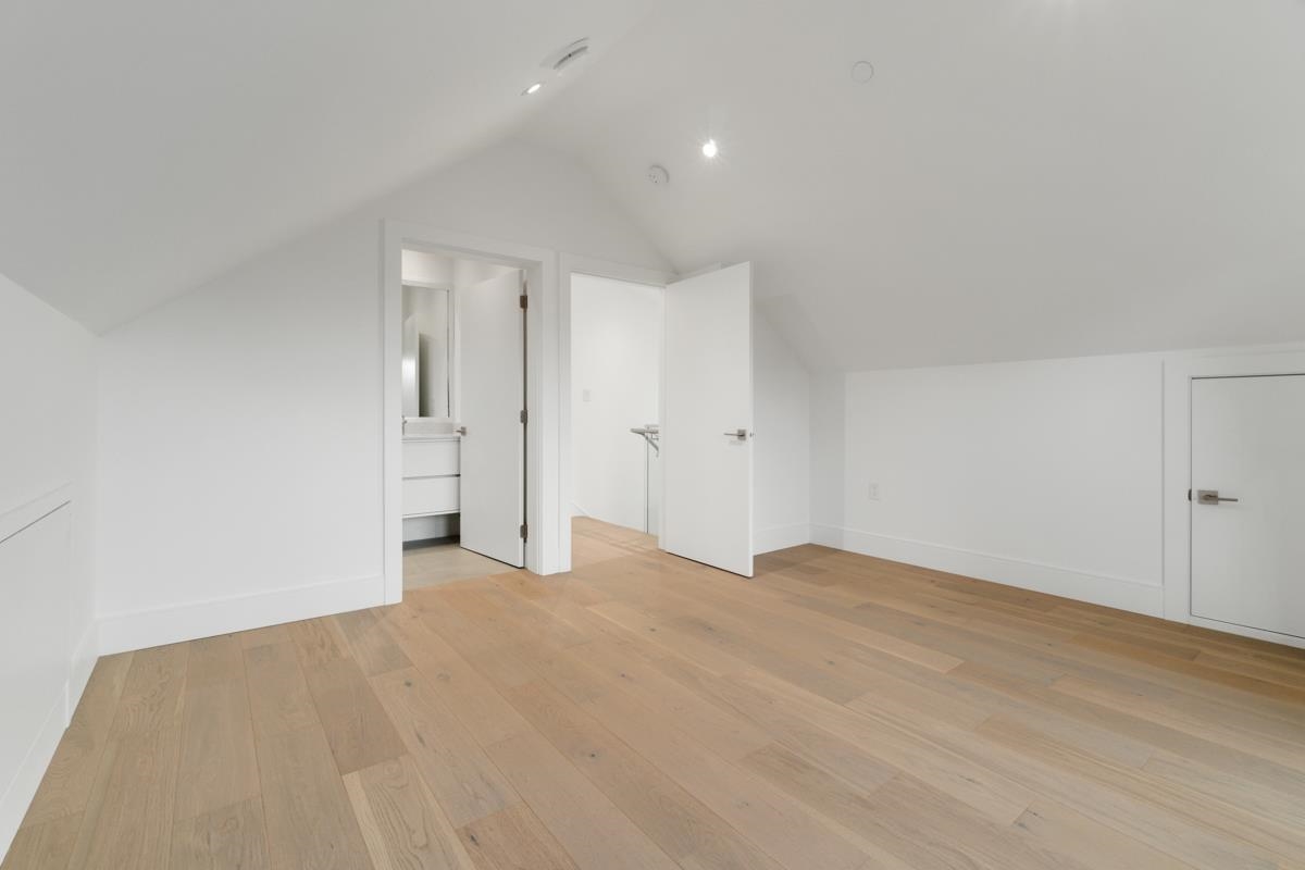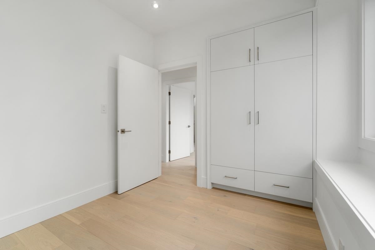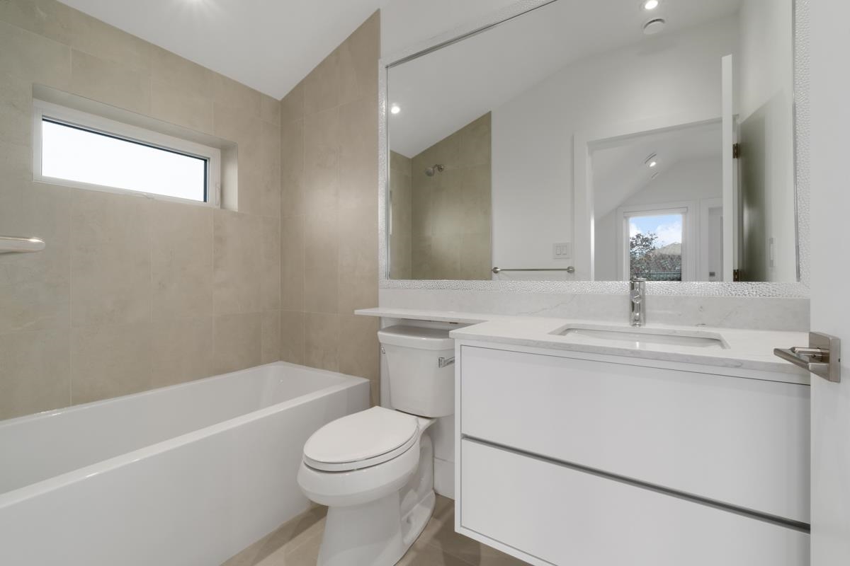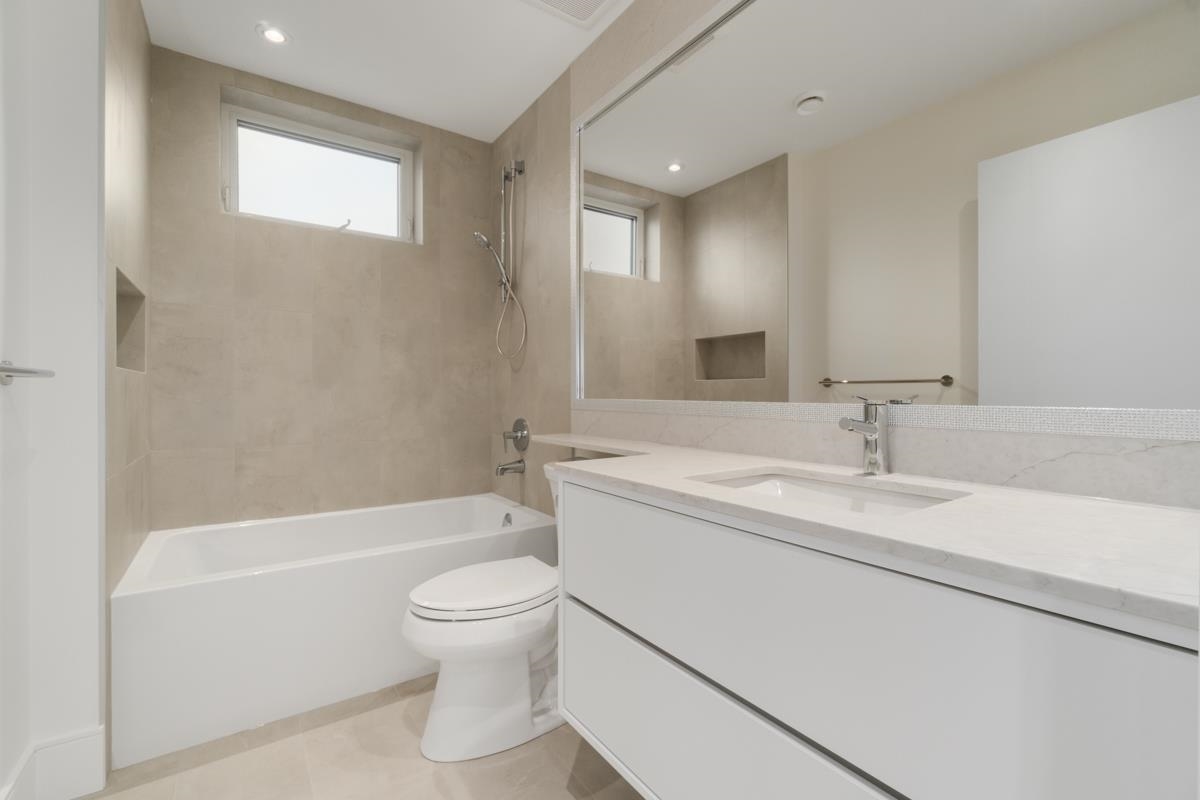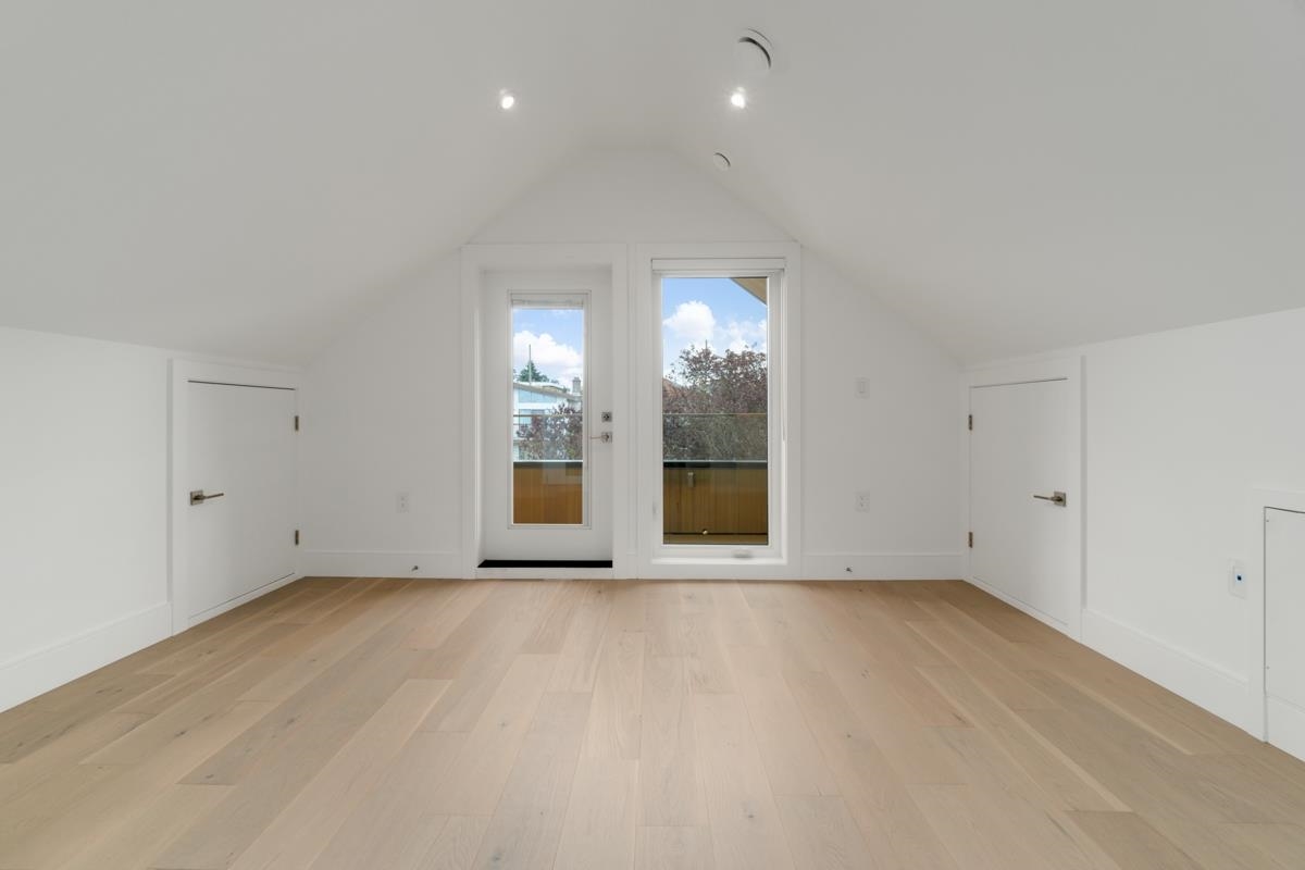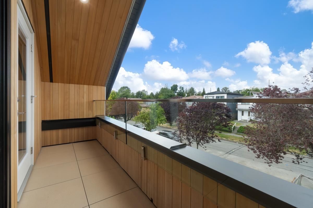 Welcome to the front unit of 50 East 58th Avenue, a stunning brand new contemporary duplex offering luxurious living in a prime location. This exceptional home features 4 bds and 3.5 bath, including 2 primary bedrooms with ensuite, providing ample space and comfort for families of all sizes. Step inside to discover an open concept layout with a south-facing living room and dining room, creating a bright and inviting atmosphere. The gourmet kitchen is a chef's dream, equipped with high-end Bosch stainless steel appliances, sleek countertops, and ample storage space. Throughout all three floors and stairs, you'll find engineered hardwood flooring and a beautiful glass stair railing, adding a touch of elegance to the home. School Catchment Churchill Secondary