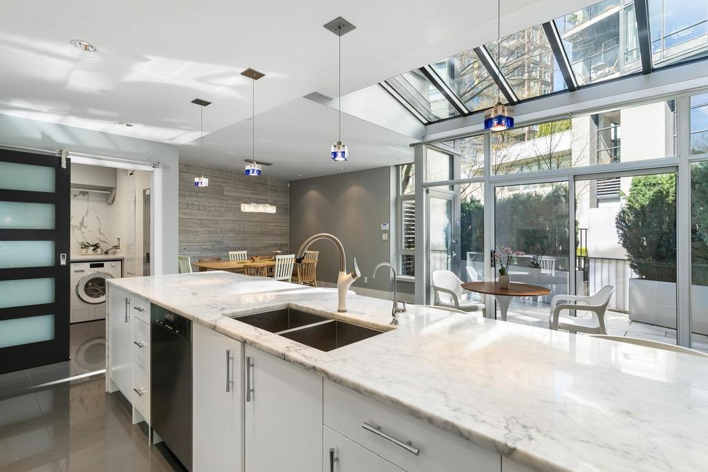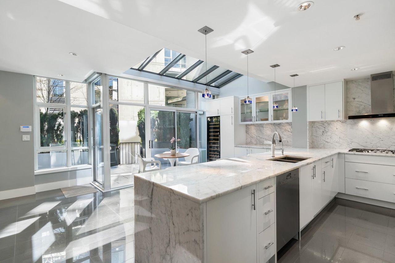 Rarely available New York-style townhome facing George Wainborn Park and the Seawall in Yaletown. Experience this sophisticated, elegant, and modern customized residence with approx. 3000 square feet of indoor and outdoor luxury, must be seen to be appreciated. Fabulous kitchen features Gaggenau & Miele appliances, heated tile floors, Euro Cave wine fridge, Carrara Island/splash and high-end millwork. Stunning casings, hardware, bathrooms, lighting, California shutters, Miele W/D, 1200 bottle wine cellar on the 3rd floor and unique wine storage under the curved staircase. 4 parking stalls. Great amenities incl an indoor pool, hot tub, gym, home theatre room, squash court, concierge and bike storage. Call to book your private showing today.