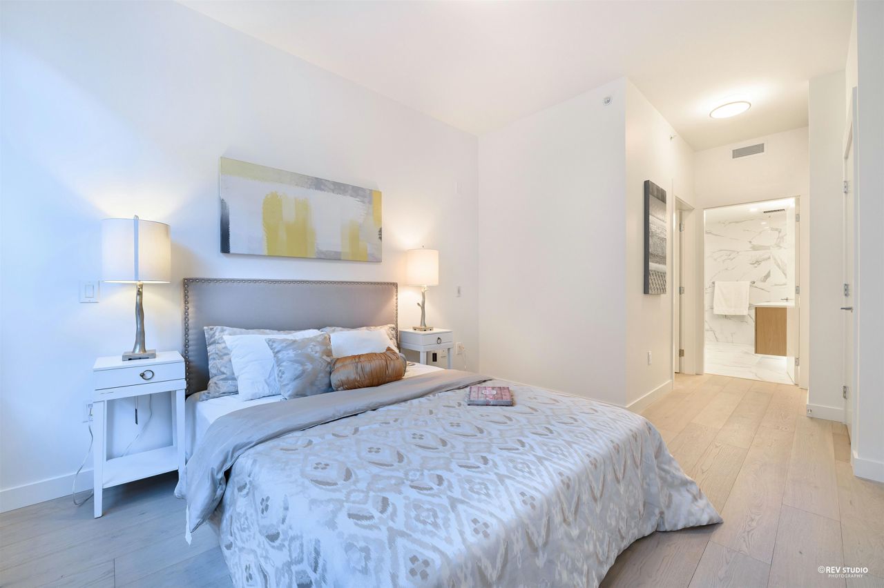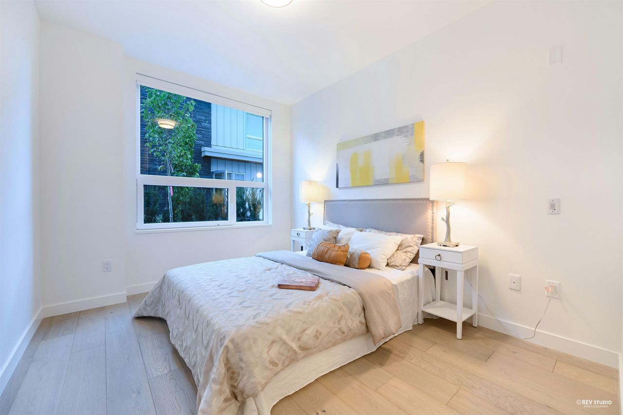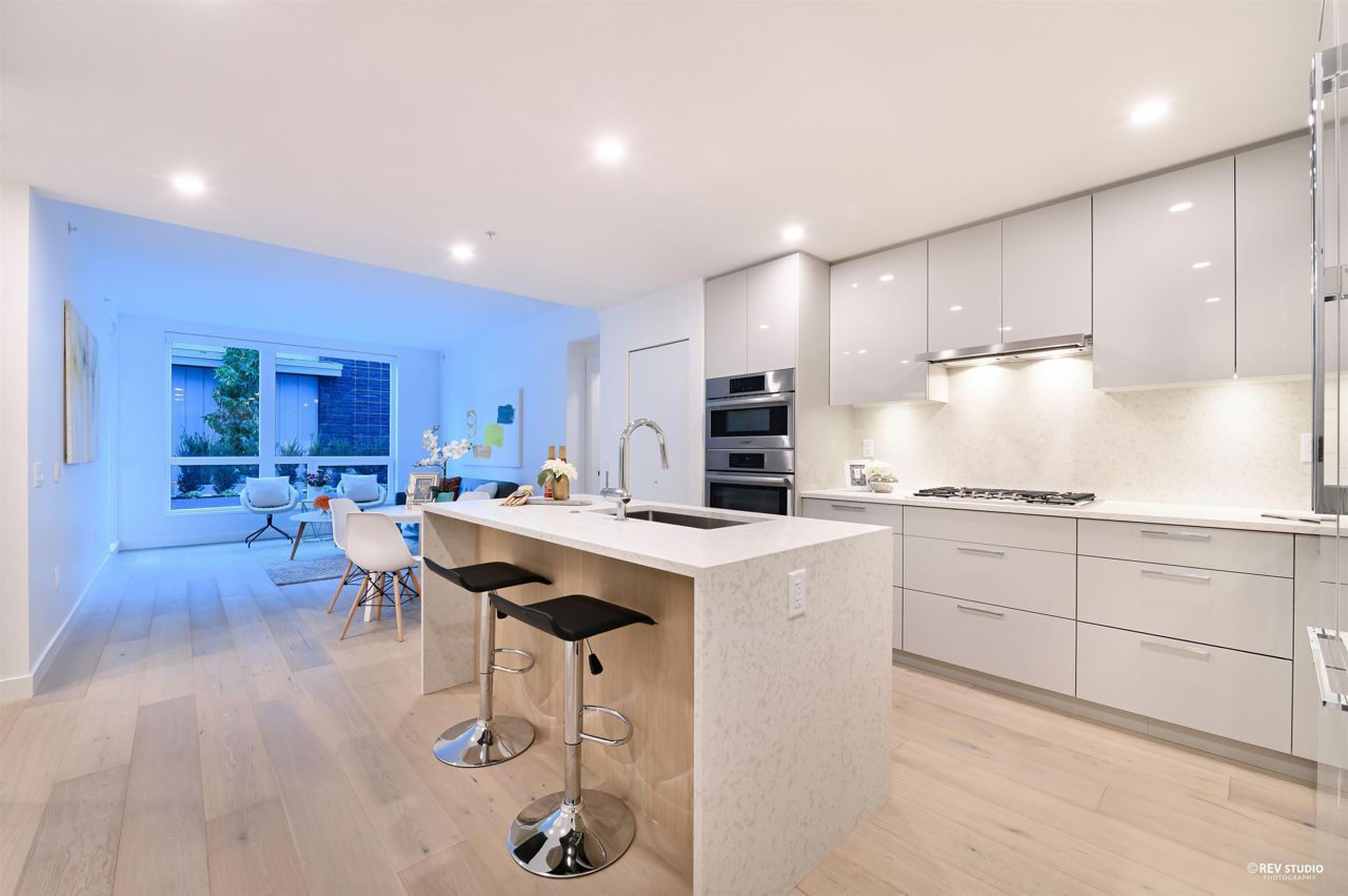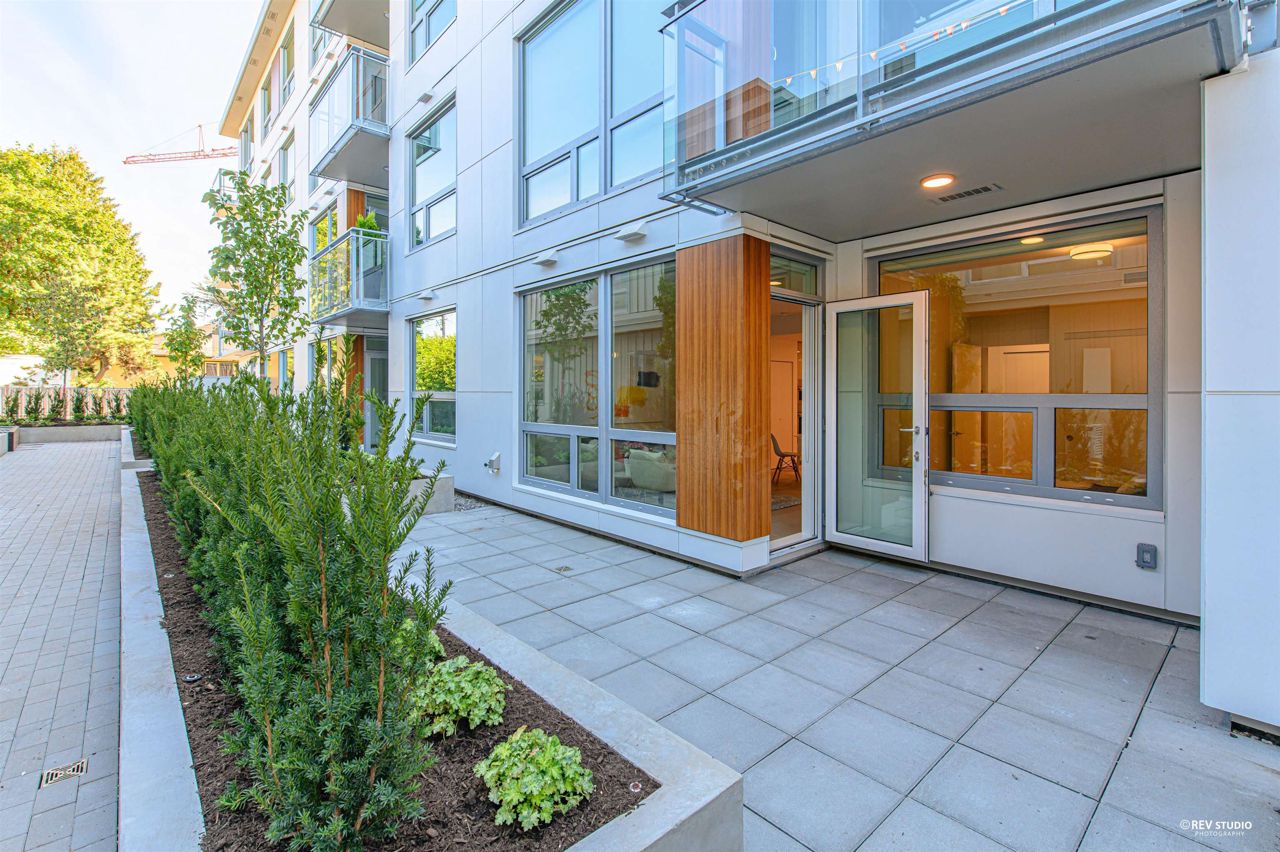 Best location near QE Park. Basalt, a brand new building built by Pennyfarthing. It is located at 35th Avenue and Cambie Street. This 2 bed, 2 bath, 1 den unit is on the quiet side facing East, 1007 SF + 195 SF own private back yard. One of the best unit ground level.Very functional layout and no space wasted, each side have its own bedroom and bathroom. Top quality finishing with integrated Bosch applianoes in gourmet kitchen, gas stove, stone countertop, high ceiling, Spa inspired bathroom and Air Conditioning. 1 parking and 1 locker ingluded. Easy access to UBC, Downtown, Oakridge Center, Restaurants and shop nearby on Cambie. Tenant occupied month to month need 48 hours notice to show.