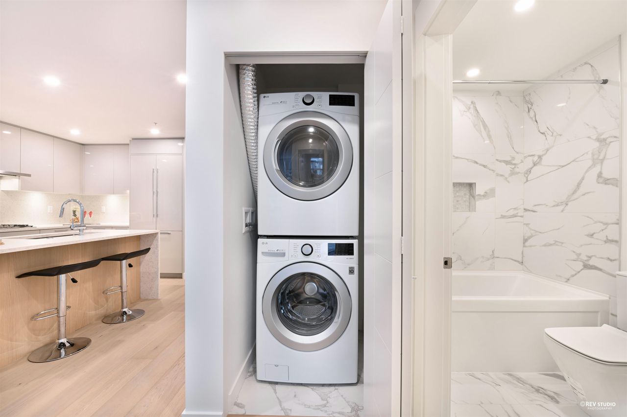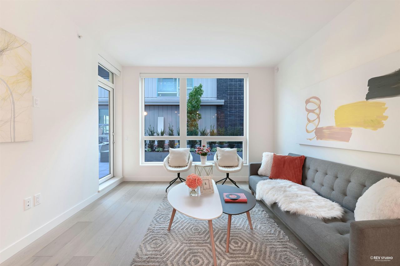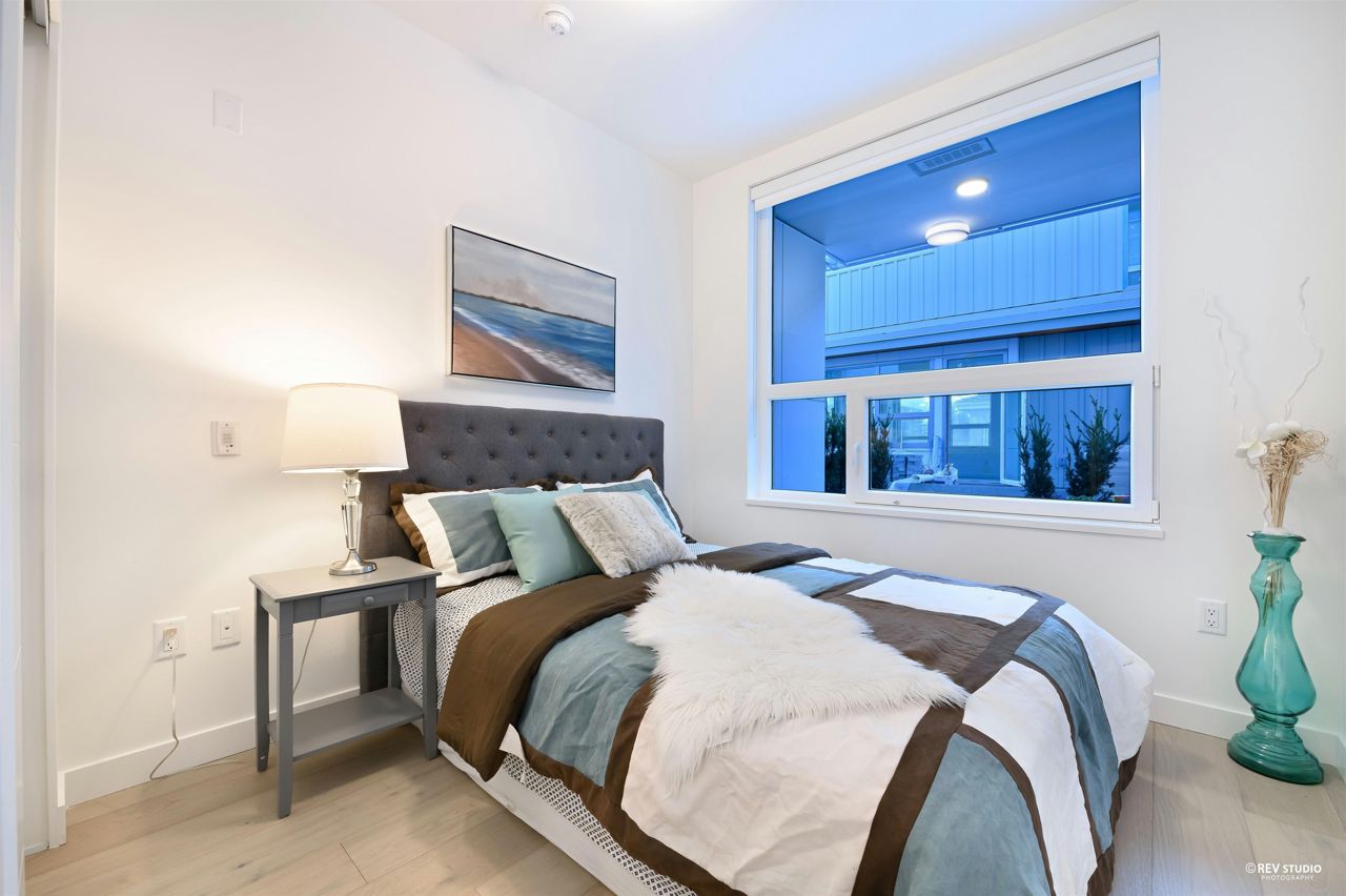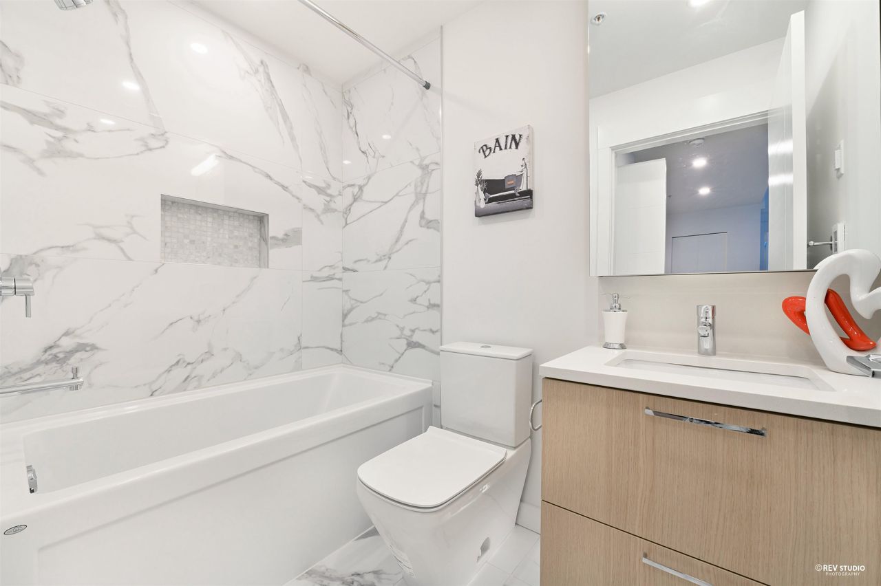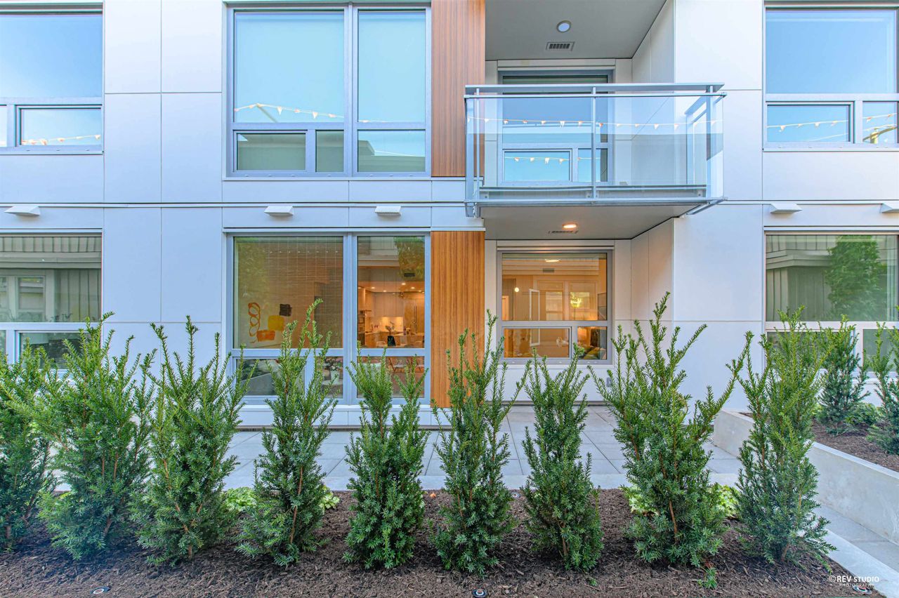 Best location near QE Park. Basalt, a brand new building built by Pennyfarthing. It is located at 35th Avenue and Cambie Street. This 2 bed, 2 bath, 1 den unit is on the quiet side facing East, 1007 SF + 195 SF own private back yard. One of the best unit ground level.Very functional layout and no space wasted, each side have its own bedroom and bathroom. Top quality finishing with integrated Bosch applianoes in gourmet kitchen, gas stove, stone countertop, high ceiling, Spa inspired bathroom and Air Conditioning. 1 parking and 1 locker ingluded. Easy access to UBC, Downtown, Oakridge Center, Restaurants and shop nearby on Cambie. Tenant occupied month to month need 48 hours notice to show.