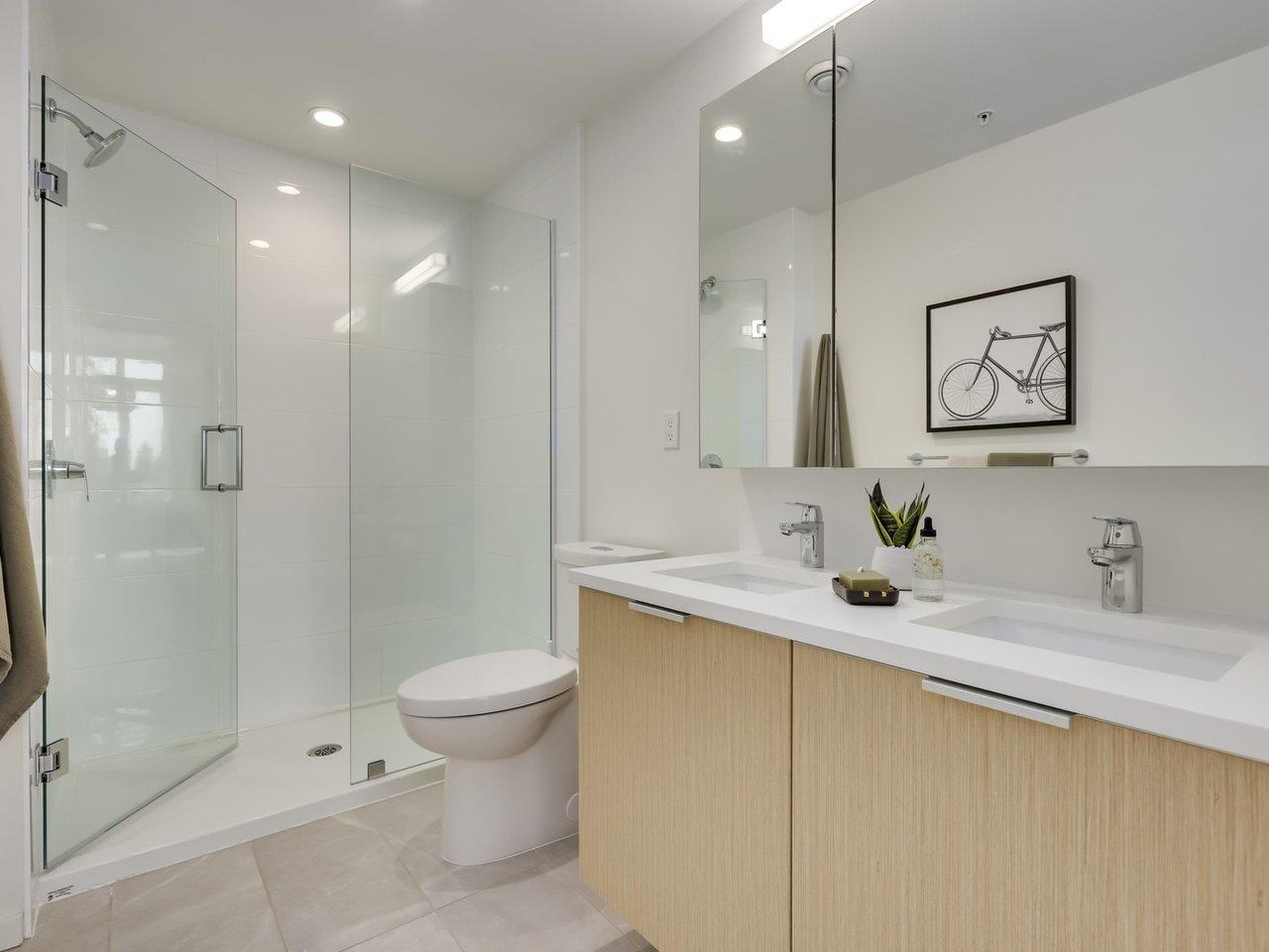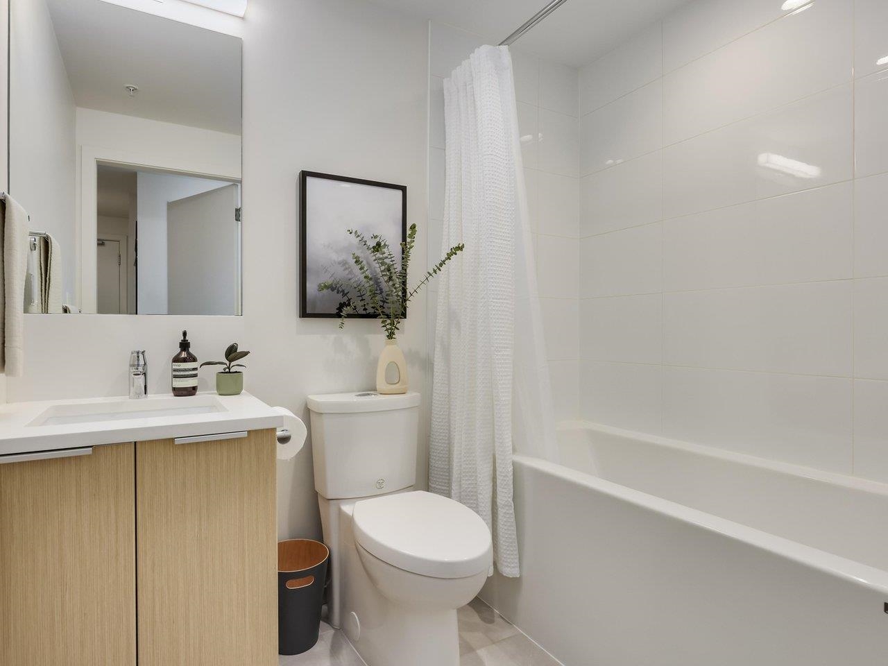 IMMACULATE 2 BR + den, 2 bath home at EASTPARK, nestled beside QE Park on the west side of Main. BRIGHT SE CORNER home boasts close to 9ft ceilings & large windows that fill the space w/ natural light. Gourmet kitchen feat DOUBLE fridge & freezer, BOSCH appliance package w/ gas stove, two-tone cabinetry, quartz counters & plenty of storage. DEVELOPER UPGRADES: Quartz kitchen backsplash & engineered laminate floors throughout. Blackout blinds throughout. Timeless bath finishes incl deep soaker tub in main bath & 2 vanities & large WI shower in ensuite. Balance of the 2-5-10 year warranty. Amenities: Meeting room & dog wash area. 1 parking w/ close access to EV plug. Walk to Hillcrest CC, Riley Park Farmer’s Market & all the restaurants & shops along Main! Book your showing today!