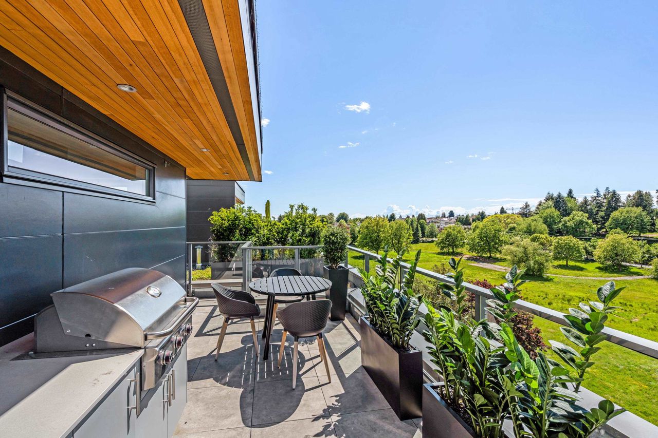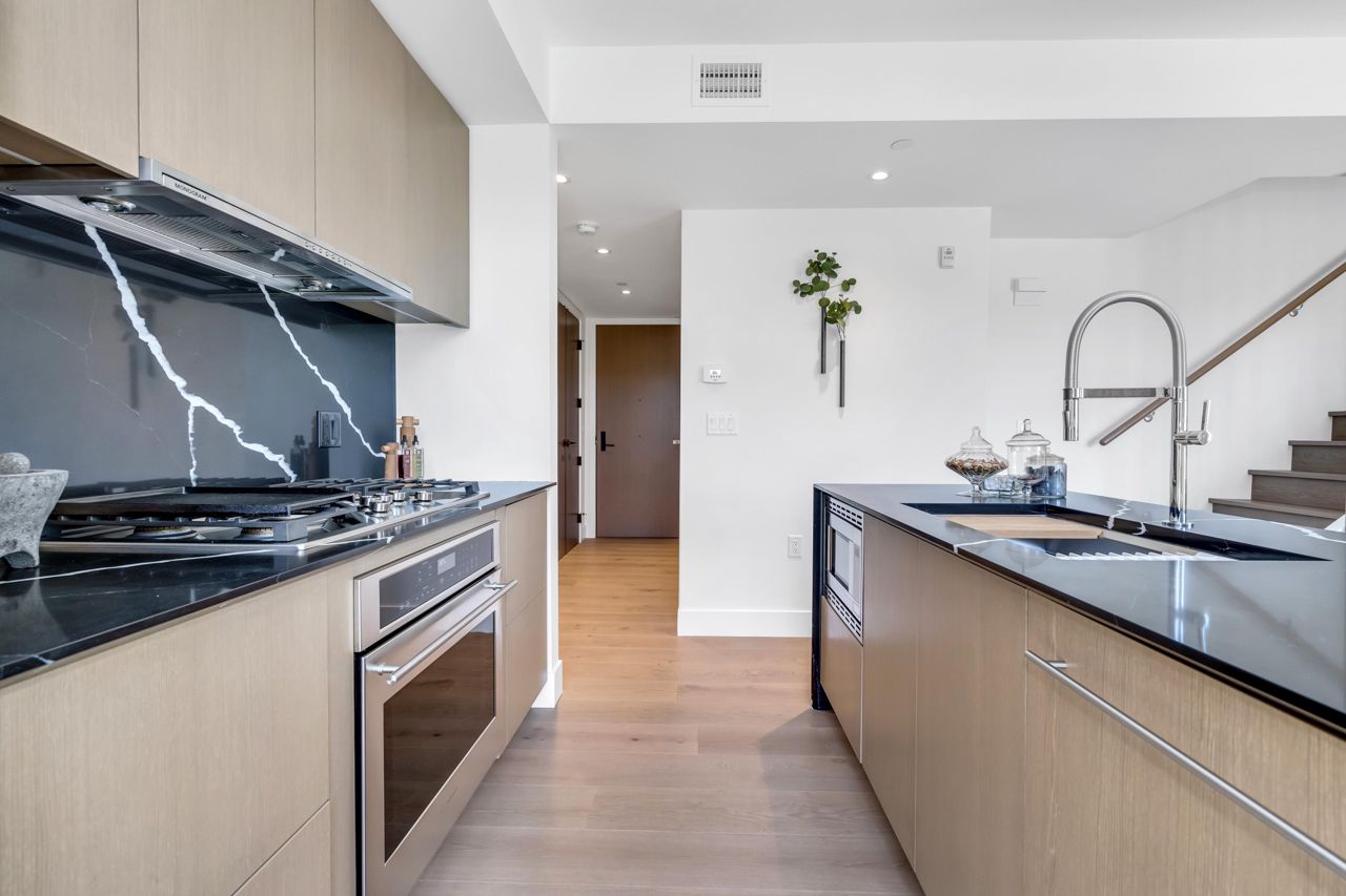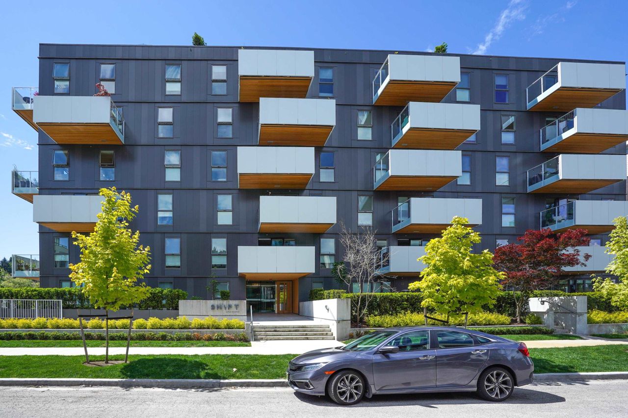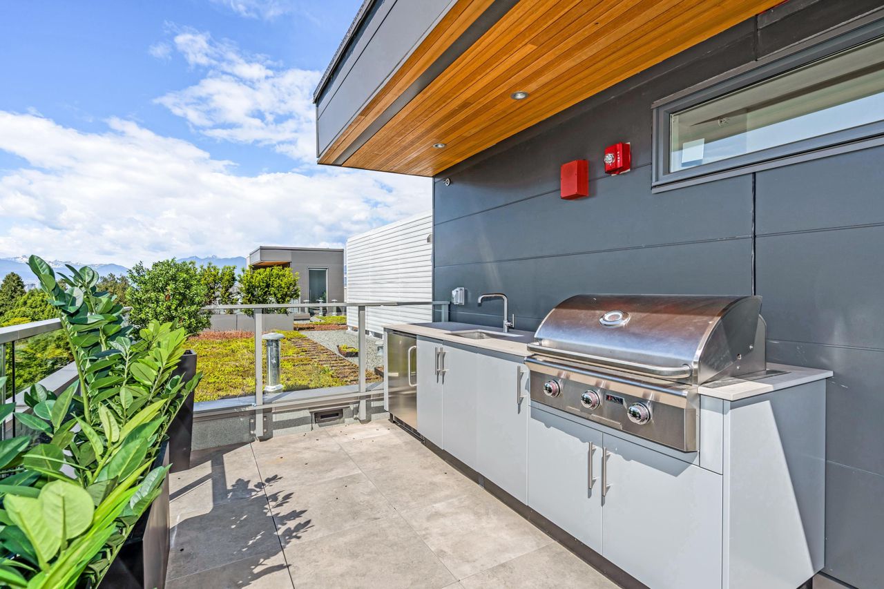 SHIFT by Aragon located in the prime Main St. neighbourhood. COUNTLESS DETAILS! This well designed 2 bed PH has scenic views to the N & W. Featuring combined LR/DR w/folding glass window walls that slide completely open to W facing balcony. Kitchen features MONOGRAM APPLIANCE PKG, striking black quartz countertops that compliment the custom blonde cabinetry & large island for family gatherings/entertaining & A/C. European wide plank flooring throughout. Extend your living space even further w/master bed balcony & ROOFTOP DECK (18' X 9') featuring 20” AOG BBQ grill, 4.2CU.FT. outdoor bar fridge, custom powder-coated steel outdoor kitchen cabinetry. Enjoy accessible living 1 blk from award-winning restaurants, independent cafes & unique boutiques of Main St. QE & Riley Park steps away.