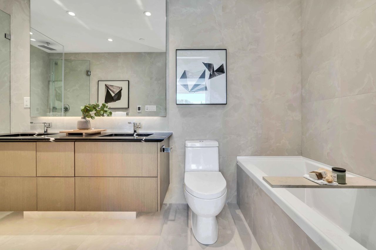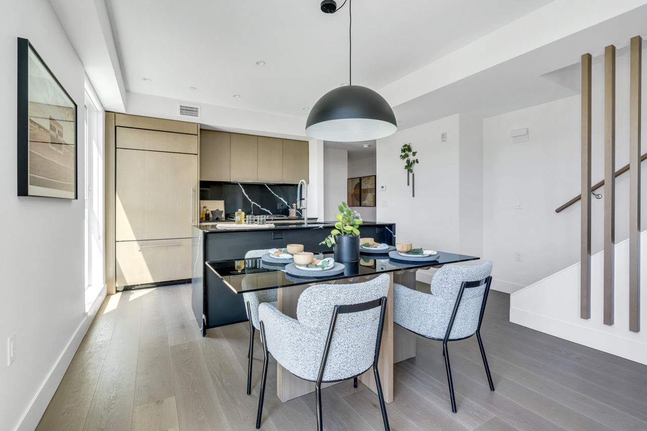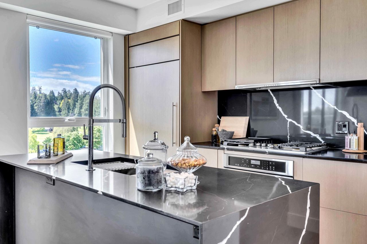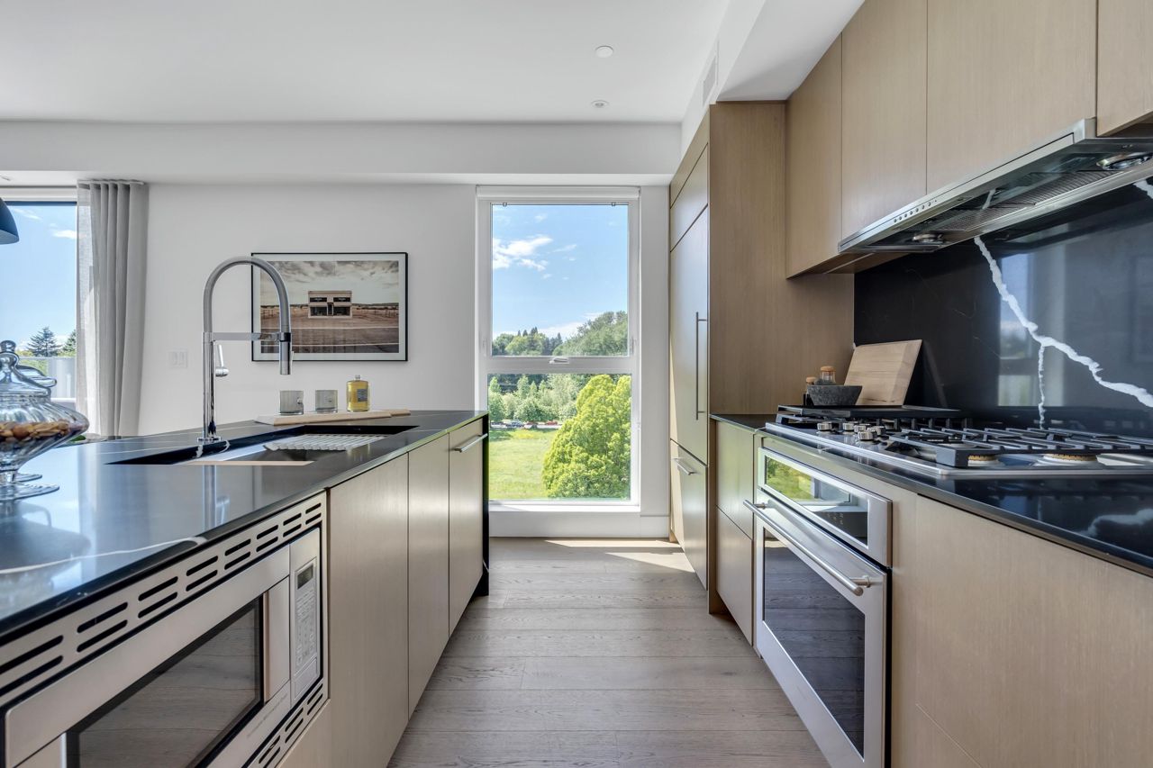 SHIFT by Aragon located in the prime Main St. neighbourhood. COUNTLESS DETAILS! This well designed 2 bed PH has scenic views to the N & W. Featuring combined LR/DR w/folding glass window walls that slide completely open to W facing balcony. Kitchen features MONOGRAM APPLIANCE PKG, striking black quartz countertops that compliment the custom blonde cabinetry & large island for family gatherings/entertaining & A/C. European wide plank flooring throughout. Extend your living space even further w/master bed balcony & ROOFTOP DECK (18' X 9') featuring 20” AOG BBQ grill, 4.2CU.FT. outdoor bar fridge, custom powder-coated steel outdoor kitchen cabinetry. Enjoy accessible living 1 blk from award-winning restaurants, independent cafes & unique boutiques of Main St. QE & Riley Park steps away.