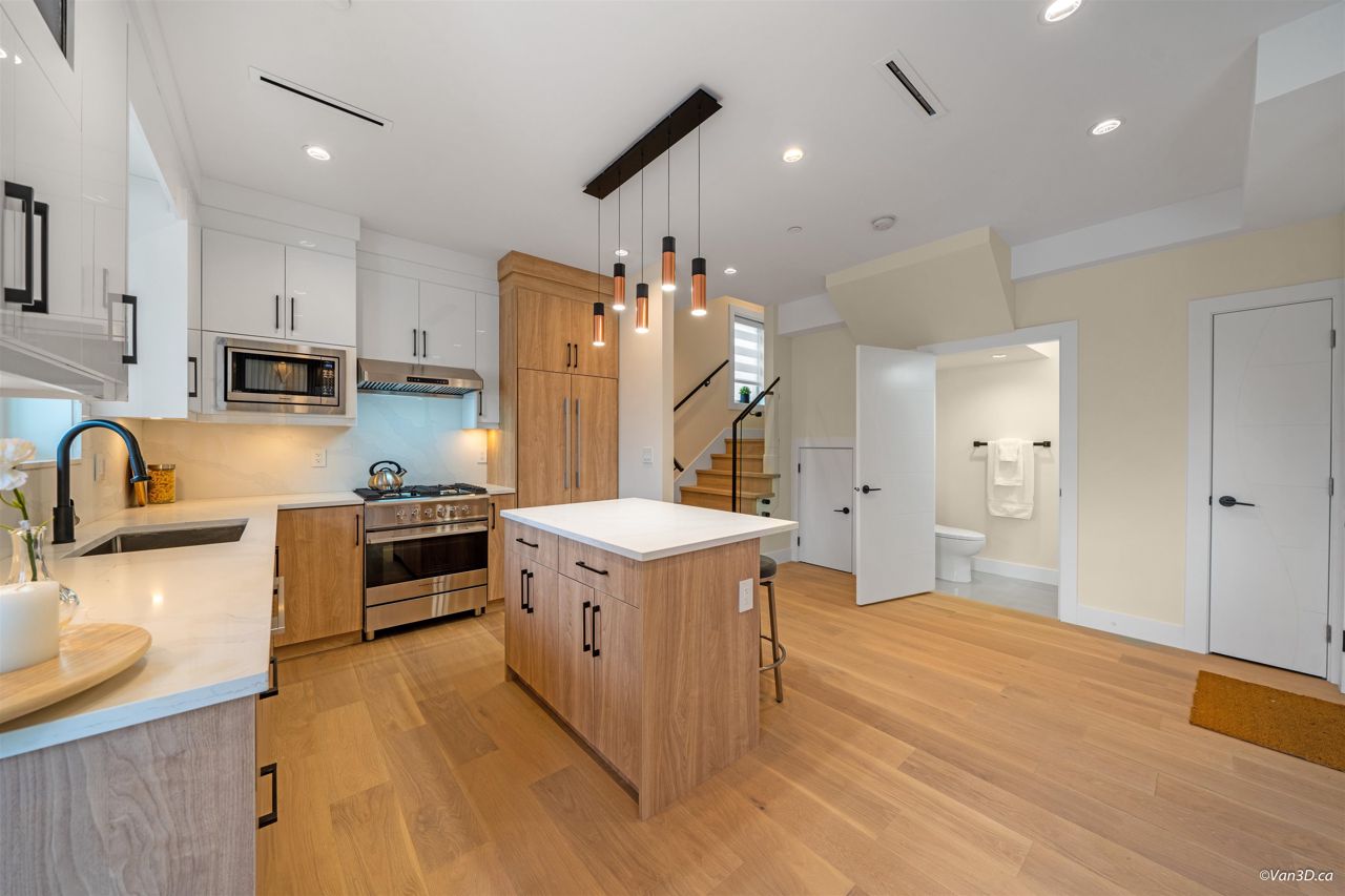One of the Most desirable Locations!! This brand-New 4 level Back Unit 1/2 duplex will be an excellent family Home, Open concept floorplan Comes with a 2 Bdrm Legal suite in the basement, this could be an excellent mortgage helper or great for a family member. Top Quality Materials used throughout Engineered Hardwood floors, Fisher Paykel integrated built in appliances, in floor Radiant heating, A/C - EV Ready, Great location only a Few Steps to David Thompson Secondary School, Transit & Victoria Drive shops. One car garage great for storage. You won't be disappointed. Ample street parking. Built by Param Sidhu Homes.
