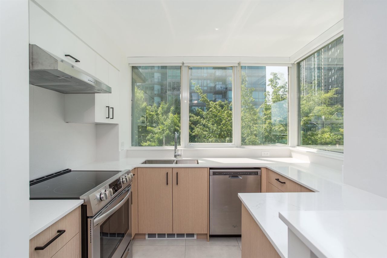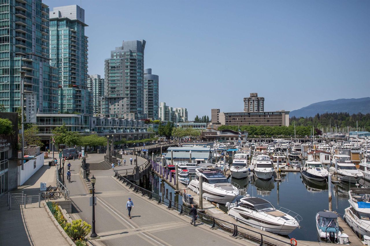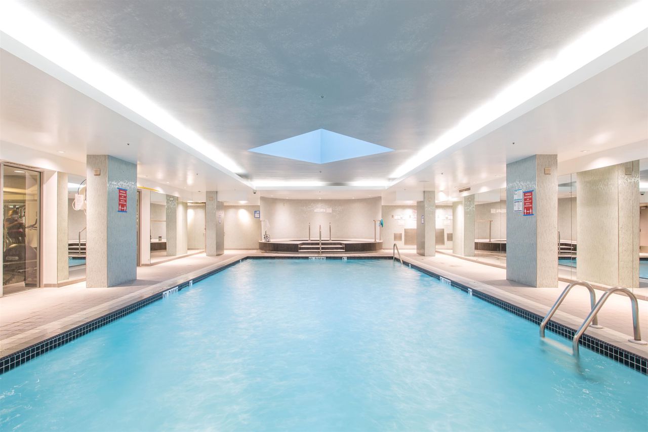 You can forget all your troubles, forget all your cares...when you go downtown! Exquisitely renovated suite. Top quality finishing, Canadian cabinetry (eh), Italian tiles. Architecture legend ARTHUR ERICKSON (wow) designed landmark build at Coal Harbor's waterfront. The suite is BIGGER than most others, room for a King bed AND work-from-home office/desk (click-clack). Unwind by hitting the building gym for a workout (clank), swim all year - indoor pool (splash). Be the envy of the building with one of the very few PRIVATE breezy balconies (swoosh). Handy parking (vroom), TWO storage lockers (click) included. Pets (woof) and BBQ (sizzle) allowed. Live on the Seawall steps from restaurants and shopping. Famously well run strata. Things will be great when you're...in 305 555 Jervis, downtown.