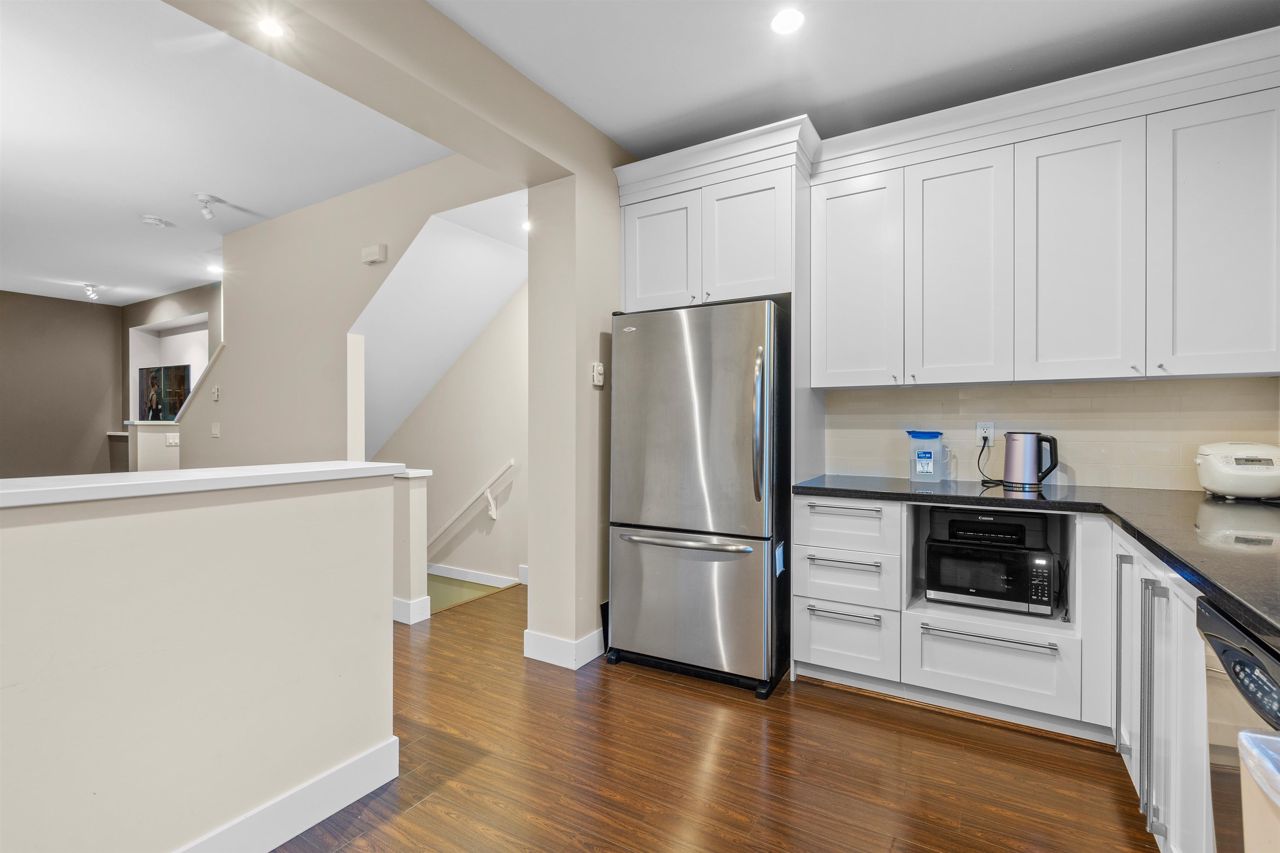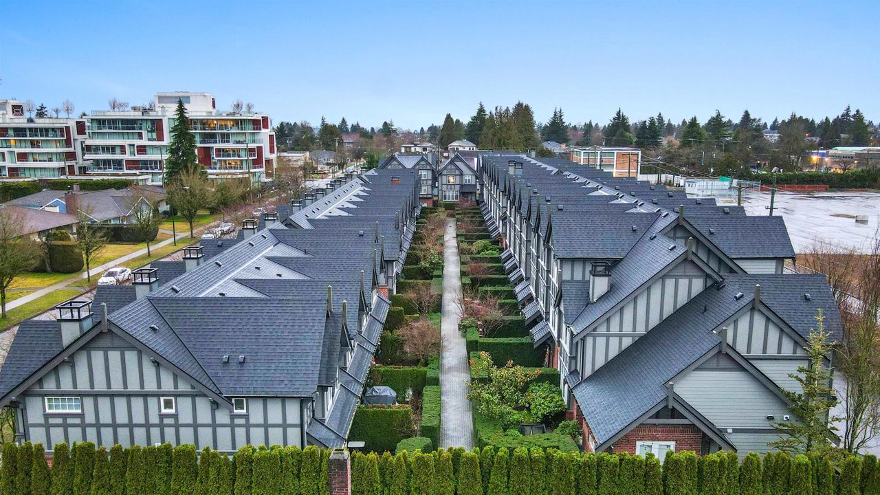 The best location in the complex - separate from other units! Tudor inspired English row house architecture, built by Mosaic Homes. Features an open contemporary living space, with 9 ft ceilings, gourmet kitchen with S/S appliances including gas stove, granite countertops, laminate flooring, luxurious ensuite with marble countertops, double under mount vanities, oversized showers & European designed chrome plumbing fixtures. Shows like new! Private patio overlooking richly landscaped secured courtyard. Private attached single garage. Prime Oakridge location near Vandusen Garden, QE Park, community centers, schools & just minutes from downtown Vancouver & YVR. Open house: Jul 29 2 to 4PM.