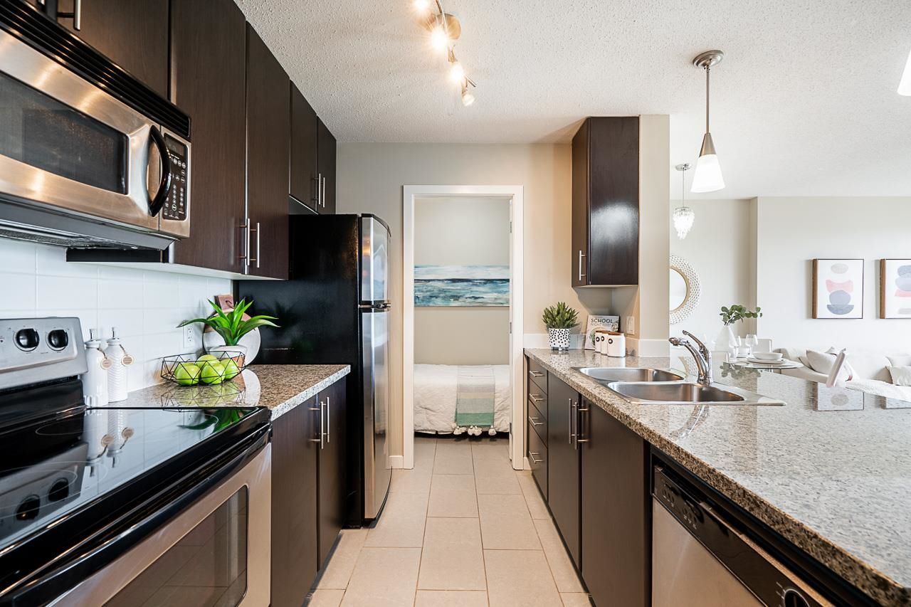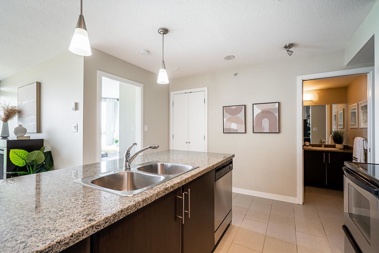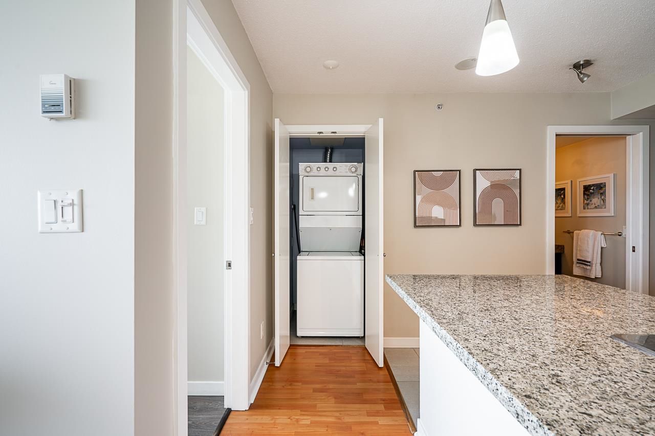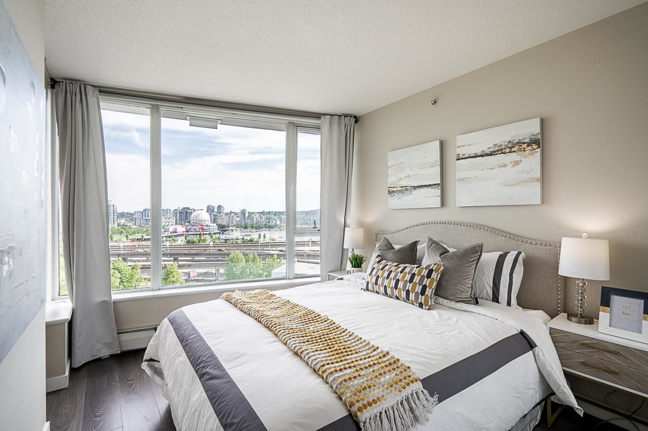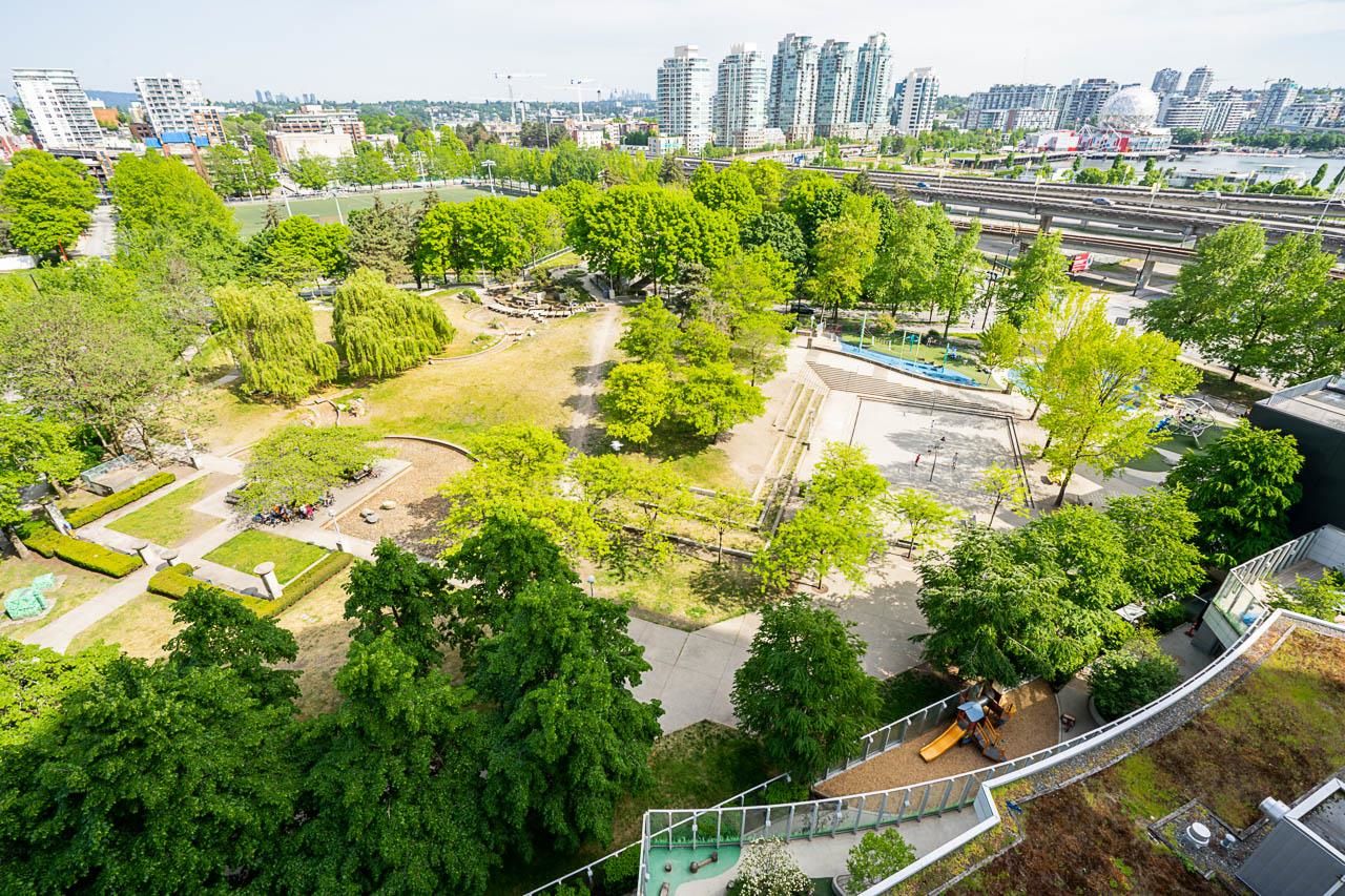 The 'Firenze' - Short term allowed, Move In Ready 1 Bed Plus Den unit has Everything! Unobstructed False Creek view, mountains, and overlooking Andy Livingston park. Just steps to Skytrain station, Rogers Arena, BC Place, Costco, T&T, Chinatown, International Village Mall, Cineplex. Functional layout, kitchen with stainless steel appliances, an oversized bedroom, and a den that can be utilized as a home office or guest bedroom. It comes with Parking, Locker and bike locker. Amenities including 25-meter indoor swimming pool, steam room, and gym. Perfect for first home buyers and investors. Act fast, won't last LONG!
