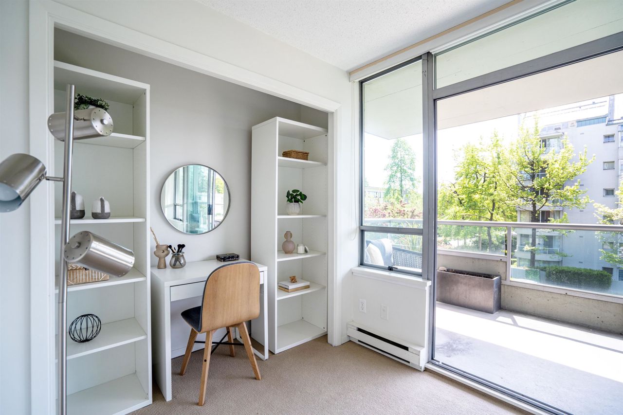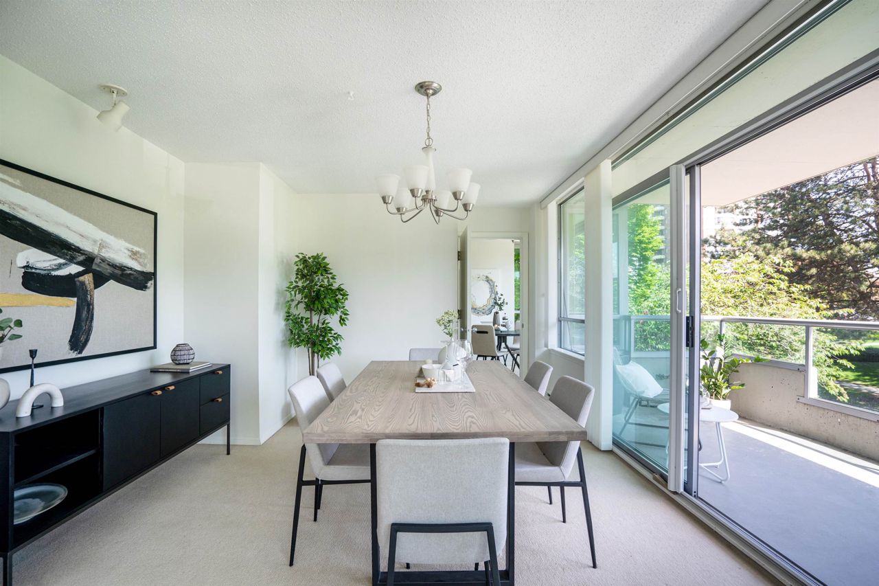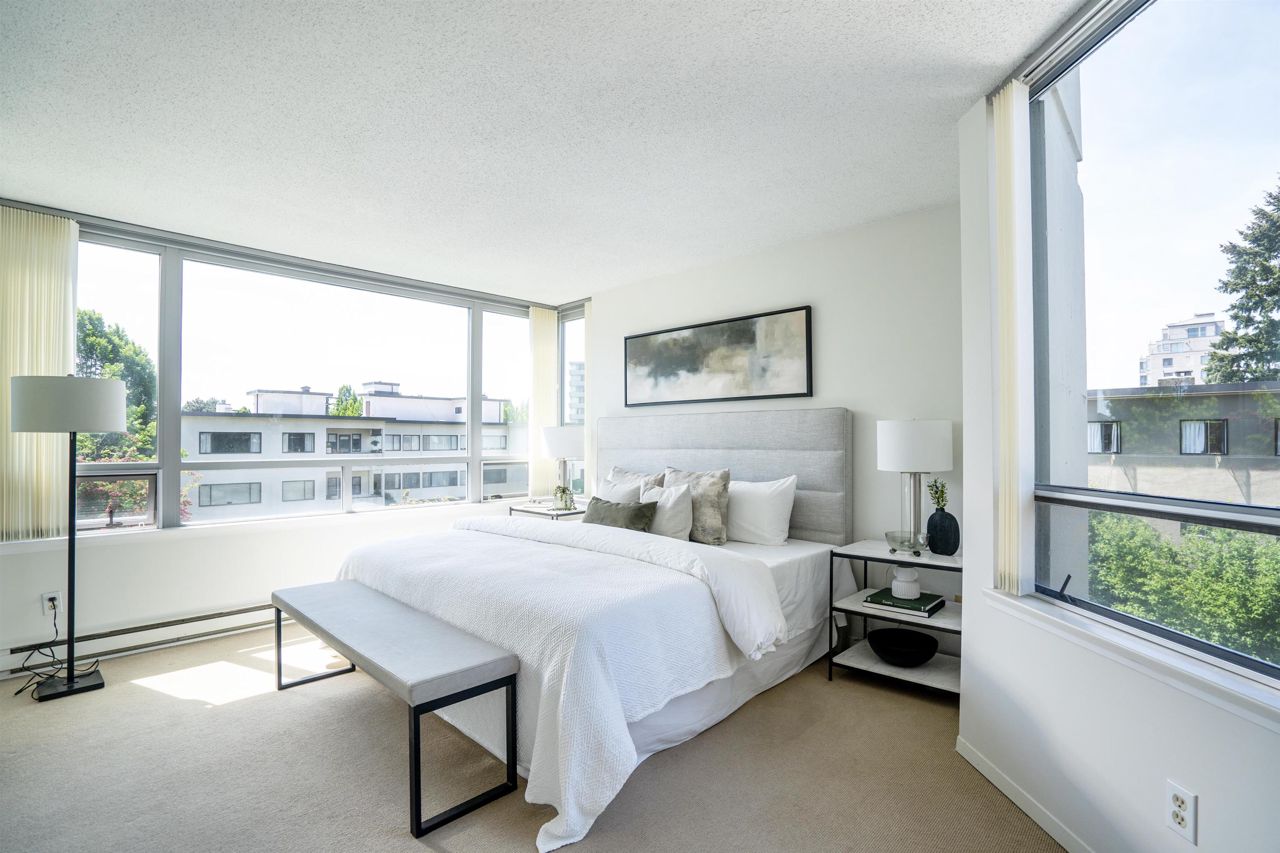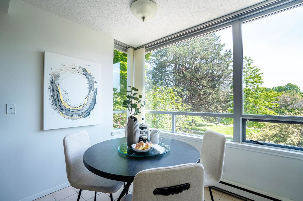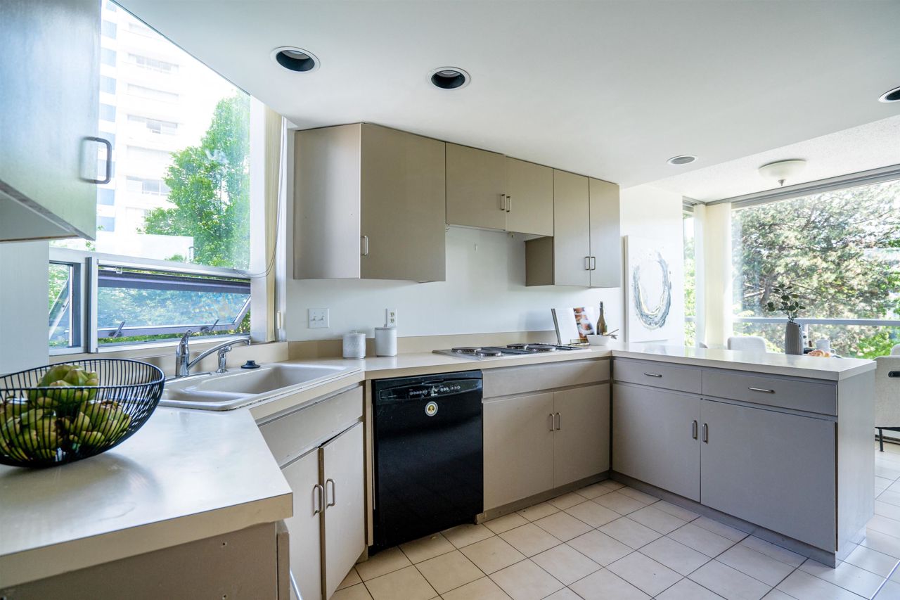 FULL FLOOR SUITE! Ever have an elevator for a front door? This one does! It also has 2 sunny outdoor terraces, picture windows all around, large principal rooms, views from every room and an energy + light that flows beautifully throughout. This suite is on the second level, original in condition and ready for a fresh take! [2 bedrooms + 2 baths | 1554sf | 2 parking | storage | f/p | insuite laundry] The Kerrisdale is a Bing Thom concrete high-rise at the corner of 43rd/Yew with visitor parking, just steps to Kerrisdale Village and the Kerrisdale Community Centre.
