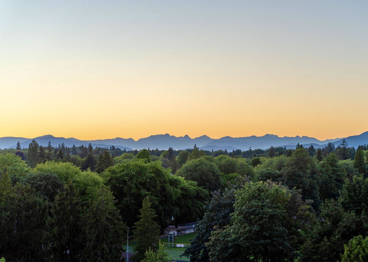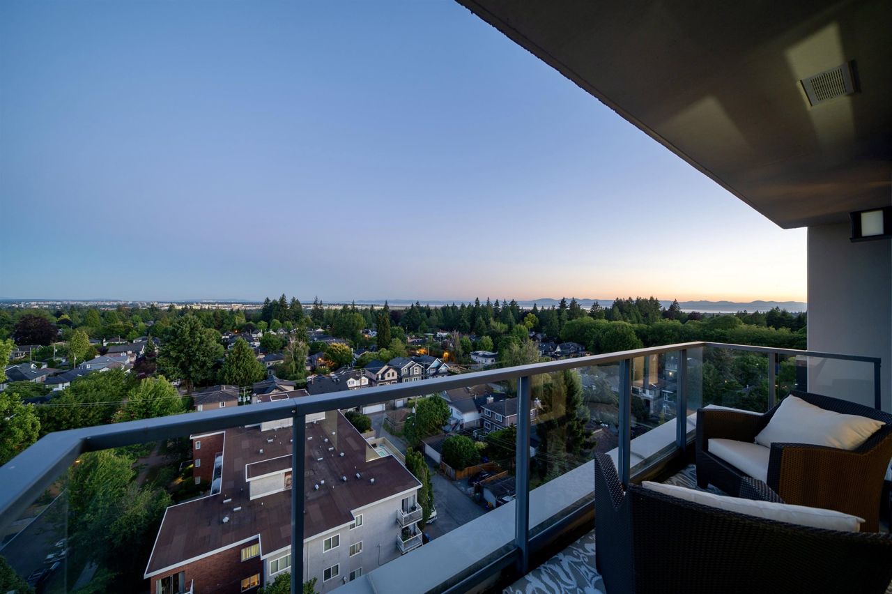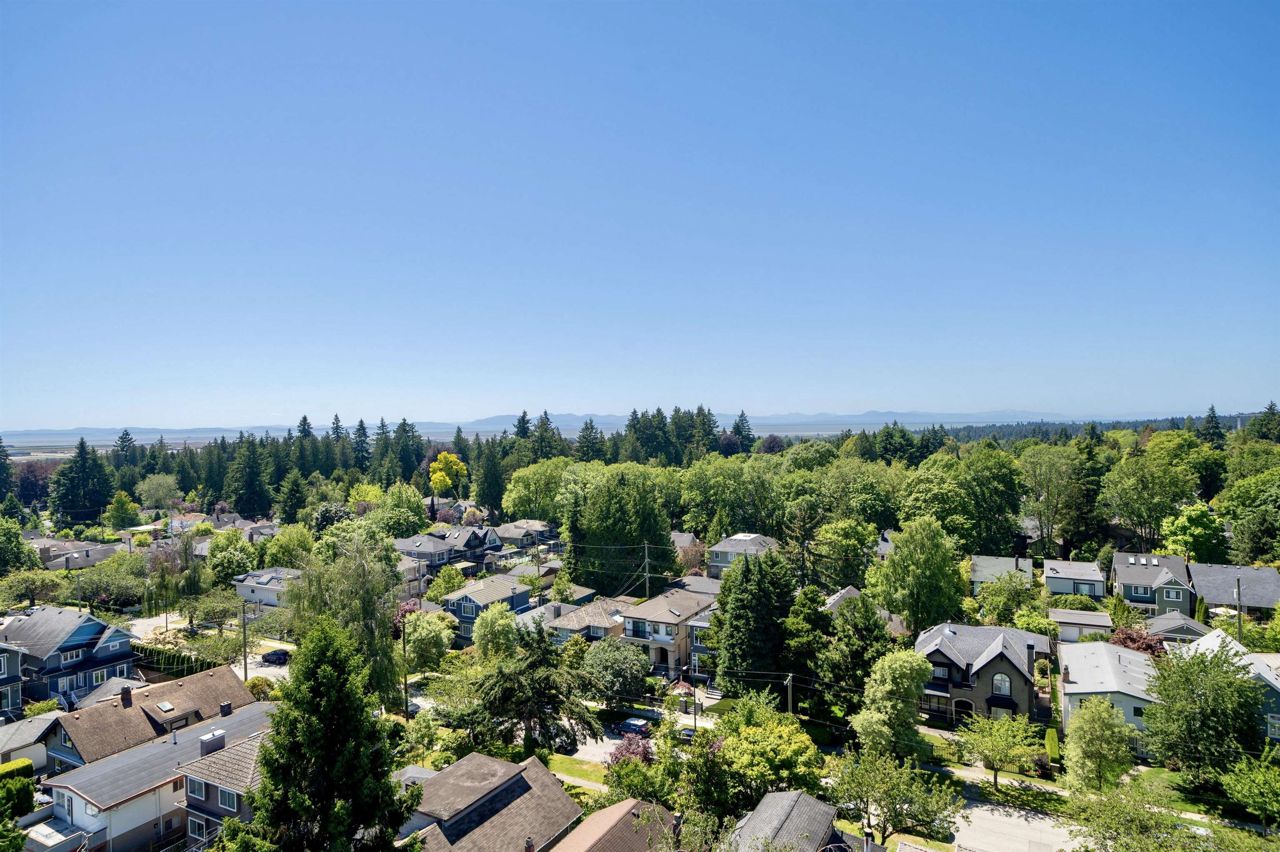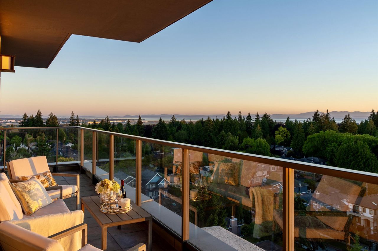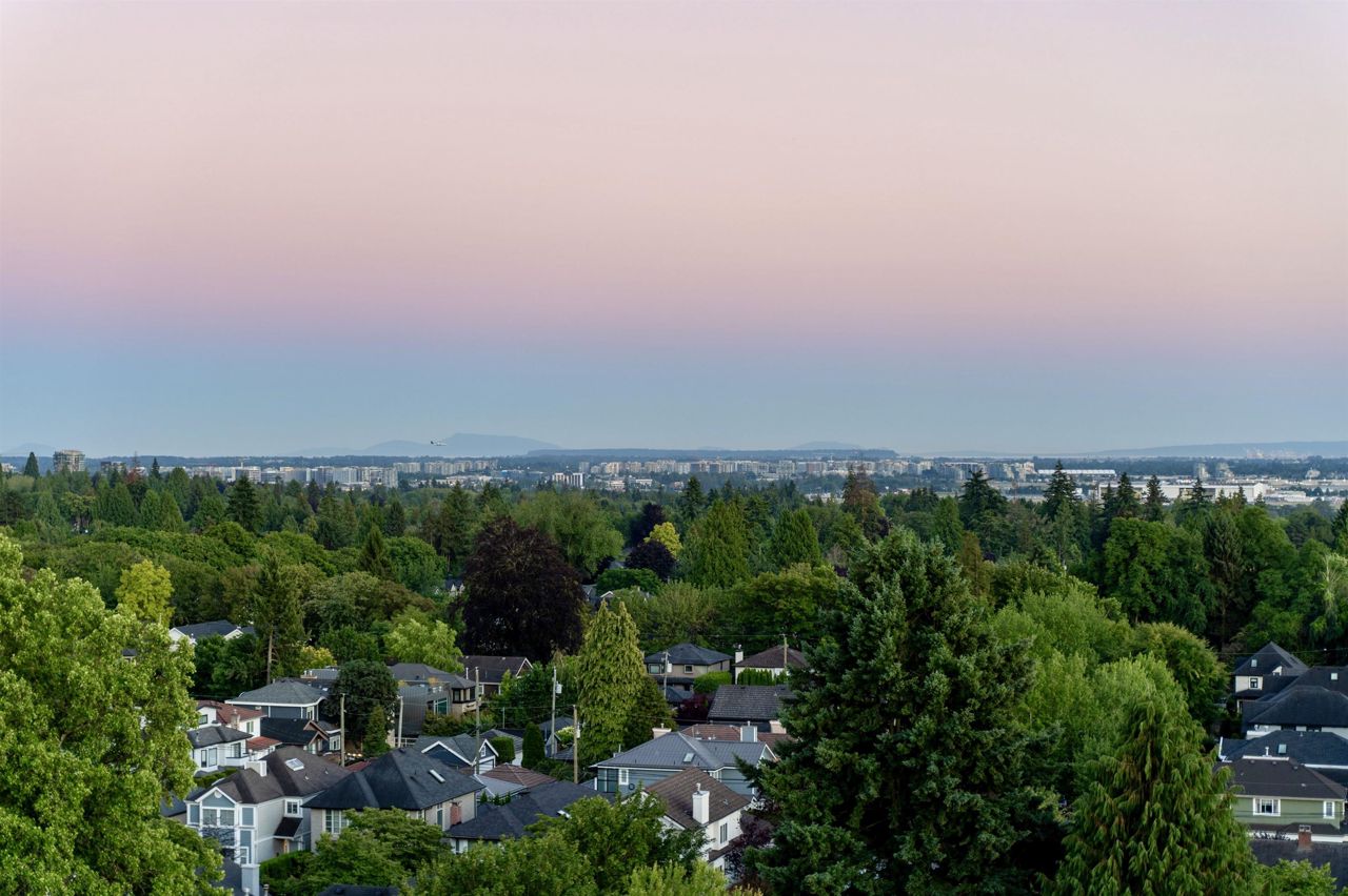 Rarely available, exquisite sub-penthouse at the luxury & exclusive 5955 Balsam, nestled serenely on a quiet, tree-lined street w/ just 41 units in total. This beautiful home is a sanctuary of unparalleled elegance. Wake up to breathtaking views of the endless ocean & majestic mountains, w/ stunning sunsets that transform the sky into a canvas of vibrant hues. 9.5' ceiling, open, airy, abundant natural light. An oversized den perfect for hosting guests or setting up your dream office. Whether you prefer a quiet evening in or entertaining family & friends in the inviting space, every moment here promises comfort & sophistication. Move-in Ready! Bonus: a private, enclosed triple garage &spacious storage locker.