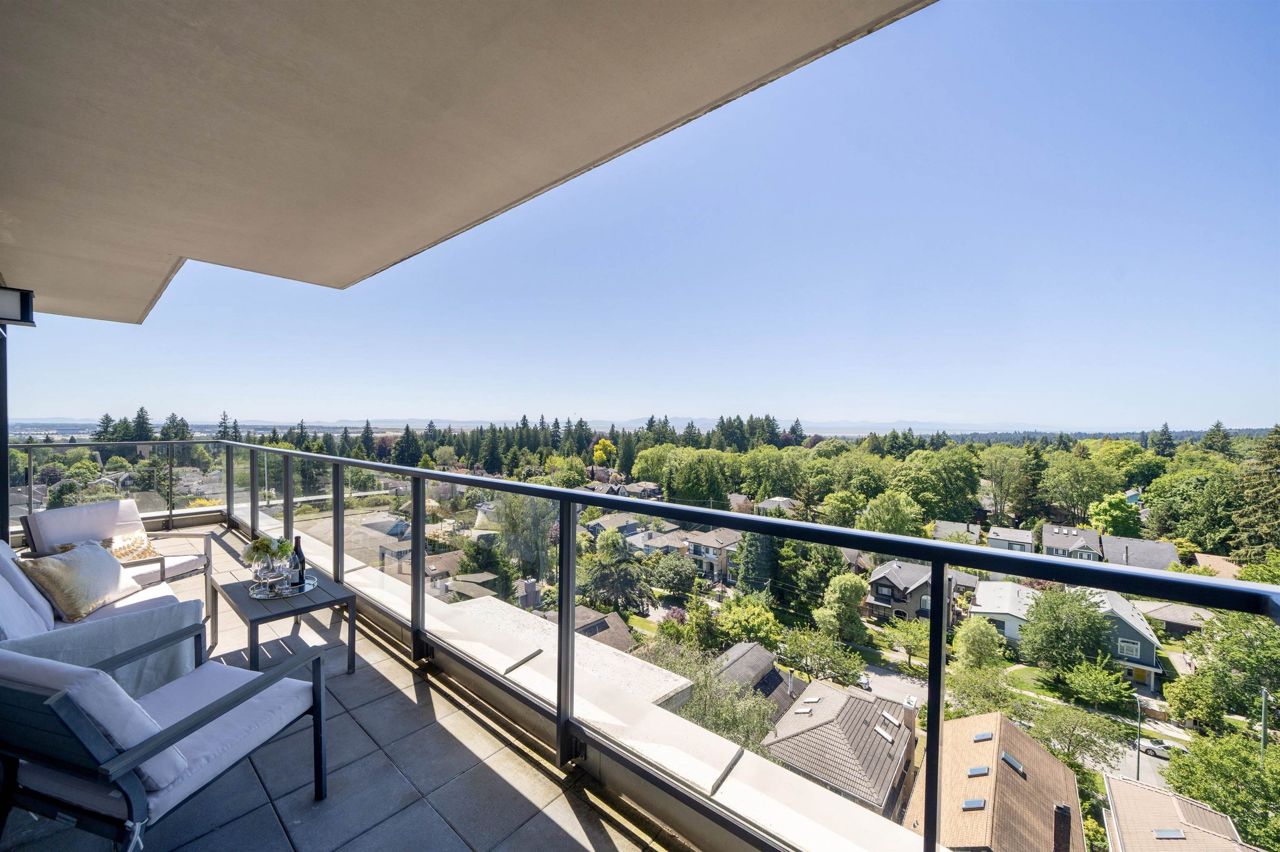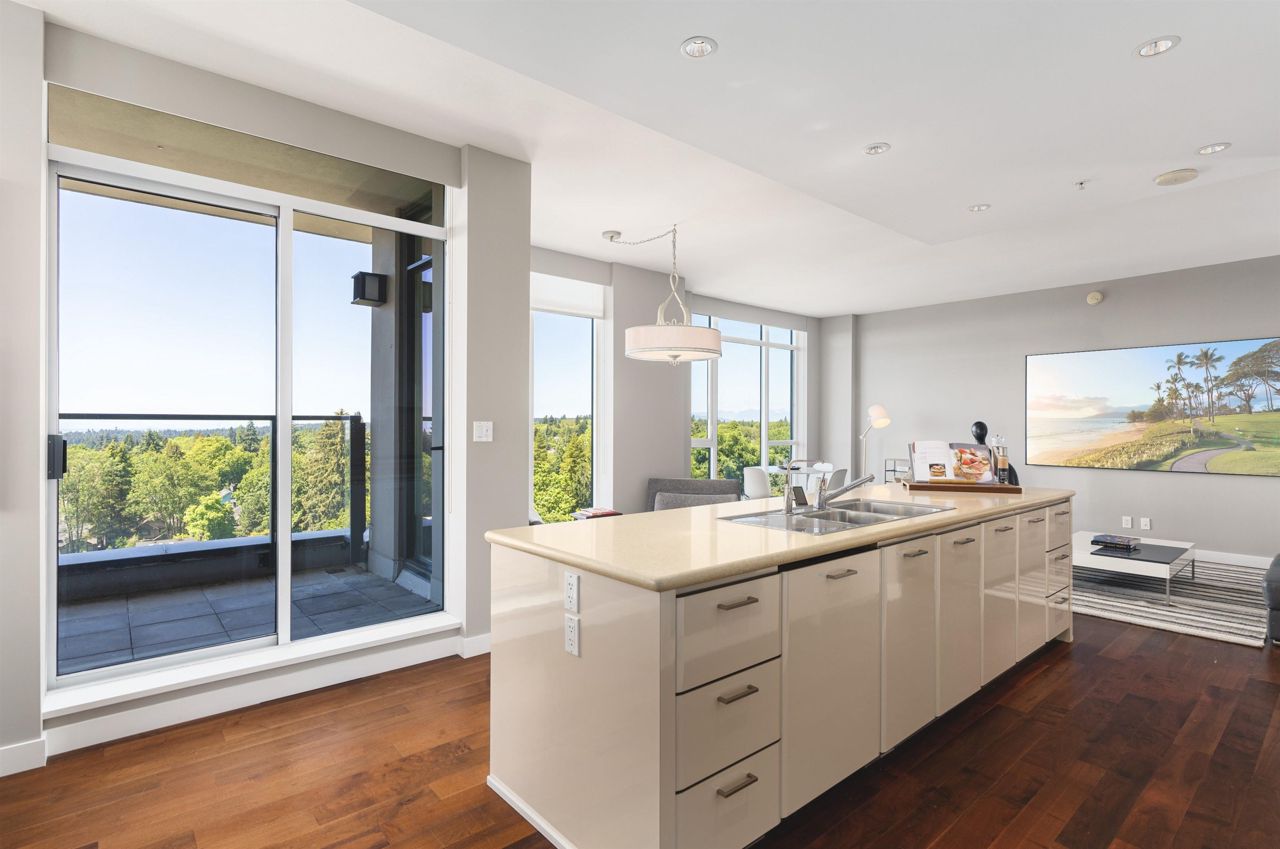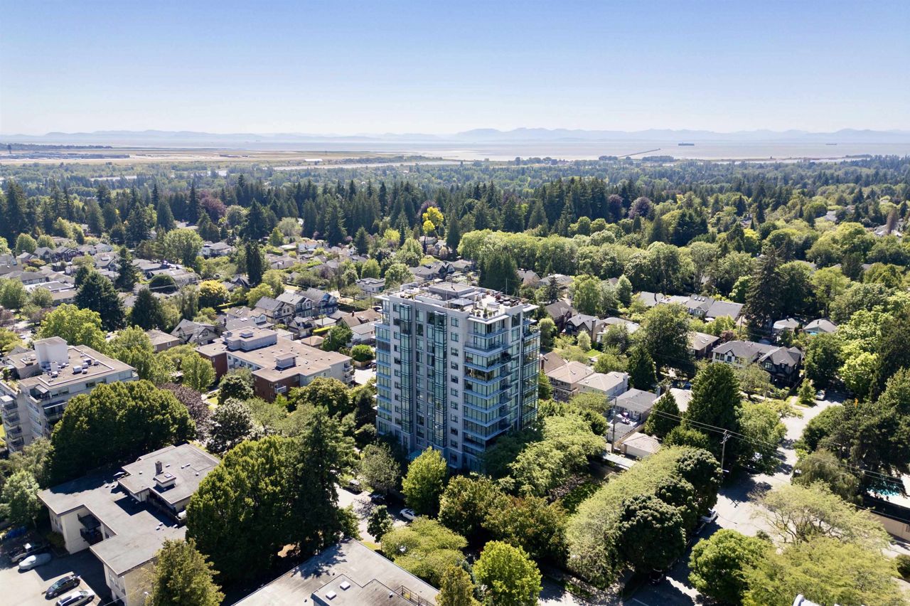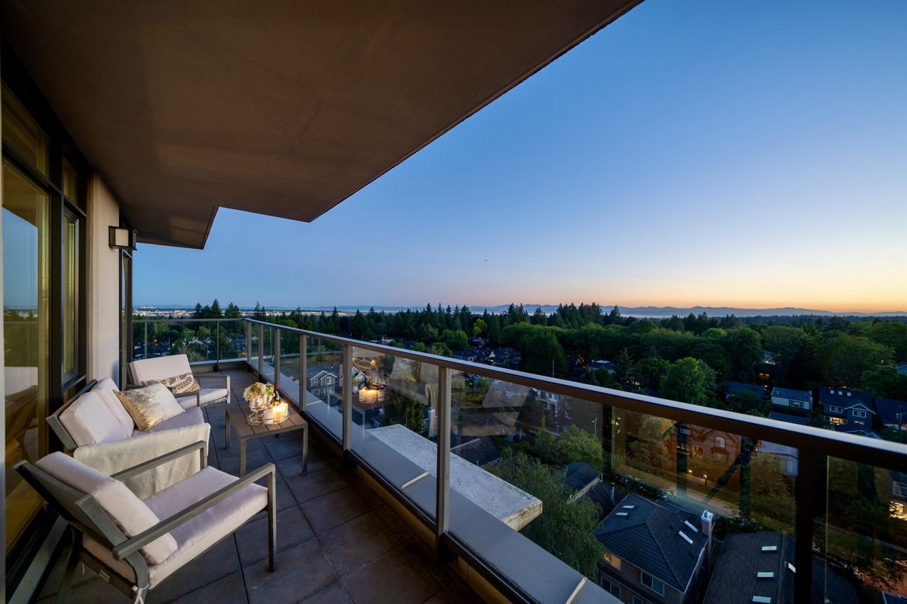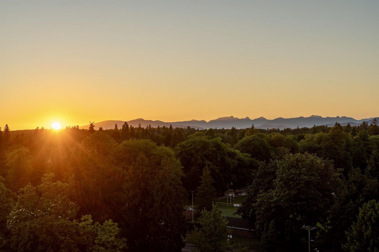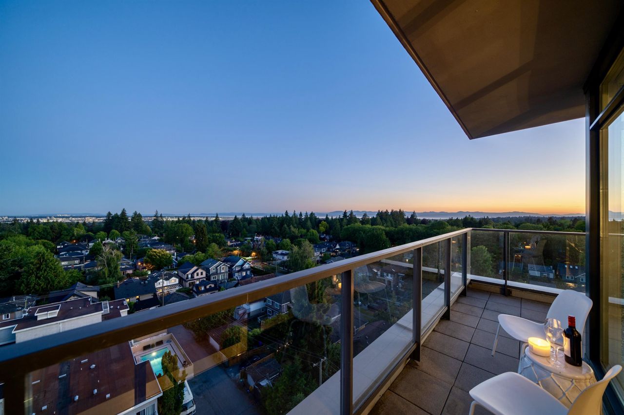 Rarely available, exquisite sub-penthouse at the luxury & exclusive 5955 Balsam, nestled serenely on a quiet, tree-lined street w/ just 41 units in total. This beautiful home is a sanctuary of unparalleled elegance. Wake up to breathtaking views of the endless ocean & majestic mountains, w/ stunning sunsets that transform the sky into a canvas of vibrant hues. 9.5' ceiling, open, airy, abundant natural light. An oversized den perfect for hosting guests or setting up your dream office. Whether you prefer a quiet evening in or entertaining family & friends in the inviting space, every moment here promises comfort & sophistication. Move-in Ready! Bonus: a private, enclosed triple garage &spacious storage locker.