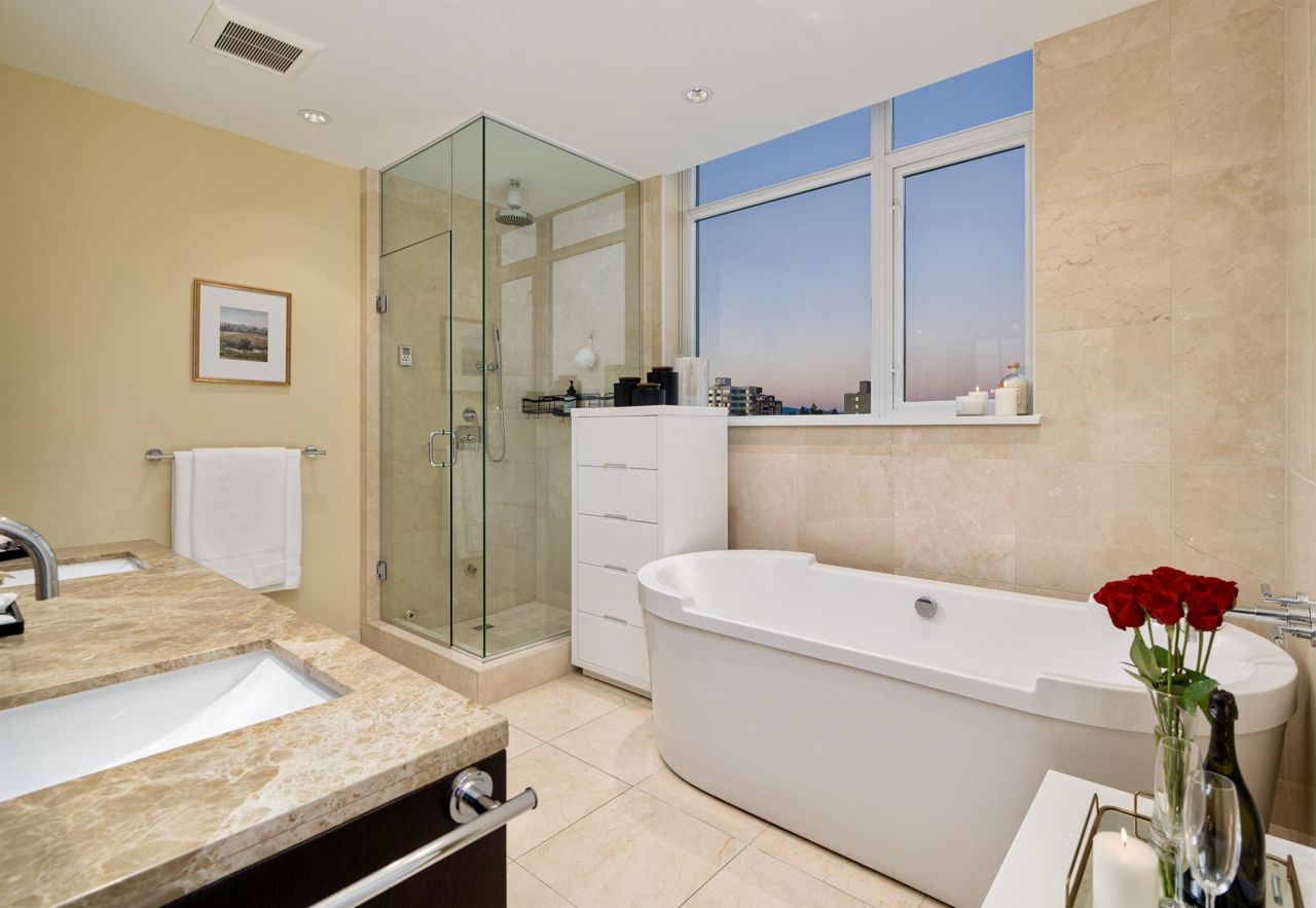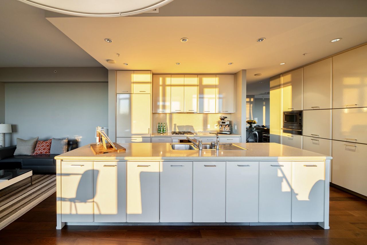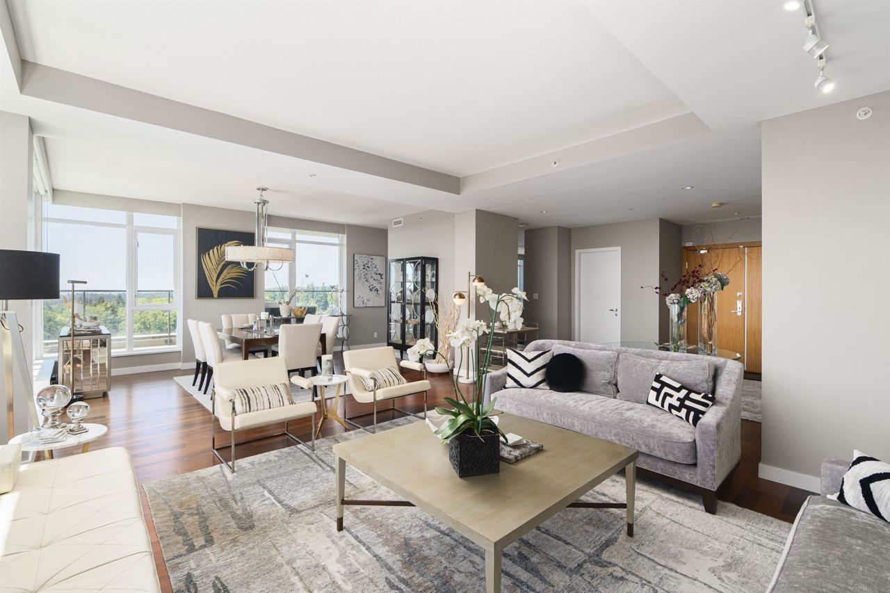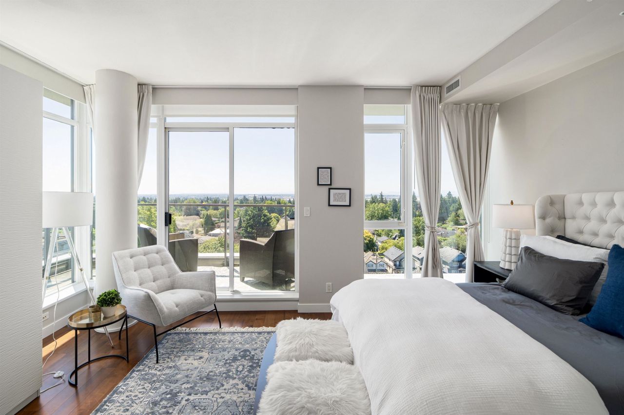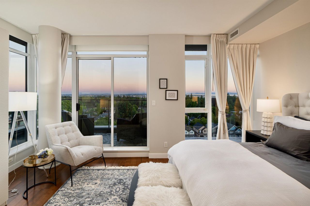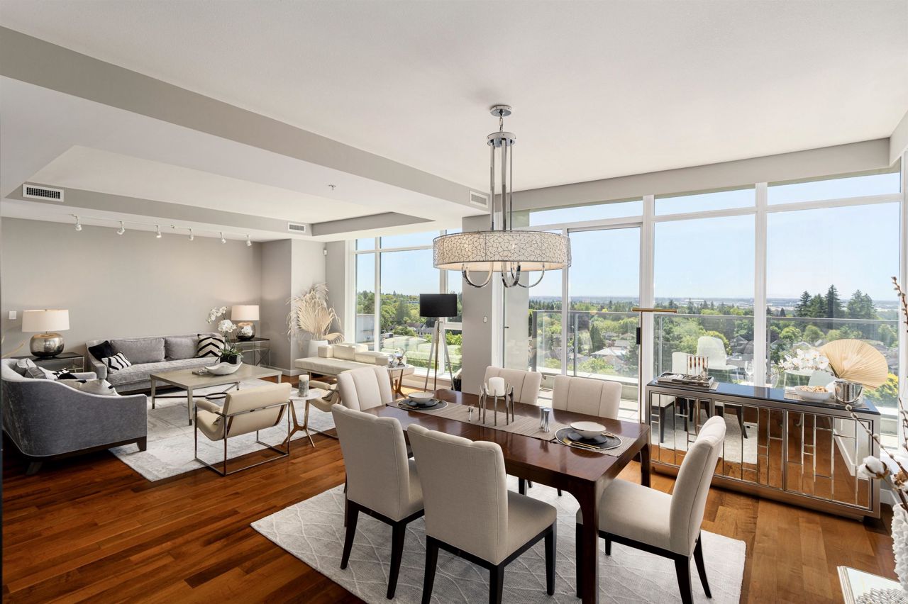 Rarely available, exquisite sub-penthouse at the luxury & exclusive 5955 Balsam, nestled serenely on a quiet, tree-lined street w/ just 41 units in total. This beautiful home is a sanctuary of unparalleled elegance. Wake up to breathtaking views of the endless ocean & majestic mountains, w/ stunning sunsets that transform the sky into a canvas of vibrant hues. 9.5' ceiling, open, airy, abundant natural light. An oversized den perfect for hosting guests or setting up your dream office. Whether you prefer a quiet evening in or entertaining family & friends in the inviting space, every moment here promises comfort & sophistication. Move-in Ready! Bonus: a private, enclosed triple garage &spacious storage locker.