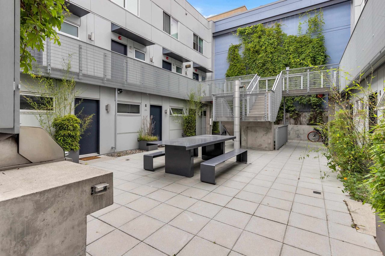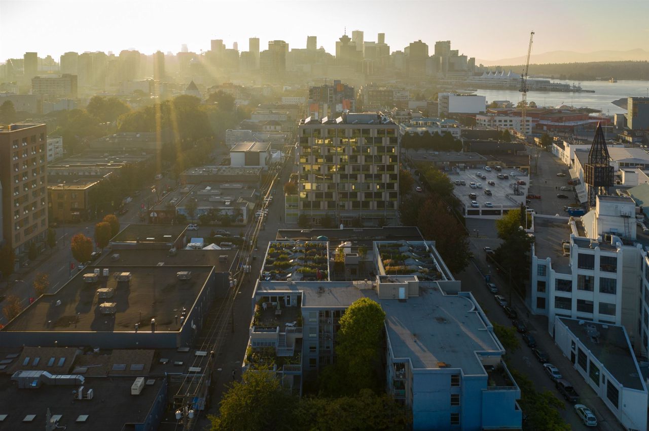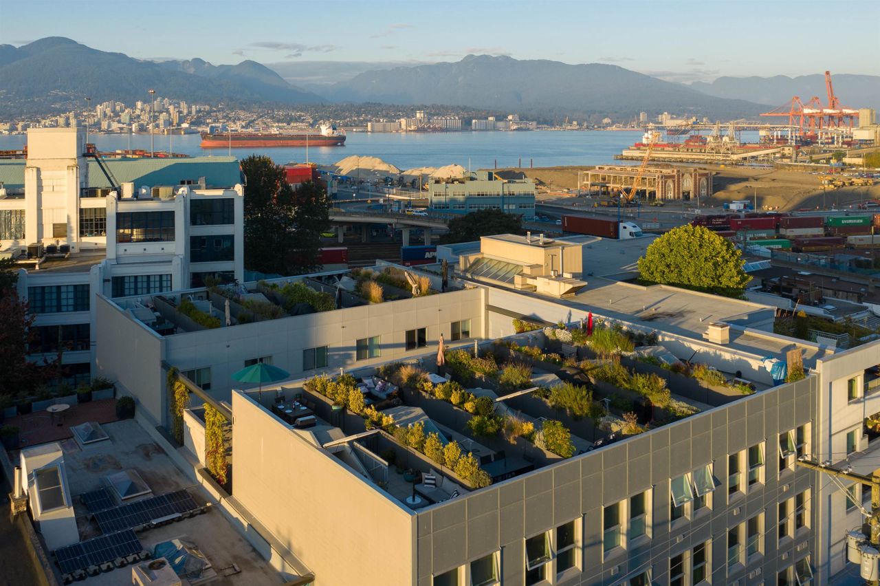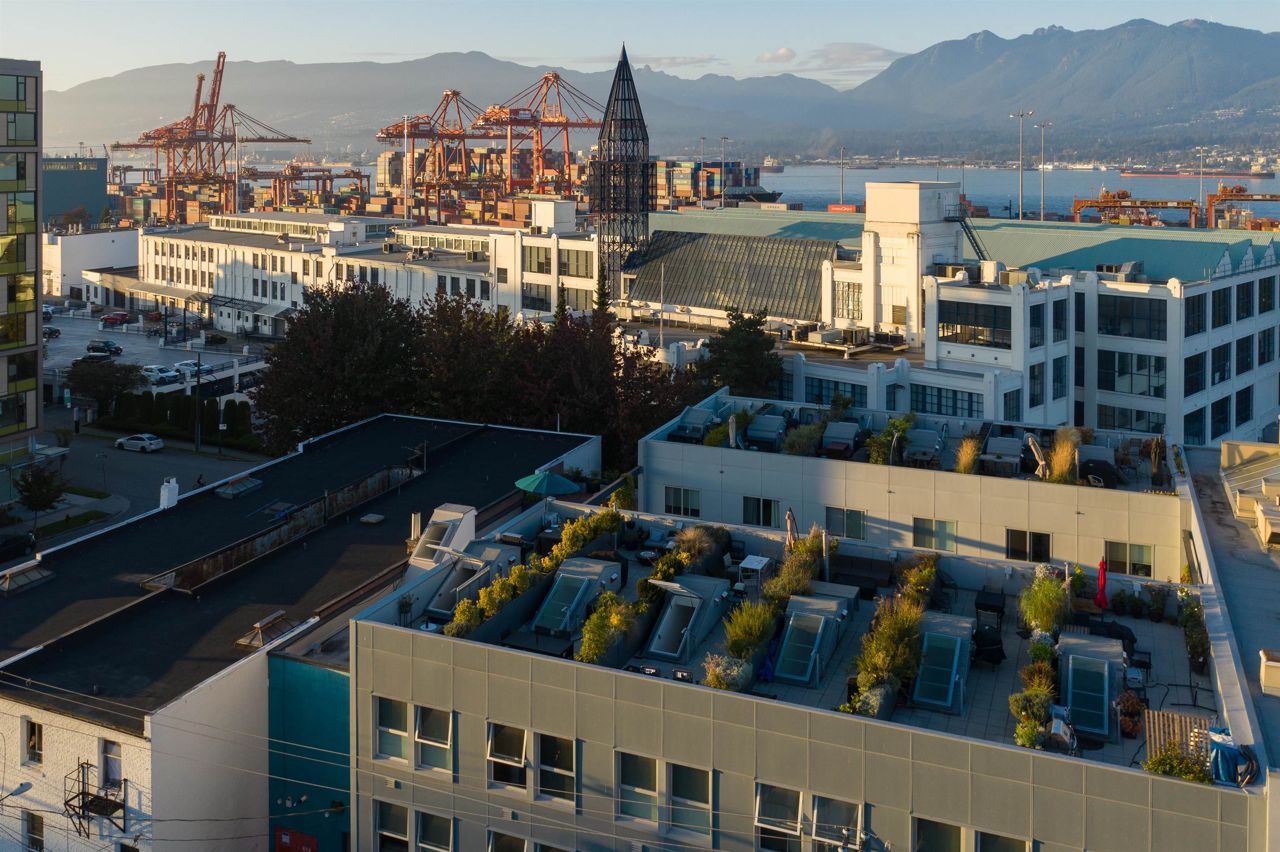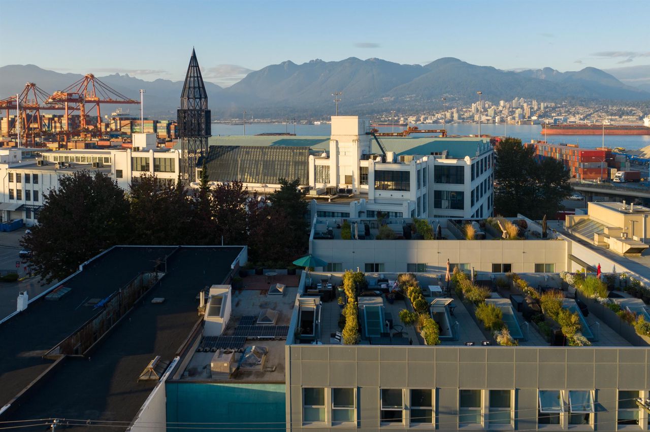 THE CITY'S BEST KEPT SECRET. Highlights of a rare offering! ROOFTOP. Entertain or greenthumb from a dream 370ft privately hedged terrace w/water+nat gas+electrical - a true extension of living! City+Mtn views, sunrise to sunset. SPACE. Bright&airy elevated 2-storey CORNER home over podium courtyard feat/9ft lofted ceiling, gorgeous 2 Bed+Flex nursery/office, 3 bath, generous storage! DESIGN. Clean lines+quality built. Custom kitchen inc/European cabinetry&integrated appliances, quartz. Premium eng hardwood. Designer lighting. Spa ensuite w/walk-in shower+floating vanity. AMENITIES. Exclusive 25 Home Community. Oversized parking w/EV charge, locker, bike room. SHORT TERM RENTALS - 3 day min! RAILTOWN. Emerging hood, bike route, steps to Belgard Kitchen, breweries, short walk to Gastown!