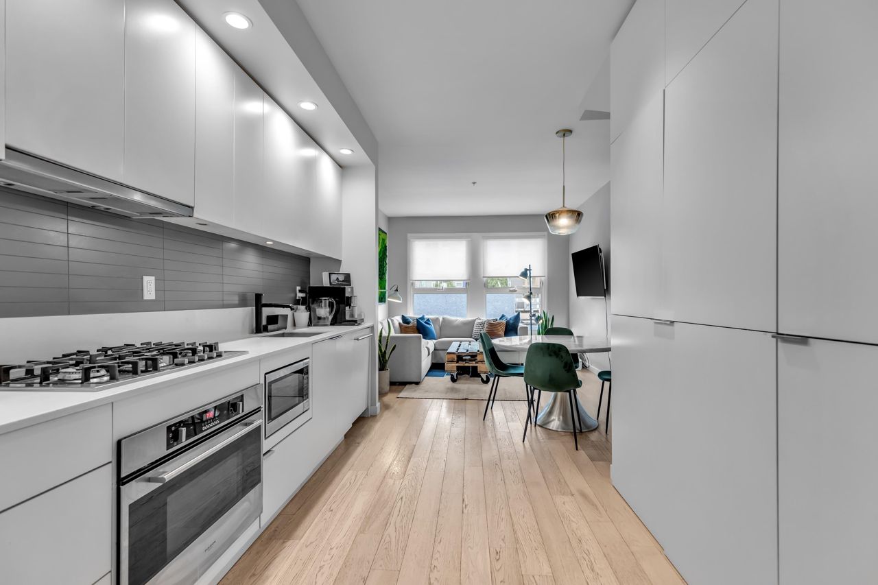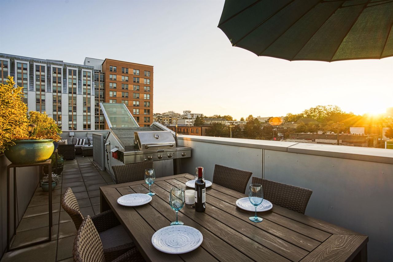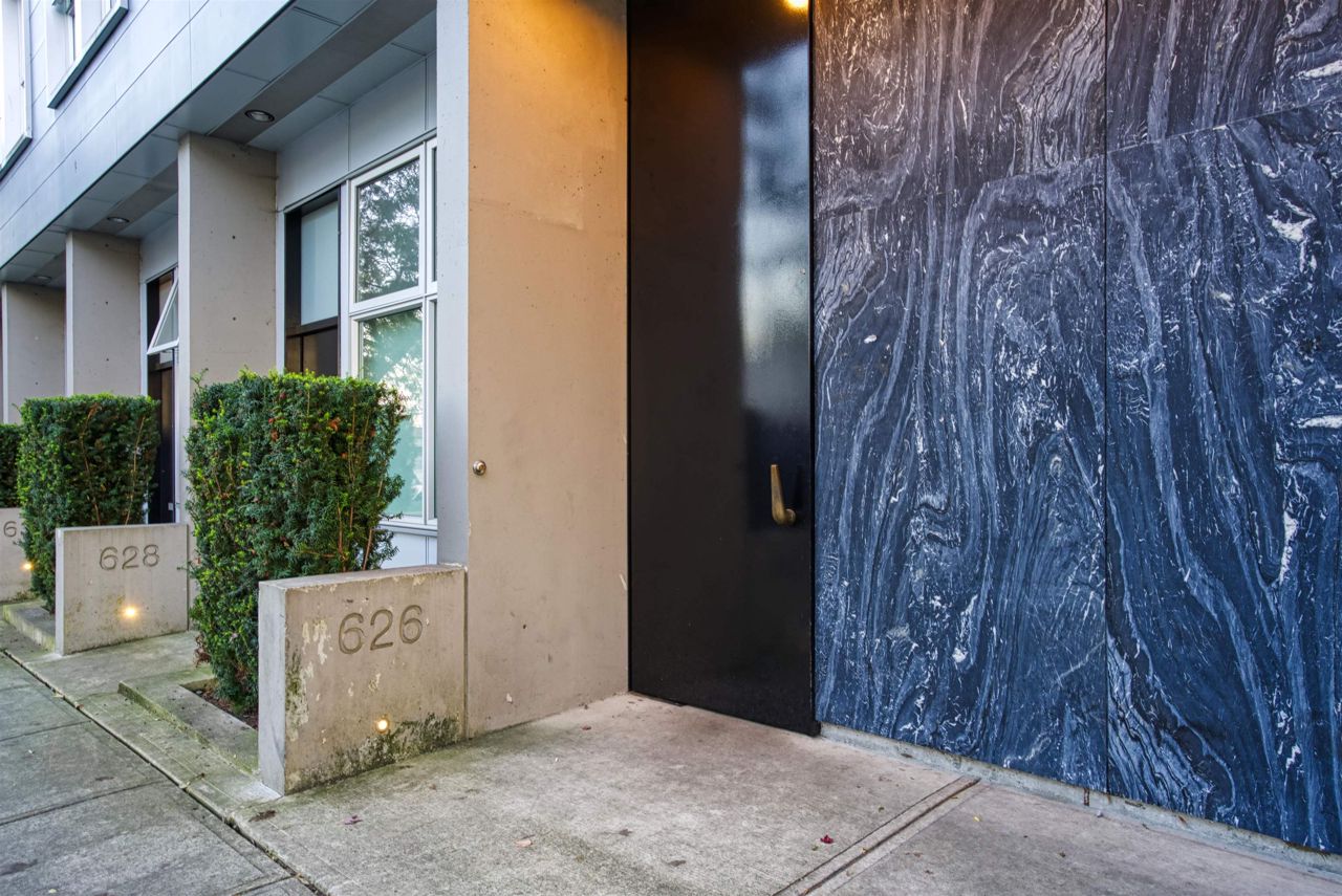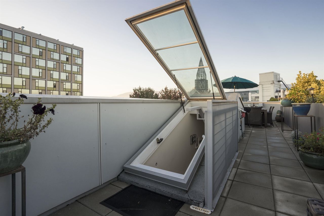 THE CITY'S BEST KEPT SECRET. Highlights of a rare offering! ROOFTOP. Entertain or greenthumb from a dream 370ft privately hedged terrace w/water+nat gas+electrical - a true extension of living! City+Mtn views, sunrise to sunset. SPACE. Bright&airy elevated 2-storey CORNER home over podium courtyard feat/9ft lofted ceiling, gorgeous 2 Bed+Flex nursery/office, 3 bath, generous storage! DESIGN. Clean lines+quality built. Custom kitchen inc/European cabinetry&integrated appliances, quartz. Premium eng hardwood. Designer lighting. Spa ensuite w/walk-in shower+floating vanity. AMENITIES. Exclusive 25 Home Community. Oversized parking w/EV charge, locker, bike room. SHORT TERM RENTALS - 3 day min! RAILTOWN. Emerging hood, bike route, steps to Belgard Kitchen, breweries, short walk to Gastown!