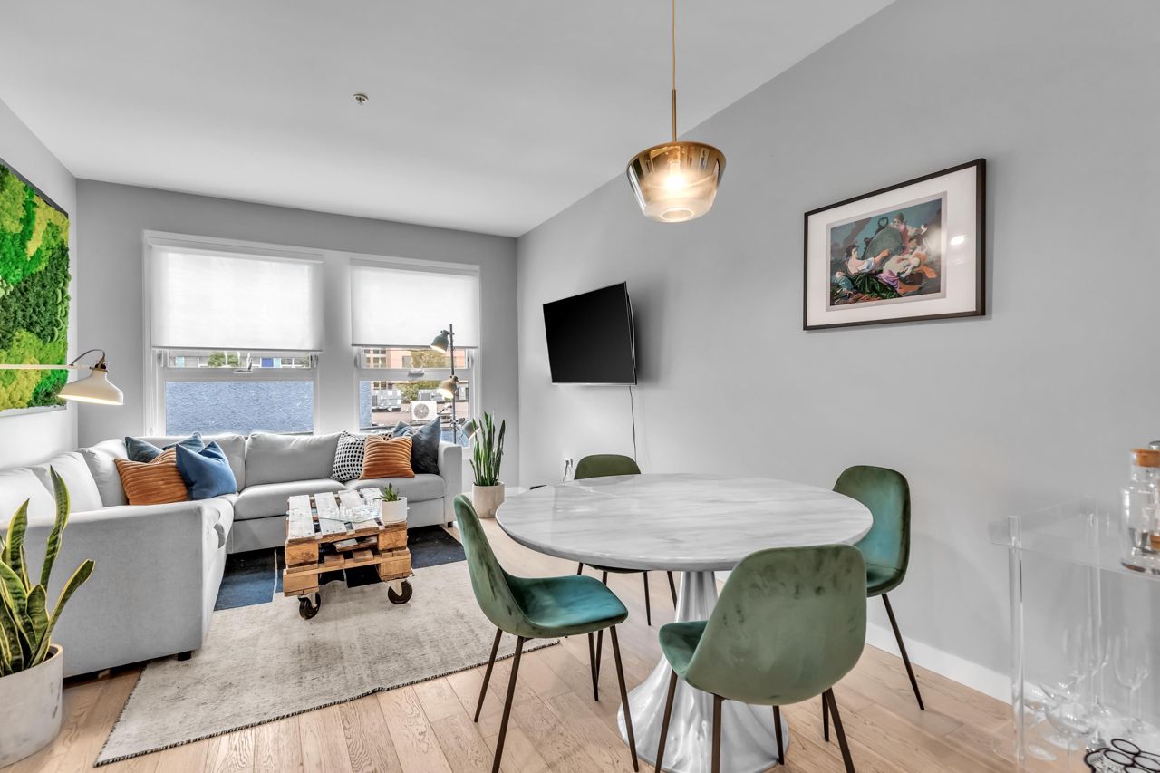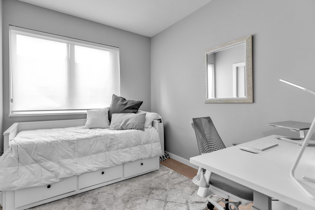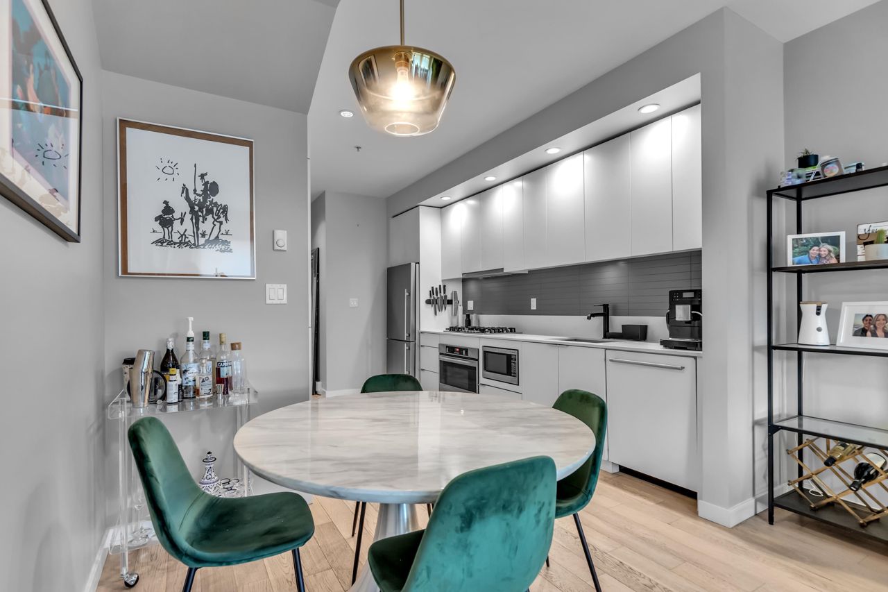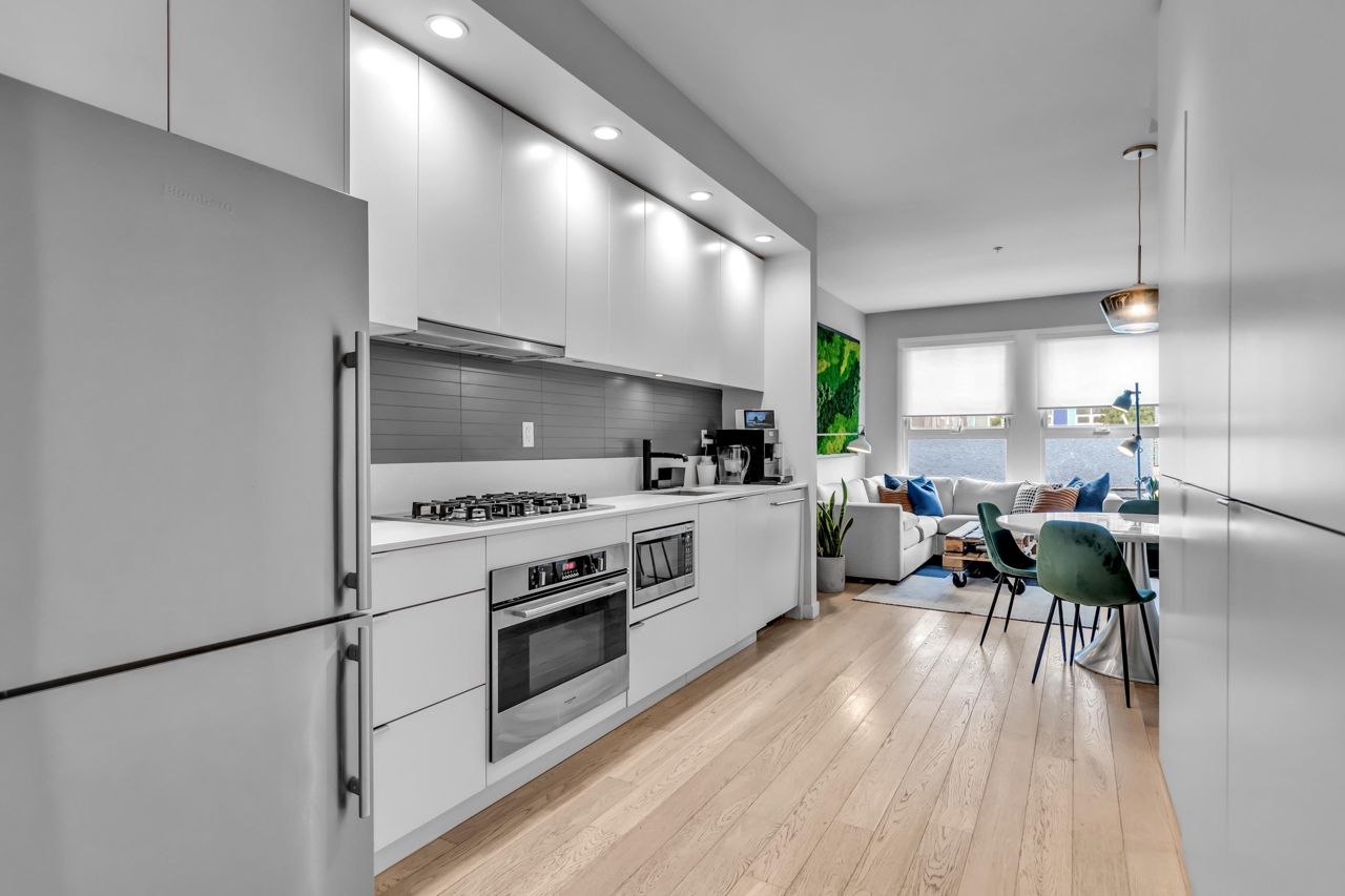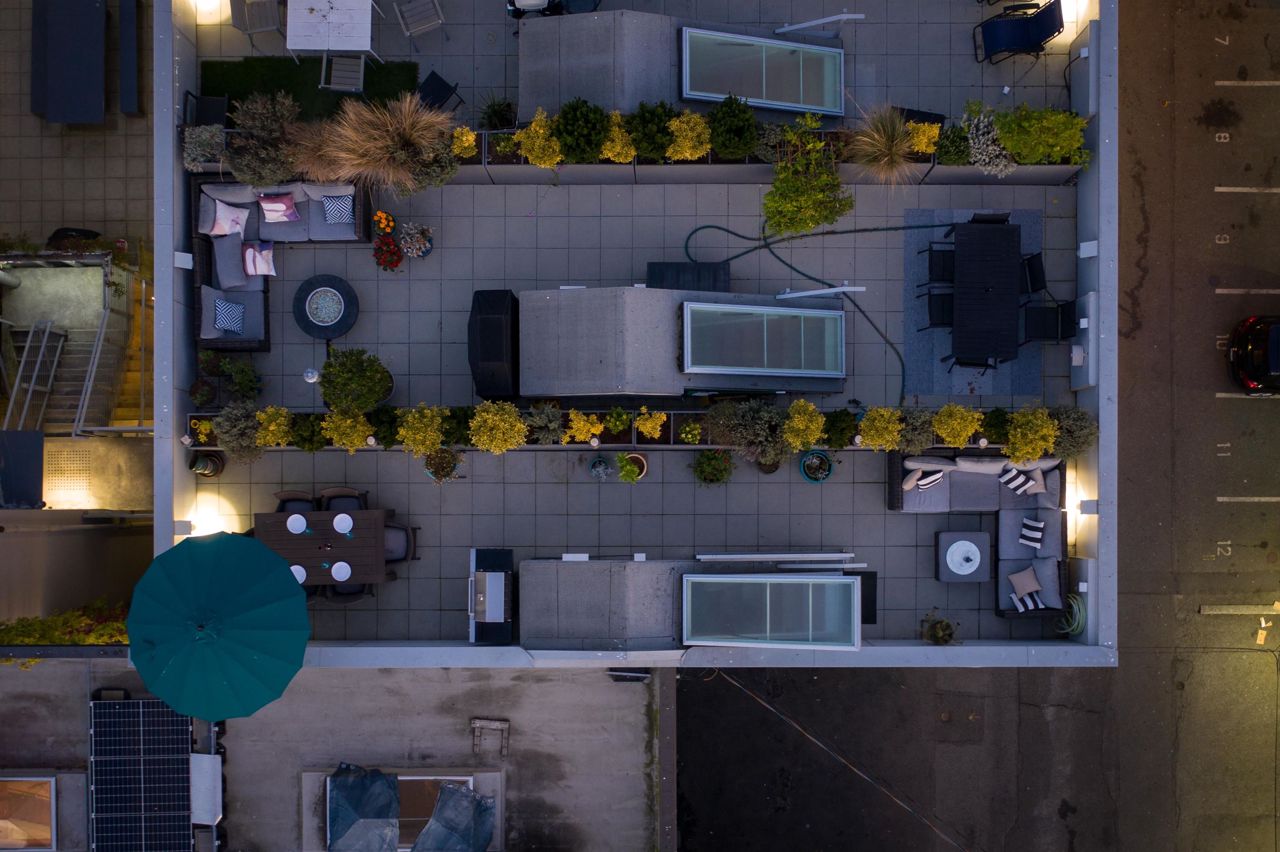 THE CITY'S BEST KEPT SECRET. Highlights of a rare offering! ROOFTOP. Entertain or greenthumb from a dream 370ft privately hedged terrace w/water+nat gas+electrical - a true extension of living! City+Mtn views, sunrise to sunset. SPACE. Bright&airy elevated 2-storey CORNER home over podium courtyard feat/9ft lofted ceiling, gorgeous 2 Bed+Flex nursery/office, 3 bath, generous storage! DESIGN. Clean lines+quality built. Custom kitchen inc/European cabinetry&integrated appliances, quartz. Premium eng hardwood. Designer lighting. Spa ensuite w/walk-in shower+floating vanity. AMENITIES. Exclusive 25 Home Community. Oversized parking w/EV charge, locker, bike room. SHORT TERM RENTALS - 3 day min! RAILTOWN. Emerging hood, bike route, steps to Belgard Kitchen, breweries, short walk to Gastown!