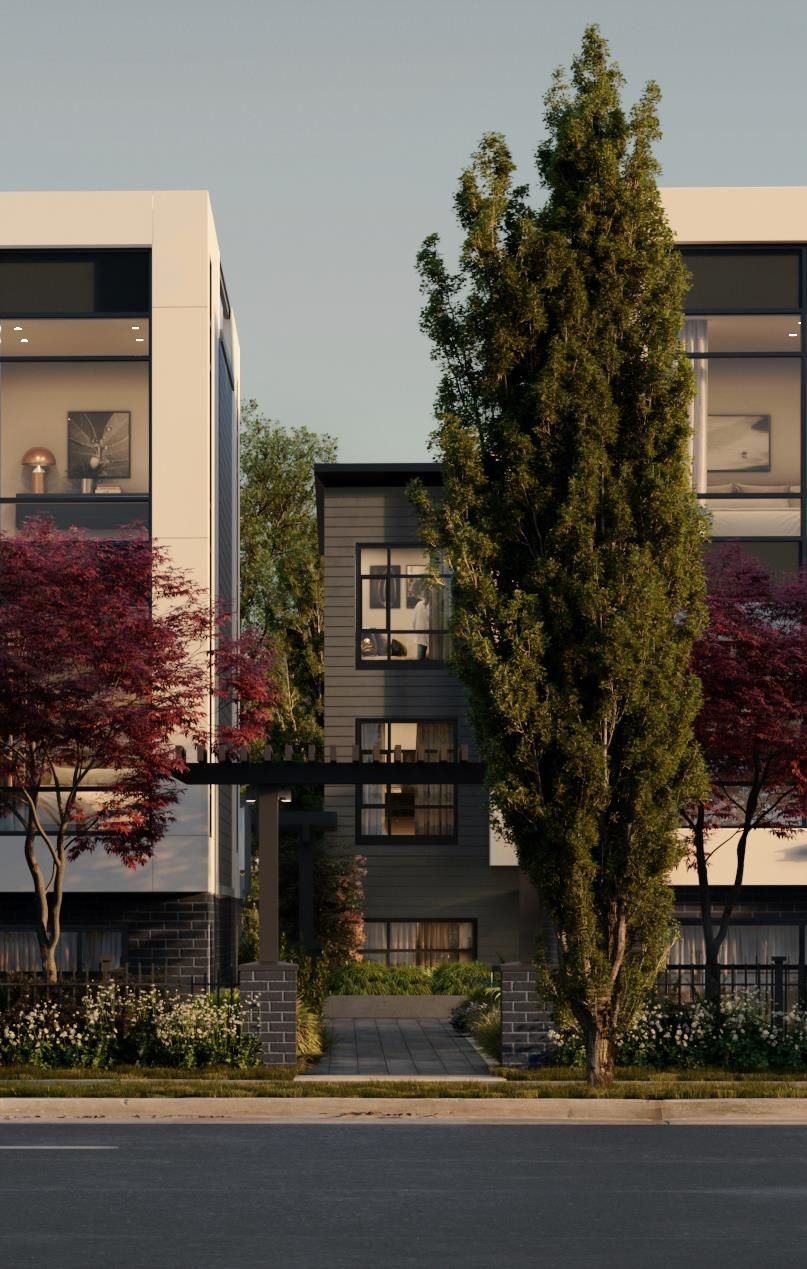 Rowen W47 by Alabaster Homes. 36 Contemporary cityhomes traversing nature and urban living. Located right on Oak Street, your access to Vancouver is unparalleled. The Oakridge neighbourhood is undergoing considerable change, bringing even more accessibility and amenities to the neighbourhood in a thoughtful scaling plan that looks 30 years in the future. Featuring a textured mix of fibre cement, brick, and metal, Rowen W47 presents a sophisticated approach to contemporary West Coast design. Rowen W47 is surrounded by mature, native trees lending privacy and a verdurous backdrop to your home.