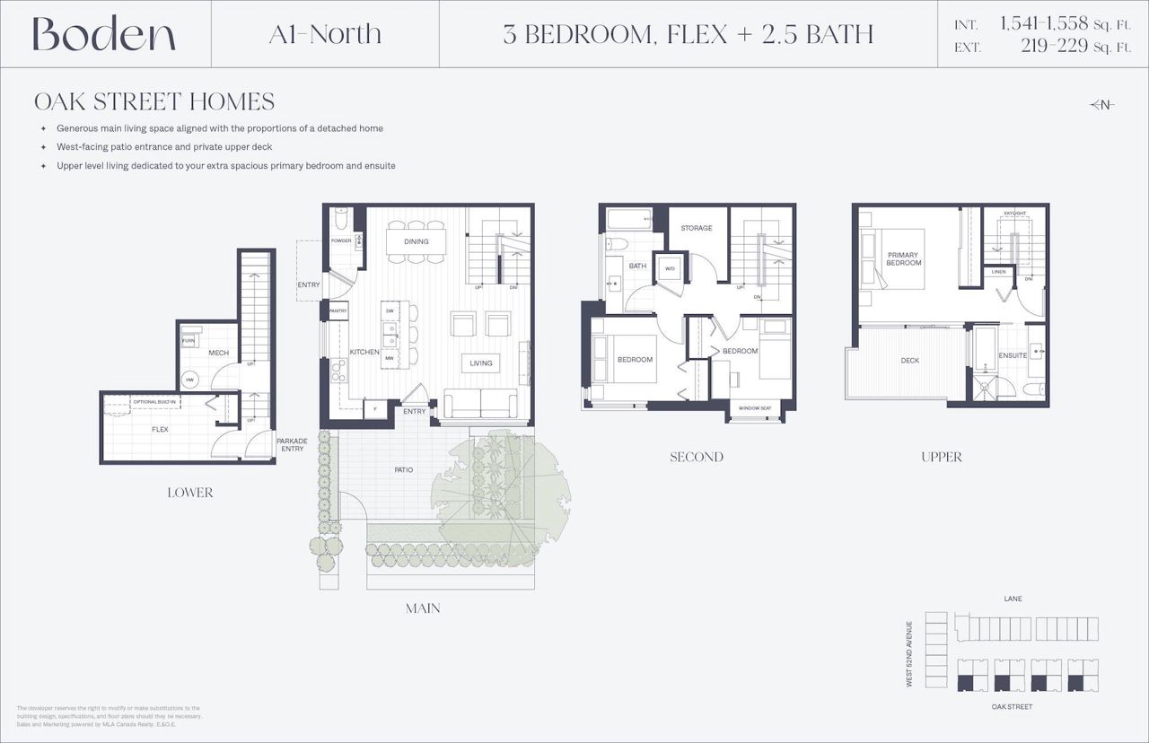 Boden by Listraor is Listraor's 8th development on Oak Street in the past 10 years. 36 townhomes primarily 3 bedrooms with estimated completion early 2023. This corner 3 bed 2.5 bath with flex & storage room is 1541SF with an additional 2 massive patios off main living area & primary bedroom. Want filtered air? Keep cool in the summer with AC and wam in the winter with Boden's Air Source Hear Pump. Windows, windows, windows! Kitchen, bathroom and skylight add plenty of natural light to this spacious courtyard level homes offer the security of direct access parking and community for growing families in Oakridge. $20k off the purchase price for limited time offer. Open house Sat. Sun. 12-5Pm