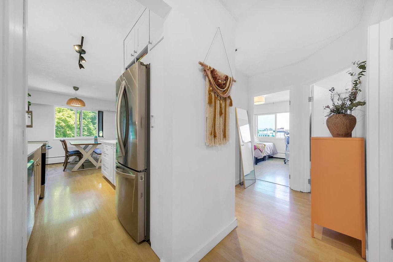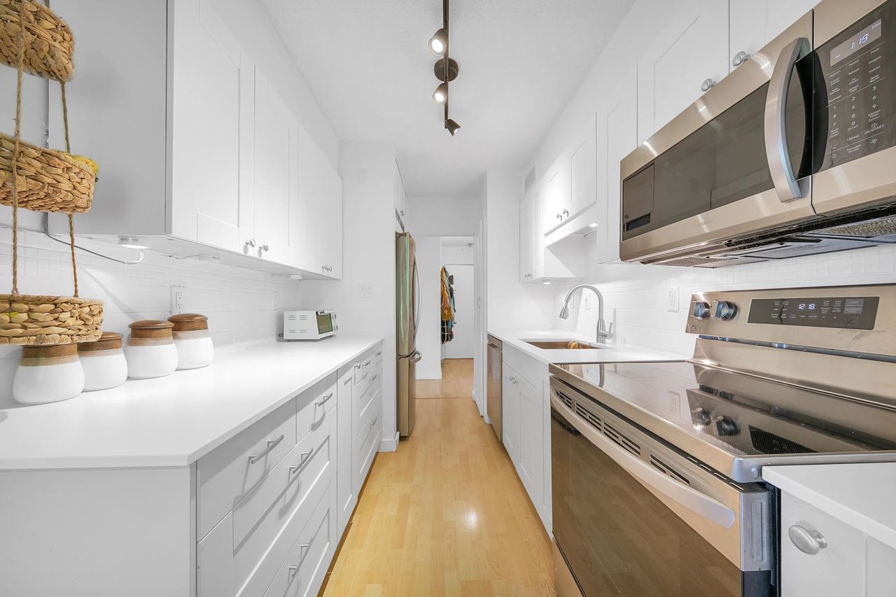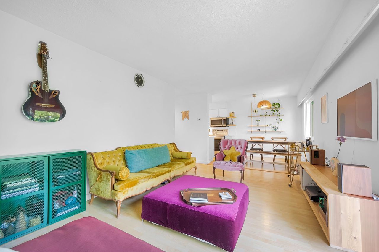 2 bed + 1 bath located on top floor featuring huge wraparound balcony with city and mountain views! Two good sized bedrooms included with upgraded kitchen and appliances. Building has been updated with newer windows, balcony doors, roof, and plumbing. Great location, just a short walk to many local shops, restaurants, cafe's and breweries! Nearby is Vancouver Community College, Clark Skytrain Station, Emily Carr University, Olympic Village, and Broadway Skytrain. Secured underground parking and storage included. Pet & rental friendly. A MUST SEE! Call today.