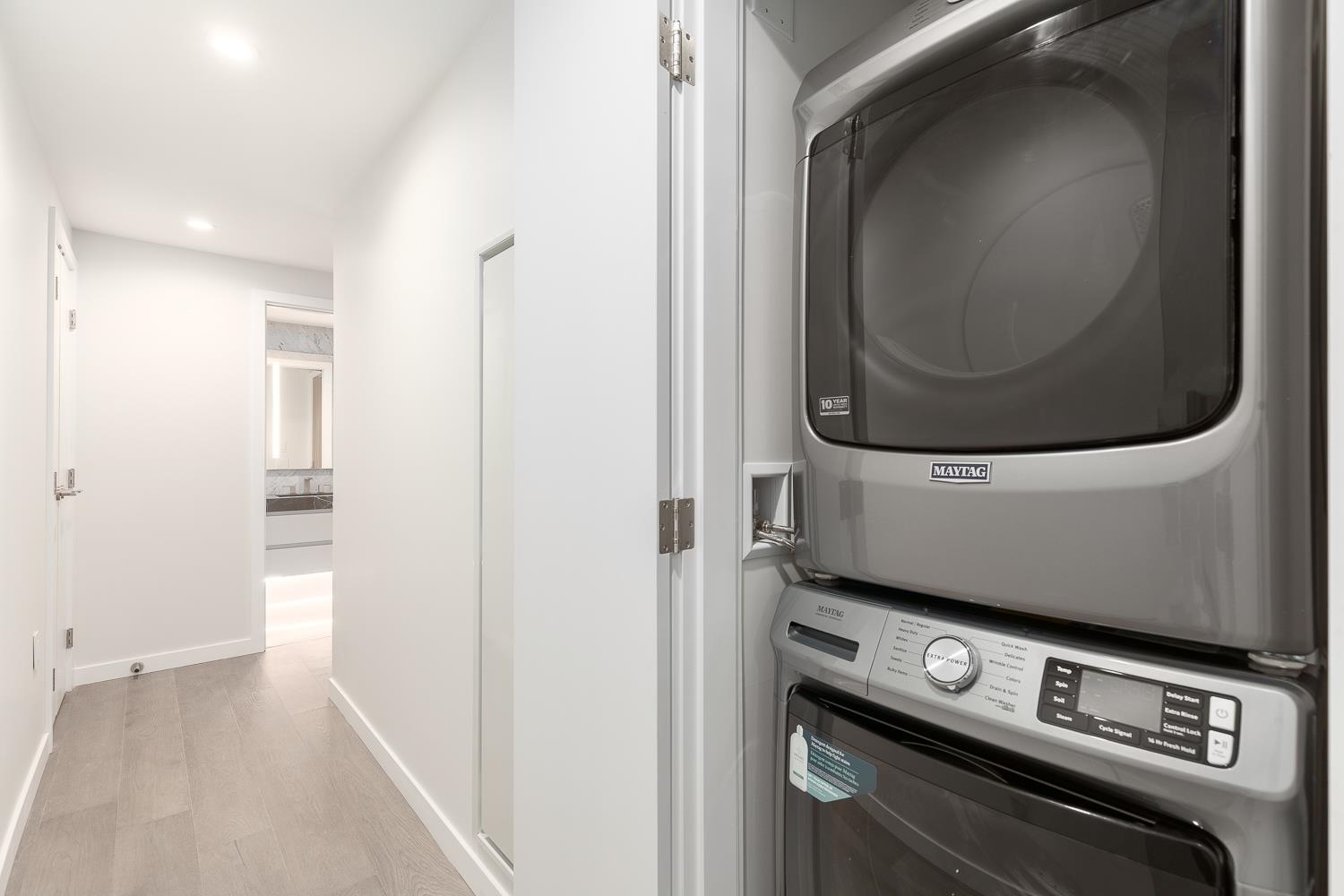 Welcome to this stunning BRAND NEW home at South Cambie’s newest built luxury development by Onni. This spacious 1 bed home features a massive South facing terrace with city views and tons of natural light. This home has a spacious kitchen with a premium appliance package including Wolf and Sub Zero. The 3 pc bathroom features Carrera marble tile throughout. Full size washer dryer in-suite is rare to find in a condo. Upgrades include electric blinds, master light switch, and a built in sound system. Includes 1 underground parking and 1 storage locker. Amenities Include a rooftop deck, concierge, Gym, pool, and lounge.