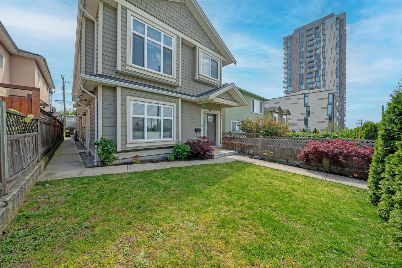 Amazing opportunity to own a spacious front facing 2 level half duplex in a desirable area close to everything! Upper floor features OPEN KITCHEN, living room, 2 large bedrooms and 2 full bathrooms. The lower level could be 1 bedroom or a two bedroom SUITE with a FULL KITCHEN and 2 SETS OF SEPARATE LAUNDRY. Lots of different options depending on your living needs. Designed with modern fixtures, good quality finishing, quartz counter-tops, high quality flooring for a contemporary look and more! Short commute to the Canada Line, Marine Gateway, Fraserview Golf Course, Vancouver International Airport and lively pockets of neighborhood shops. Included 1 single garage!