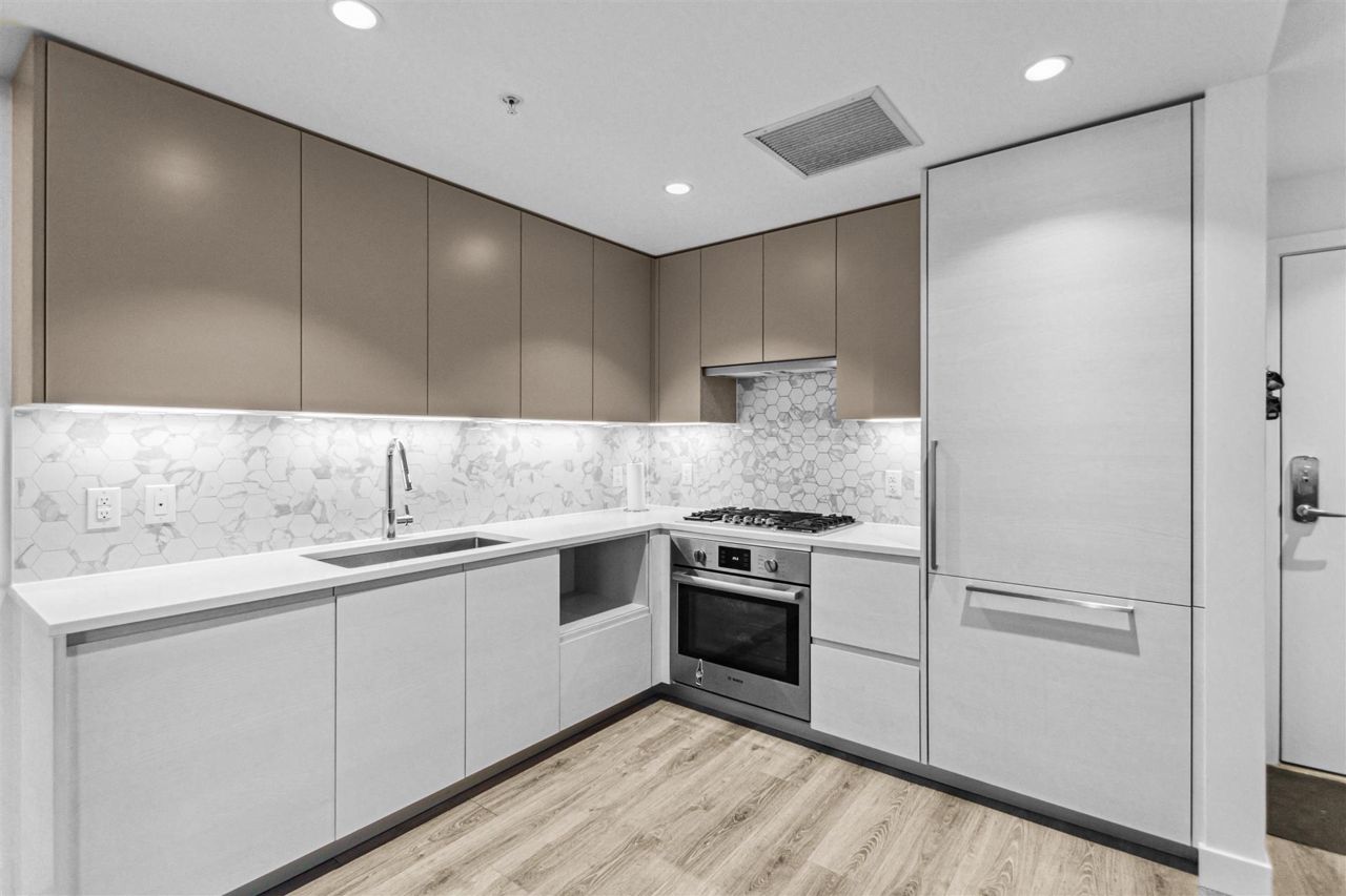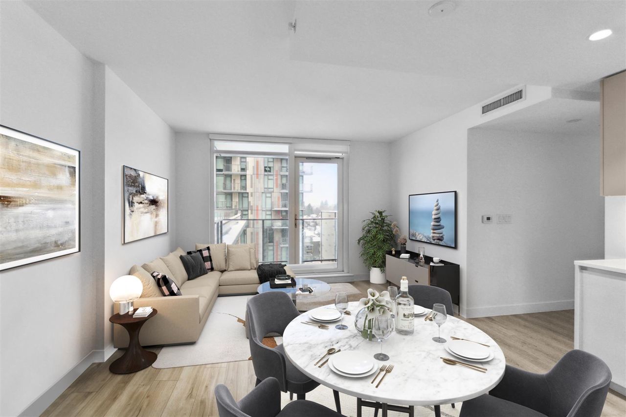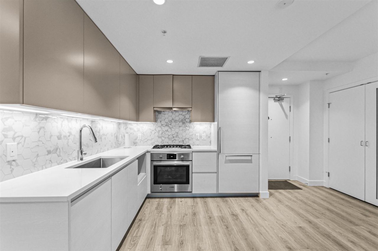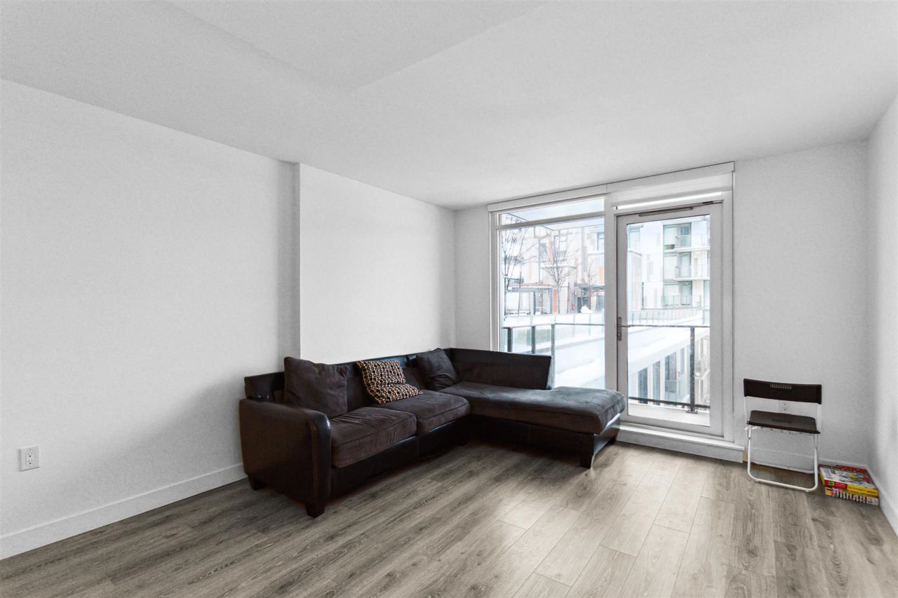 Welcome home to the 2 BED + DEN at FRASER COMMONS, bright unit w/South-west exposure. Sound proof huge windows ensure abundant natural light. Premium Branded Gas range top, Quartz Countertop, European Cabinetry & laminate flooring throughout the unit. Rainfall shower. Brought to you by team Serracan together with award-winning Farncl architecture and Cristina Oberti interior design. This unit boasts 9'3 ceilings & AC for year round comfort. One EV parking stall & one storage locker. Complete amenities for you to enjoy inc gym, central plaza, lounge w/kitchenette, study rooms. Rooftop Terrace Garden w/BBQ to bring you the best of Vancouver living. Walking distance to transit, groceries & shops. Minutes drive to Skytrain Station with easy access to Airport, Downtown, T&T, Langara & UBC.