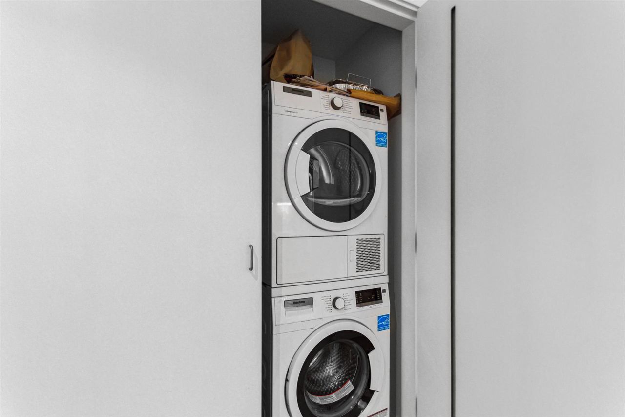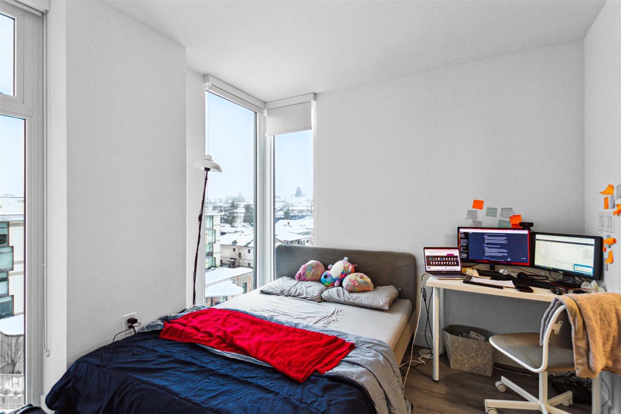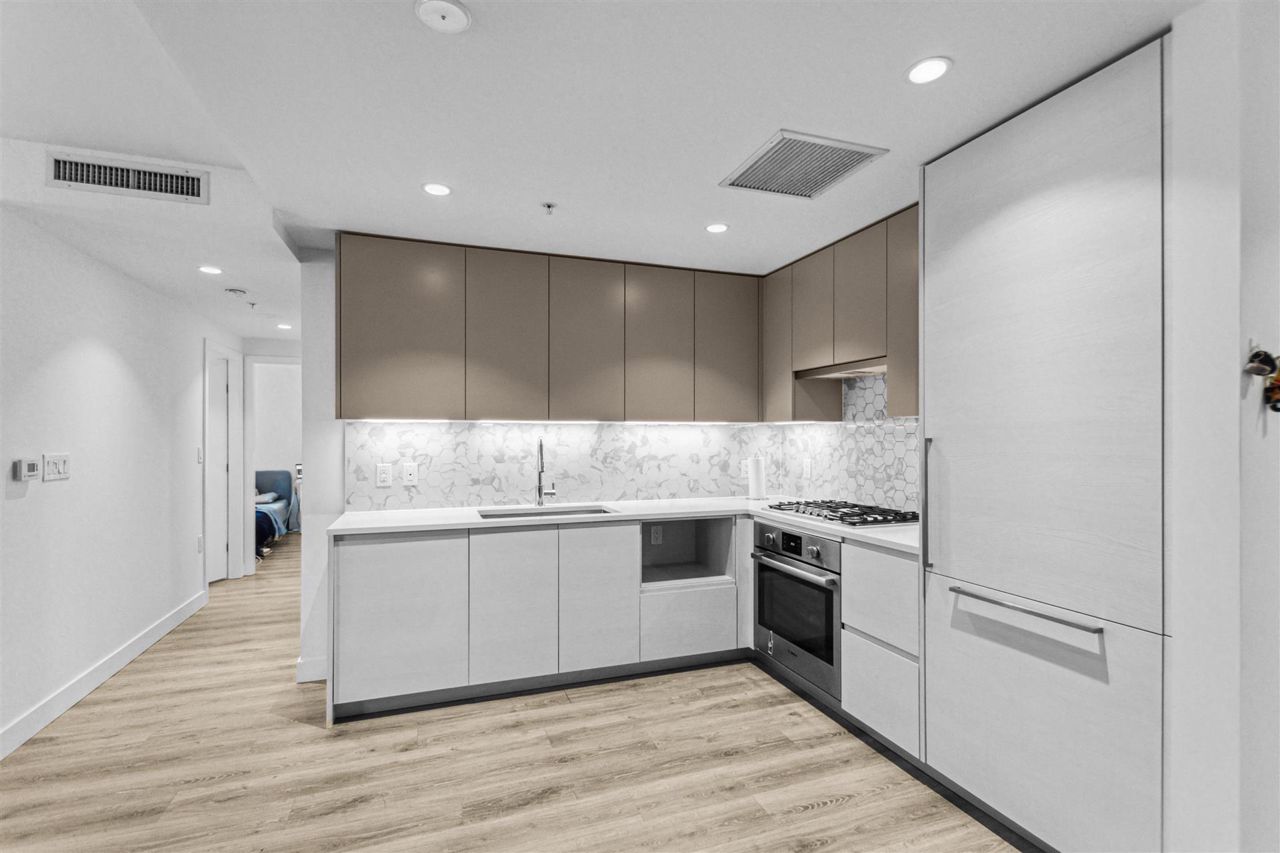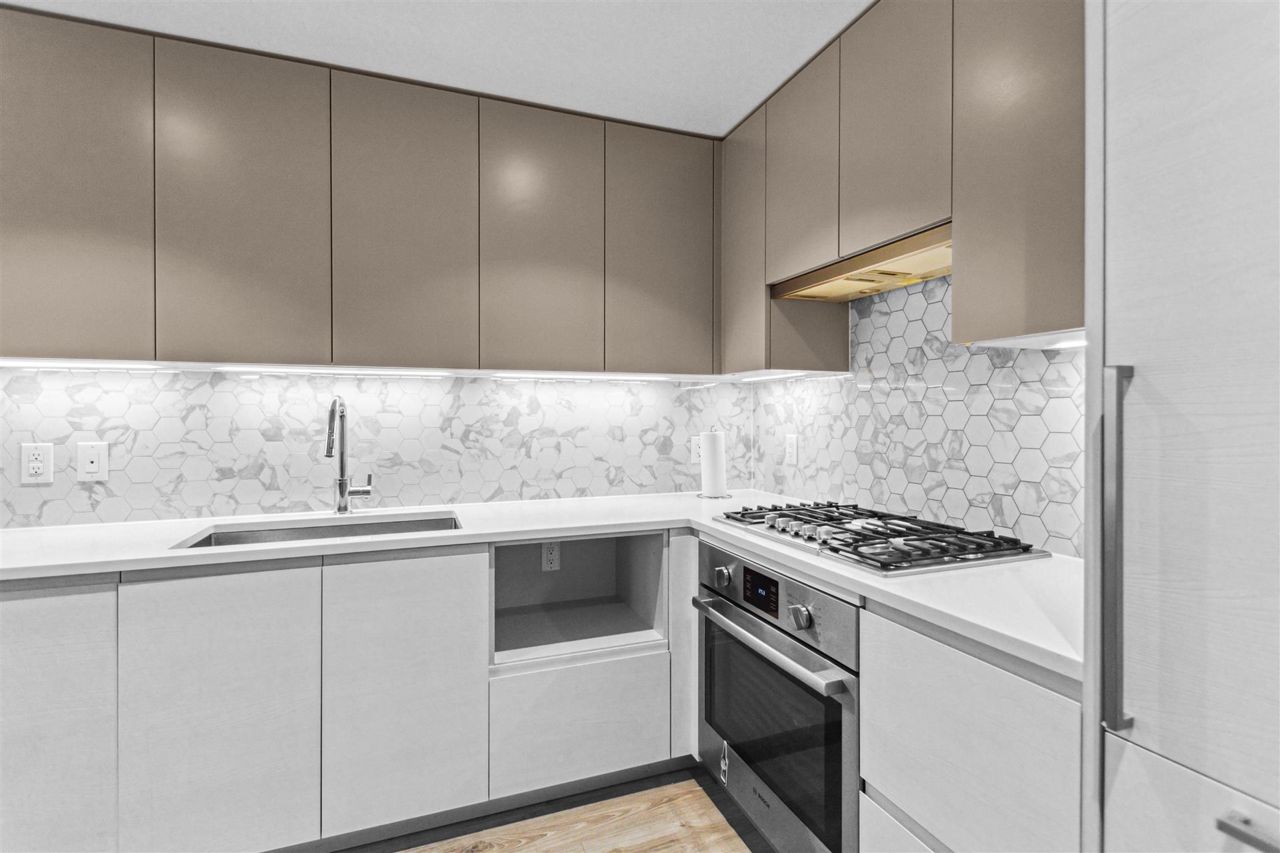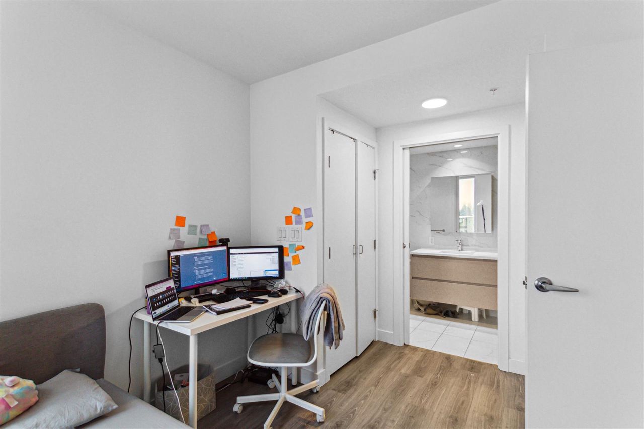 Welcome home to the 2 BED + DEN at FRASER COMMONS, bright unit w/South-west exposure. Sound proof huge windows ensure abundant natural light. Premium Branded Gas range top, Quartz Countertop, European Cabinetry & laminate flooring throughout the unit. Rainfall shower. Brought to you by team Serracan together with award-winning Farncl architecture and Cristina Oberti interior design. This unit boasts 9'3 ceilings & AC for year round comfort. One EV parking stall & one storage locker. Complete amenities for you to enjoy inc gym, central plaza, lounge w/kitchenette, study rooms. Rooftop Terrace Garden w/BBQ to bring you the best of Vancouver living. Walking distance to transit, groceries & shops. Minutes drive to Skytrain Station with easy access to Airport, Downtown, T&T, Langara & UBC.