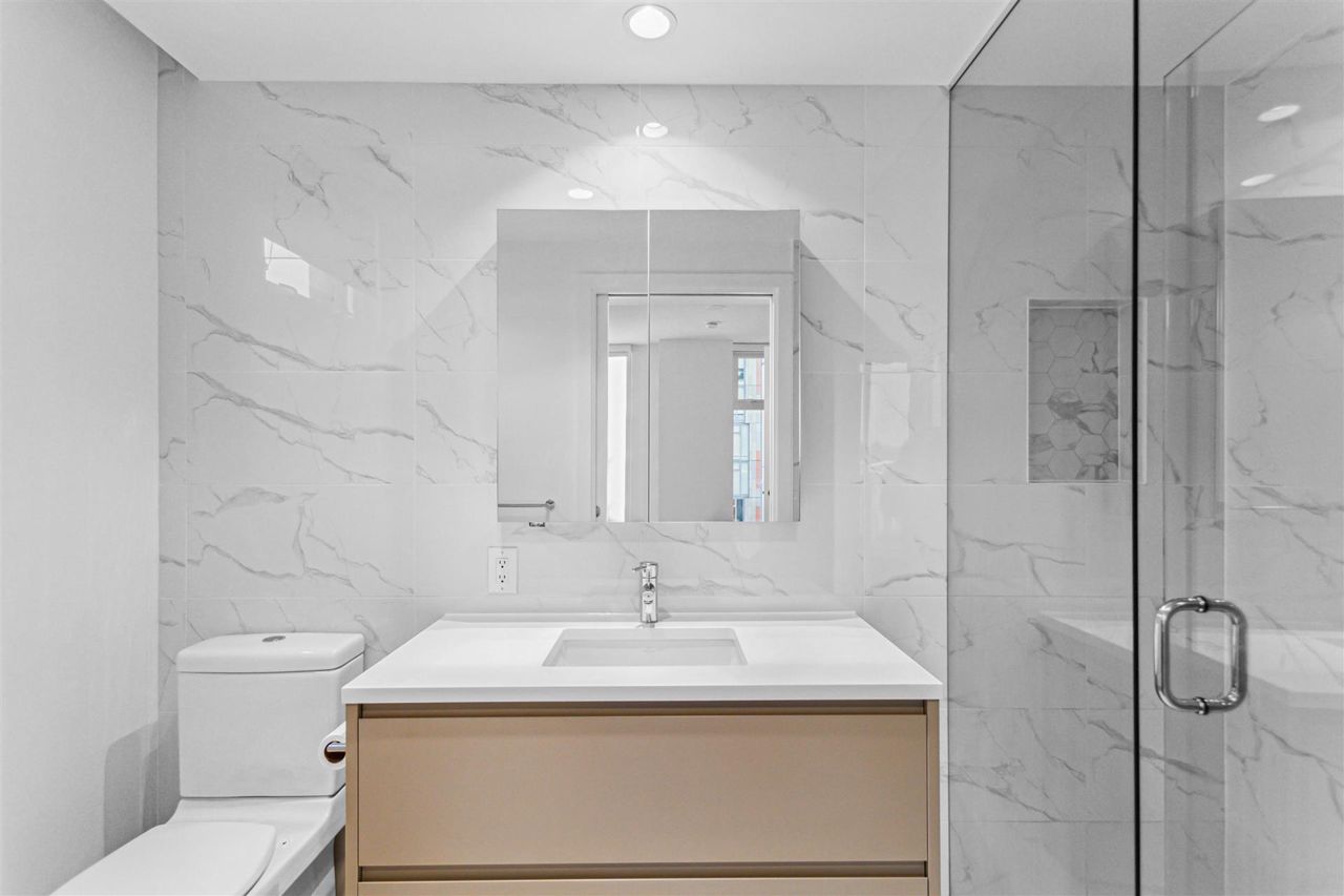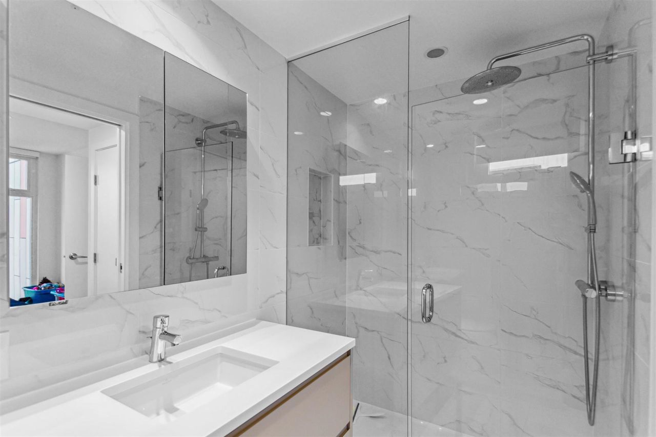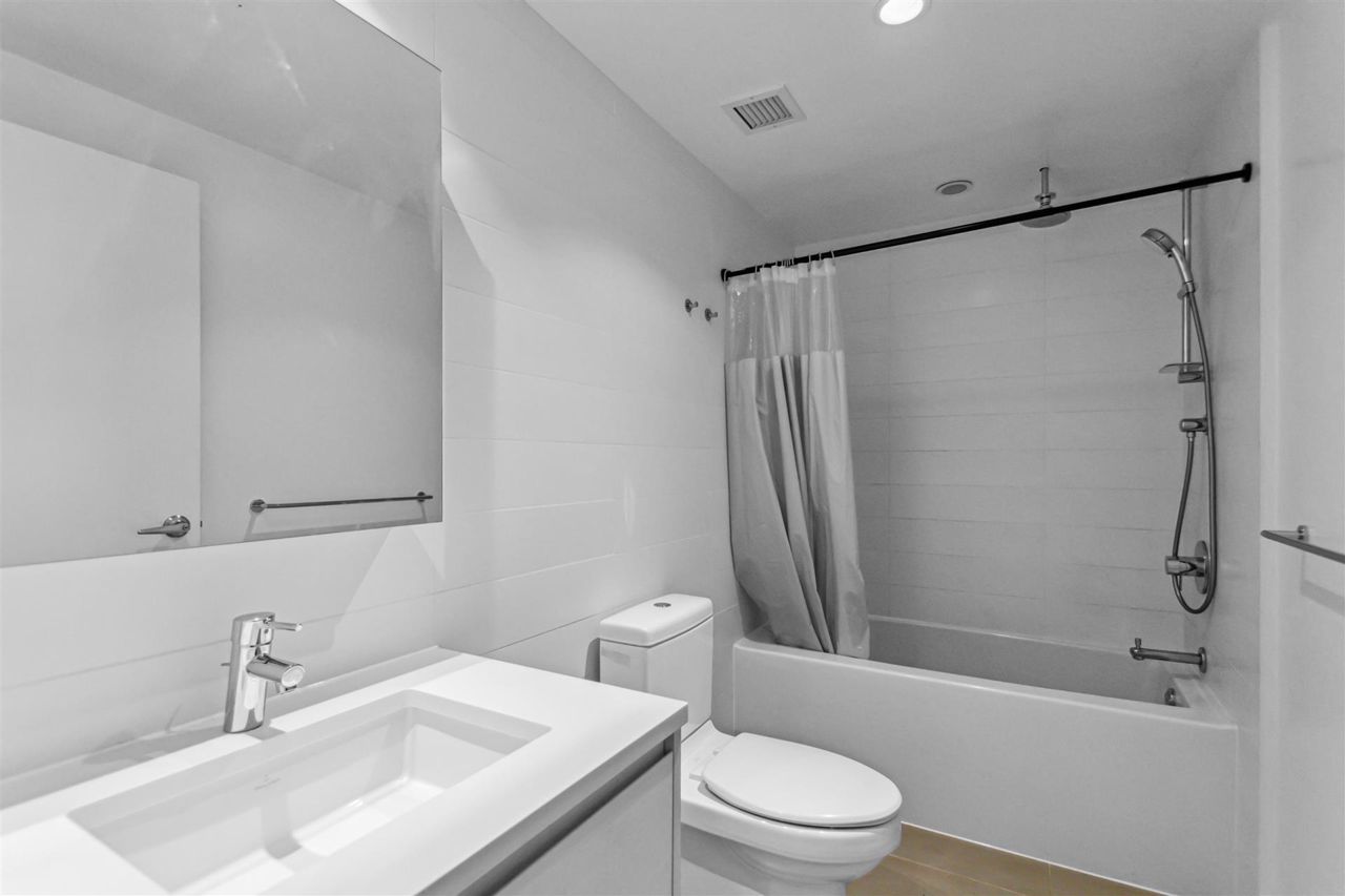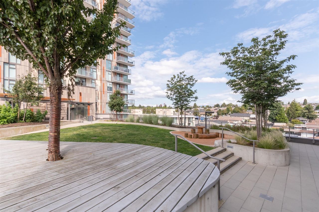 Welcome home to the 2 BED + DEN at FRASER COMMONS, bright unit w/South-west exposure. Sound proof huge windows ensure abundant natural light. Premium Branded Gas range top, Quartz Countertop, European Cabinetry & laminate flooring throughout the unit. Rainfall shower. Brought to you by team Serracan together with award-winning Farncl architecture and Cristina Oberti interior design. This unit boasts 9'3 ceilings & AC for year round comfort. One EV parking stall & one storage locker. Complete amenities for you to enjoy inc gym, central plaza, lounge w/kitchenette, study rooms. Rooftop Terrace Garden w/BBQ to bring you the best of Vancouver living. Walking distance to transit, groceries & shops. Minutes drive to Skytrain Station with easy access to Airport, Downtown, T&T, Langara & UBC.