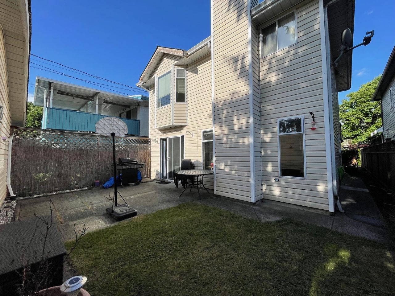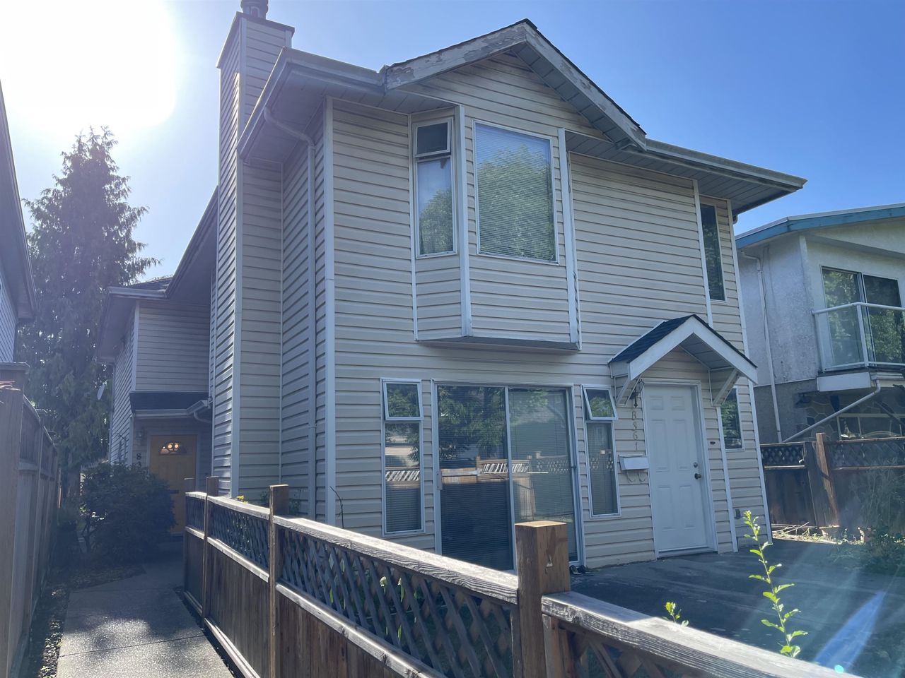 A prime location in the Marpole community! Beautiful back 1/2 duplex with private backyard. East & West facing w/ lots of natural lights inside. Very efficient floor plan with open concept in living, dining & kitchen. Comes with 1 single garage parking & a wood burning fireplace. Good size living & dining rooms. Kitchen with eating area. 3 bedrooms up, master bedroom with 2 closets, security system. Short walk to Sky train, Marine Gateway, T & T, Churchill Secondary + Wilfred Laurier Elementary. All measurements are approximately, buyer to verify. Roof is 8 yrs. old. 1 yr old dryer. 4 yr old hot water tank. First open house Sat/Sun June 17/18 2-4 pm. Offers, if any, to be email on June 19, before 7:30 pm.