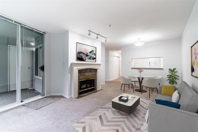Welcome to the BOARDWALK. Lifestyle & accessibility, with the Fraser River and the Fraser Foreshore Trail at your doorstep, this complex is walking distance to Gladstone-Riverside Park, Fraserview Golf Course, River Front Park, and the River District. This spacious 694 sqft, 1 bedroom unit features INSUITE laundry and pantry, ample storage, open dining and living area with spacious kitchen, GAS fireplace, a large walk-in closet, and private walk-out patio to green space. Move in ready with fresh paint, updated carpets/blinds (2019) and newer dishwasher/microwave/stove. 2 storage and 1 parking! This complex features a fitness gym, guest suites, bike storage and workshop room. Close to all the restaurants, coffee shops, shopping, and amenities the RIVER DISTRICT has to offer. By appt only.