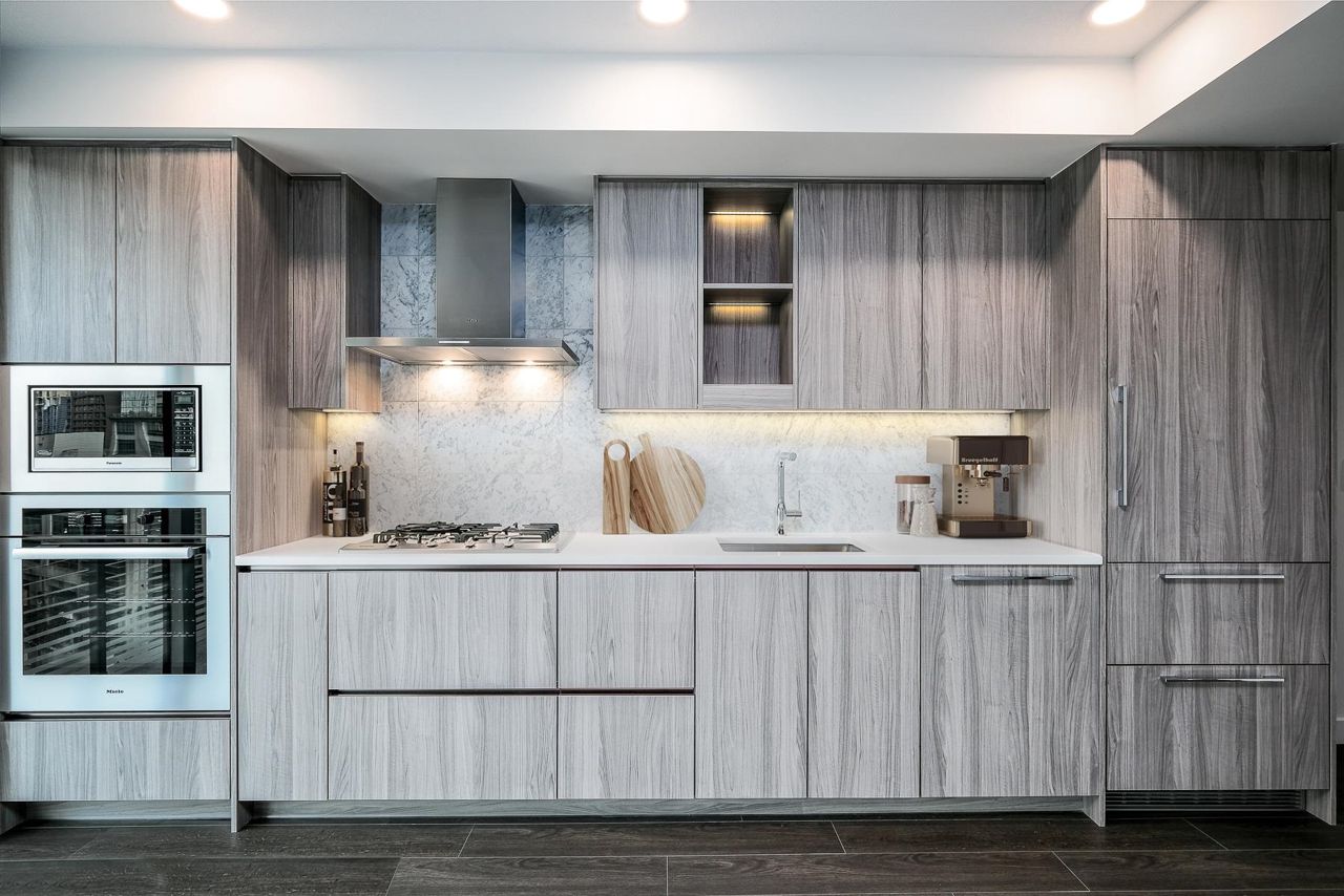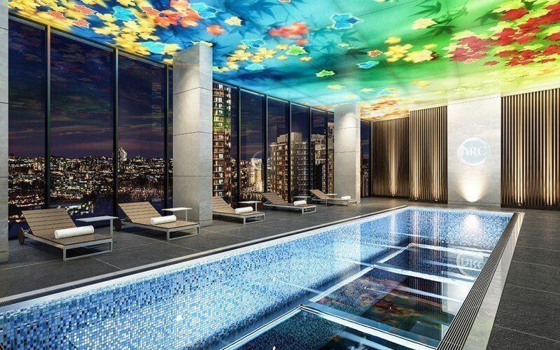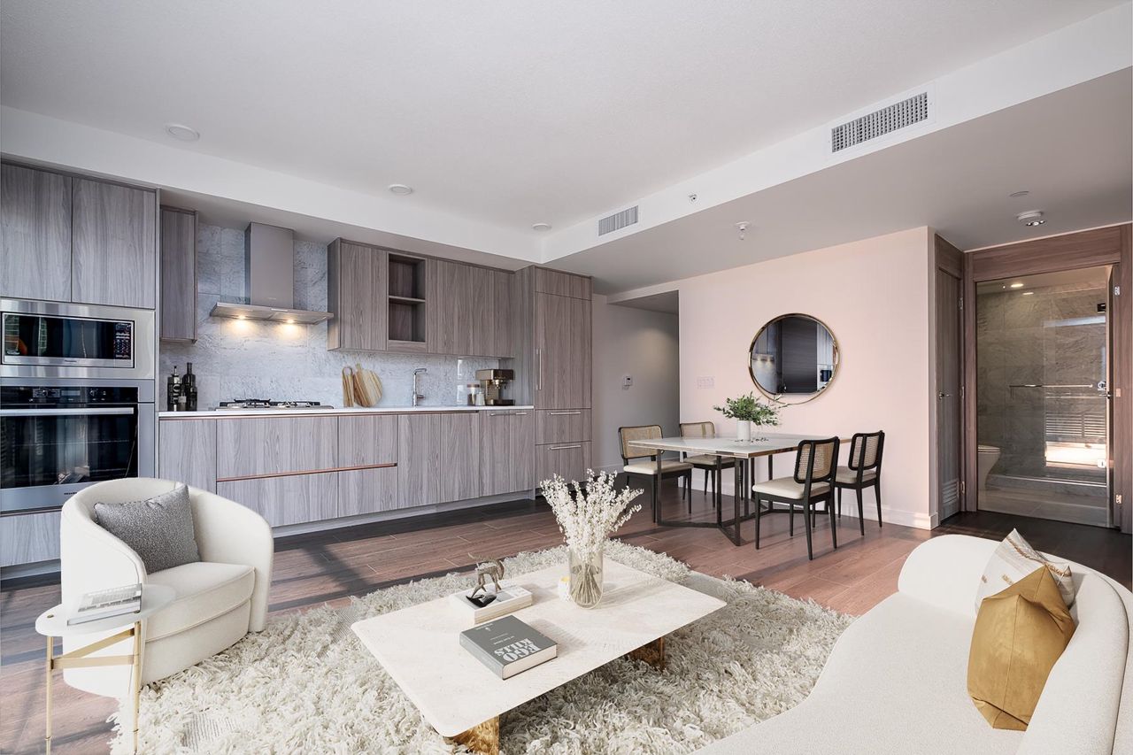 An open-plan 2-bedroom plus den condo at the architecturally significant Arc building, downtown’s Cambie bridge gateway statement. This corner home feels like a high-end hotel suite and features AC, millwork details, and a double sliding door to the patio space. The sleek & efficient kitchen has integrated Miele appliances, marble backsplash, and gas cooktop. The majority of the bathroom surfaces are finished in marble, with an under-lit floating vanity. The Arc is a boldly designed development by Concord with gorgeous amenities within its internationally recognized Skybridge design. Amenities include Grand Lounge including catering kitchen, fitness facility, swimming pool with glass base, 24-hour concierge, and EV parking. 1 parking stall and 1 locker is included.