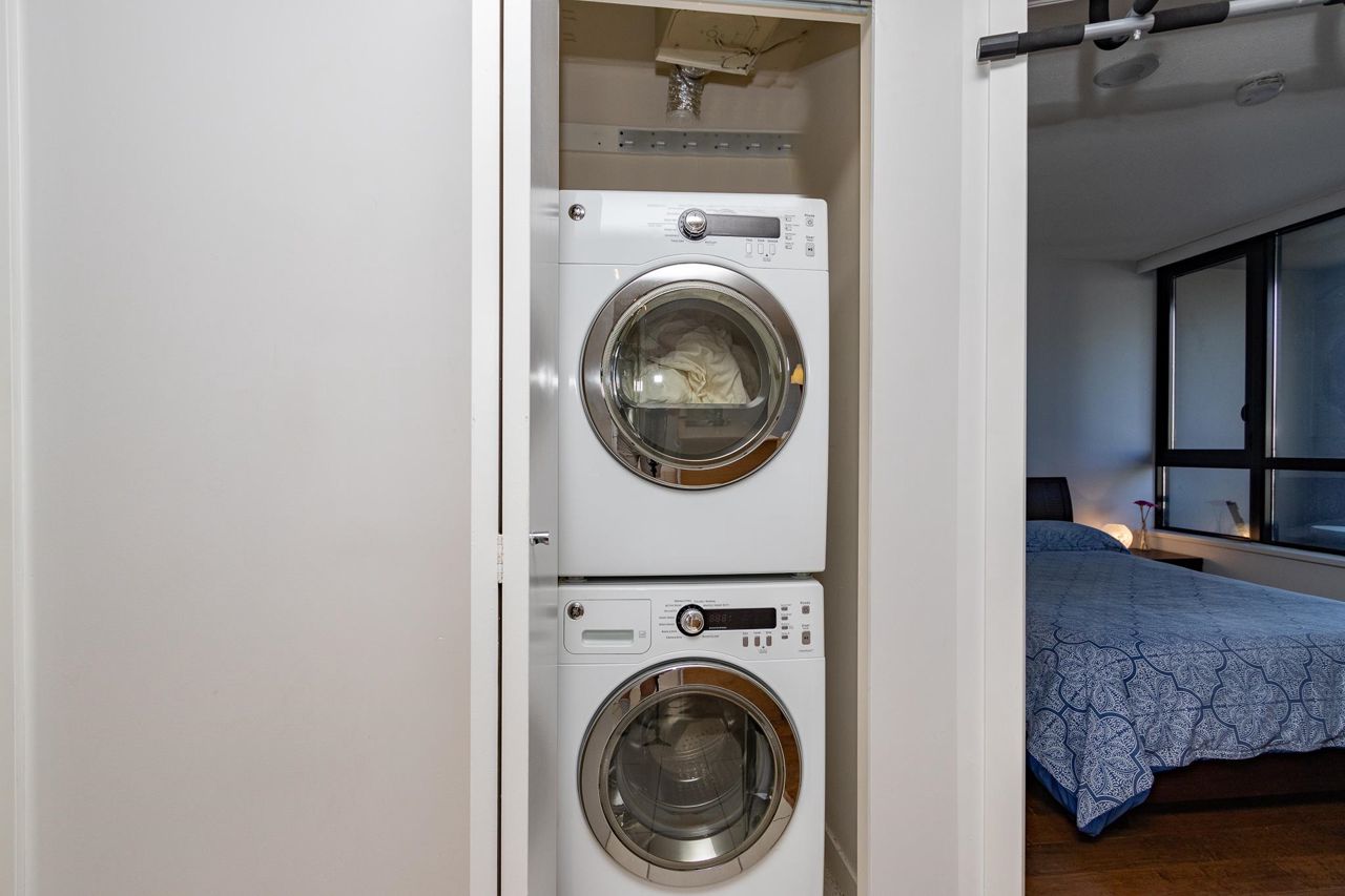 Welcome to YALETOWN PARK II. This immaculate 1 bedroom+den suite is an EXCELLENT $$ turnkey investment, the perfect starter home, corporate suite or convenient downtown pied-a-terre! Parking + Locker + fully furnished! Functional layout with laminate flooring, balcony, in-suite laundry and great amenities incl guest suite and visitor parking. Perfectly situated within walking distance to transit, restaurants, shopping and everything that Yaletown and Vancouver has to offer. PETS+RENTALS friendly.