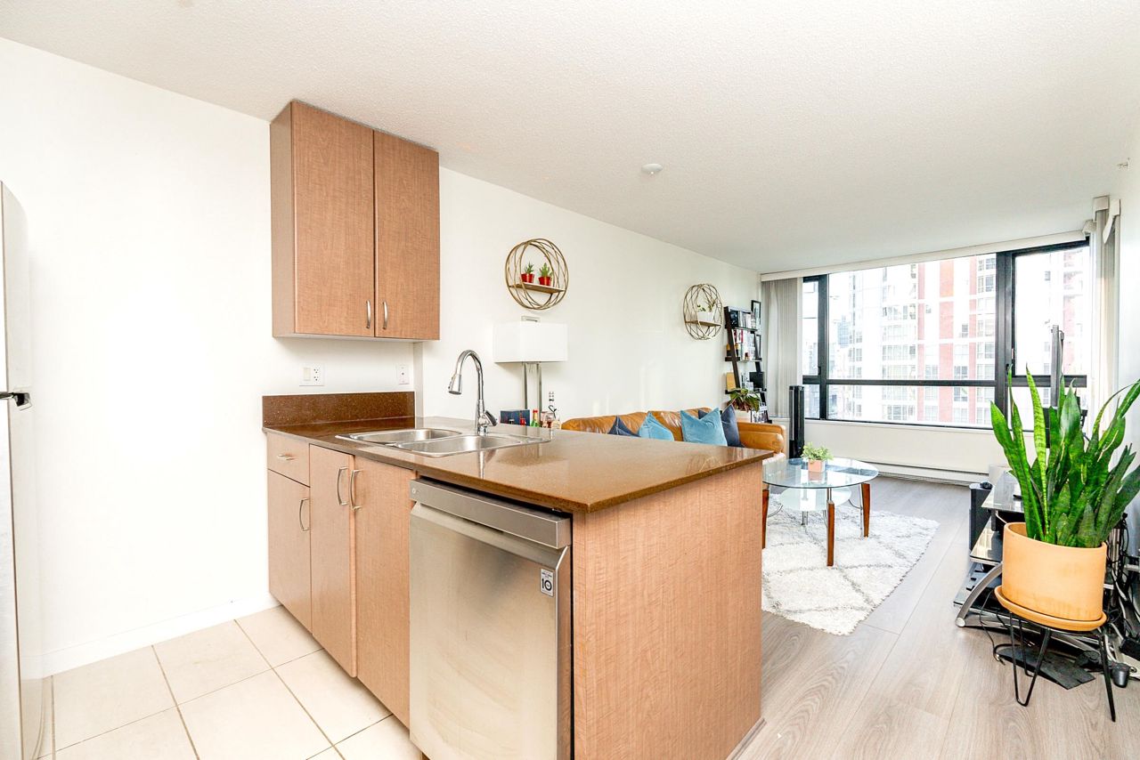 Don't miss this opportunity at Yaletown Park. Northeast facing, Updated 1 bed 1 bath & Den with stunning views of the Mountain & City! This home features an efficient, open floor plan, plenty of natural light and a spacious patio. Updates includes newer stainless steel fridge (2022), newer LG dishwasher (2021), newer Bosch Washer & Dryer (2020) and newer wide plank laminate flooring throughout the living, dining, both bedrooms and flex. Amenities include Concierge and Fitness Centre. Central location and only steps from restaurants, cafes, shops, Expo & Canada skytrain lines and the seawall. Ideal to live in or rent out as demand is high. 1 Parking 1 Storage included. 2 cats or 2 dogs allowed. Rental: 3 months min.