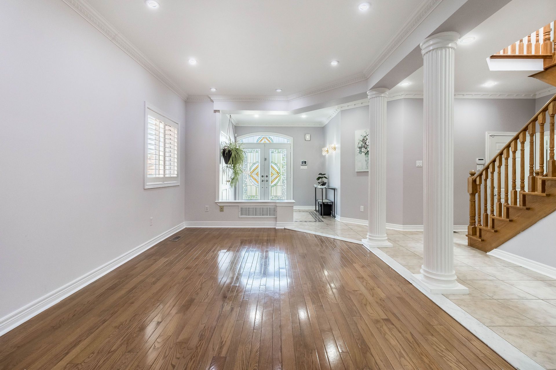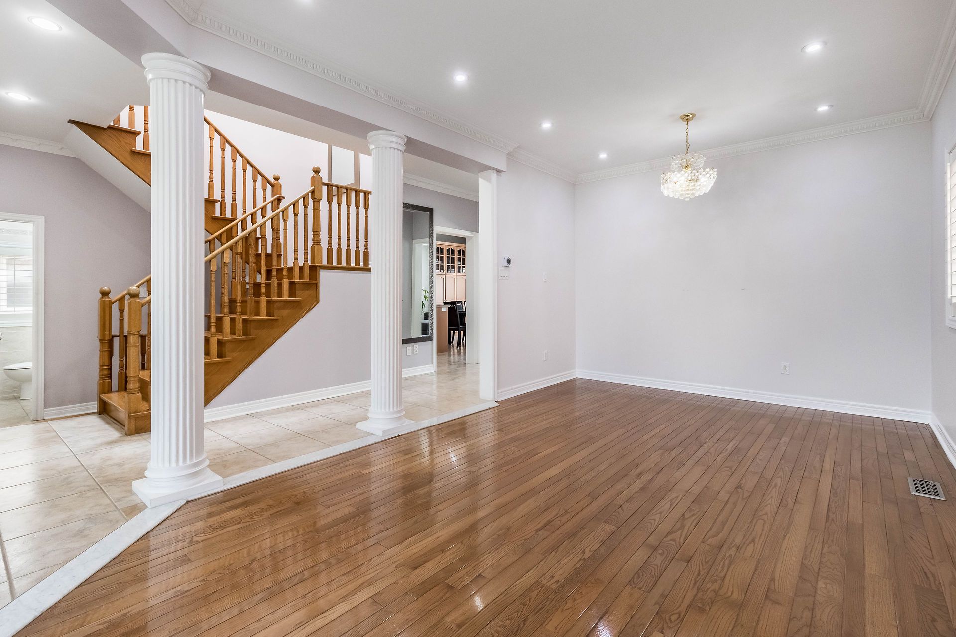 Hardwood Floor Moulded Ceiling Open Concept