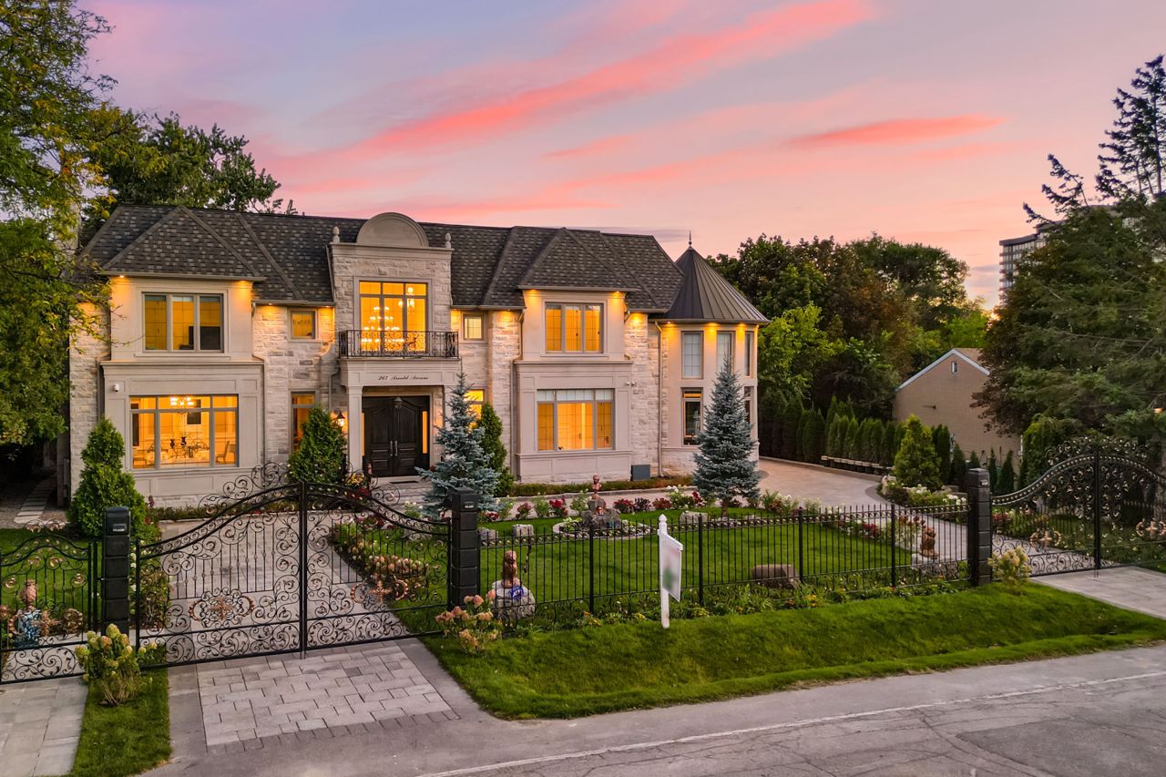 Breathtaking Gated masterpiece of opulence & grandeur, nestled on 100x178 ft Lot, where luxury meets architectural brilliance.Extraordinary 6+1 Br 9 Bathrm mansion is testament to elegance,designed to exceed the highest standards of sophistication. Luxourious Grand 2 Storey foyer, adorned w crystal chandelier & 24ft Ceiling*Main Flr 11ft, 2nd flr 12ft, Bsmt 10ft**10,500 sqft Of Lux Liv Space*Meticulous attention to detail from intricate moldings & handcrafted woodwork to radiant marble floors. Kit Is a culinary masterpiece W top-of-the-line appl, Large Marble Island & C/T.Lux O/C Liv & Din Area W Beveled Mirror, Wine Cellar & Stone FP. Lux Wood Paneled 2 Storey Office W B/I Shelves. Prime Br sanctuary W 7PC Lux Spa Like Ensuite, FP, B/I Shelves & Huge W/I Closet W Skylight*2nd Prime Br W Ensuite/Closet On Main Flr For BabyBoomers*Fin W/O Bsmt W State-of-the-art home theater, wine cellar,Wet Bar& private gym+ Turkish Spa/Steam Rm.Perfect chance to make this magnificent mansion your home**Multiple Skylights Thru/Out, E-L-E-V-A-T-O-R**Turkish Spa/Steam Rm**Wainscoting, Coffered Ceilings, Main Level Guest Suite,Ent Unit In Family Rm,Security Sys, Audio Sys, Heated Floors Basement.