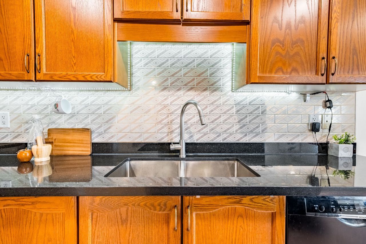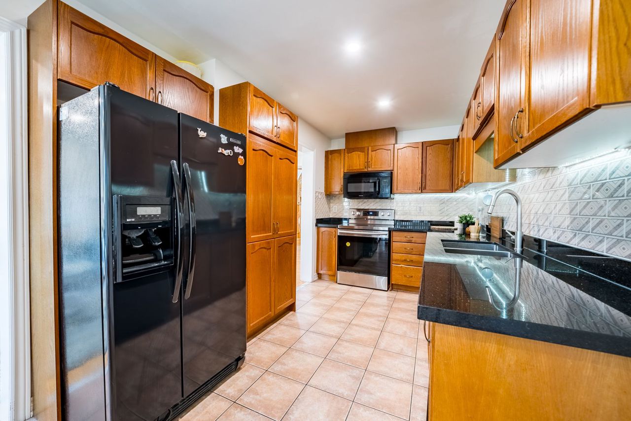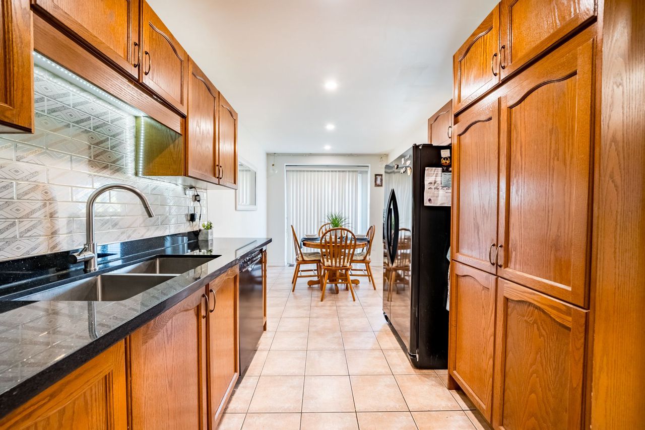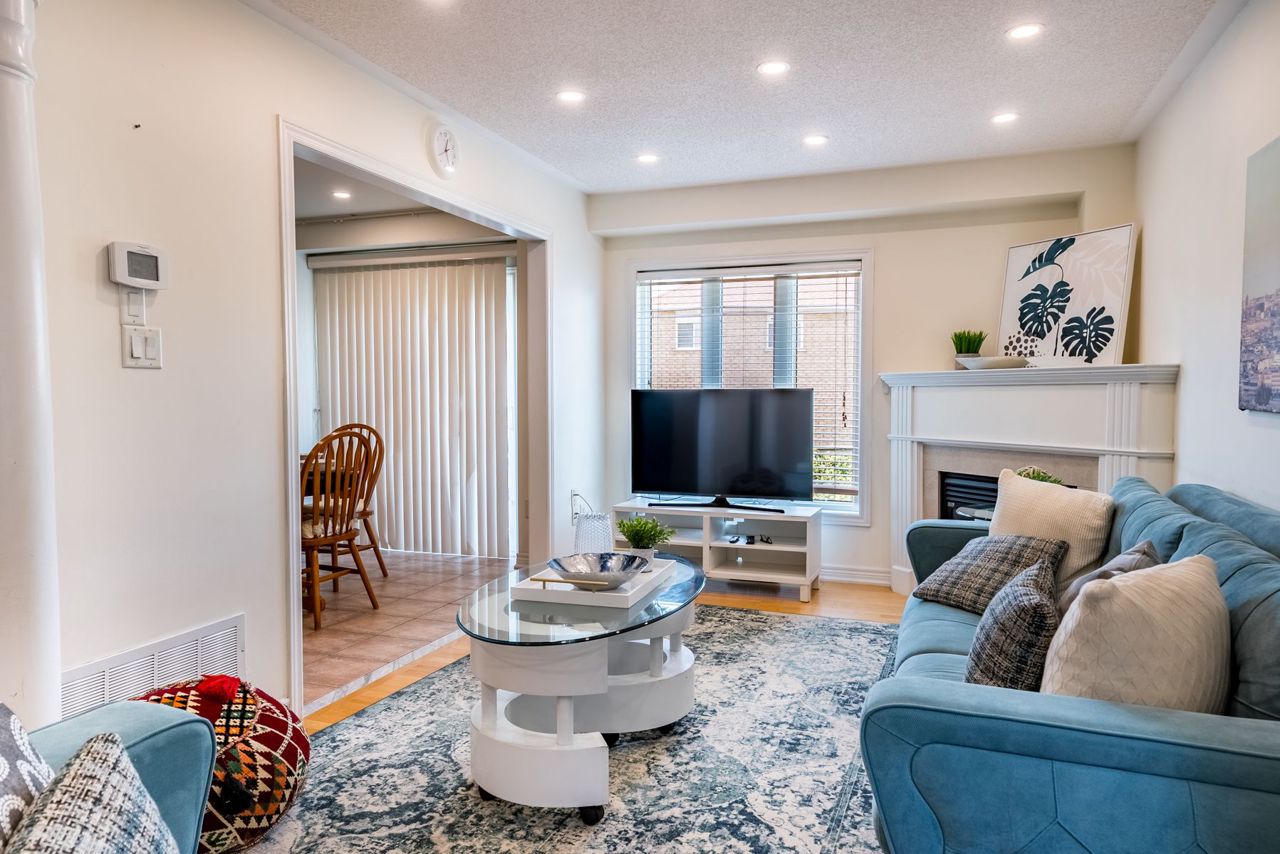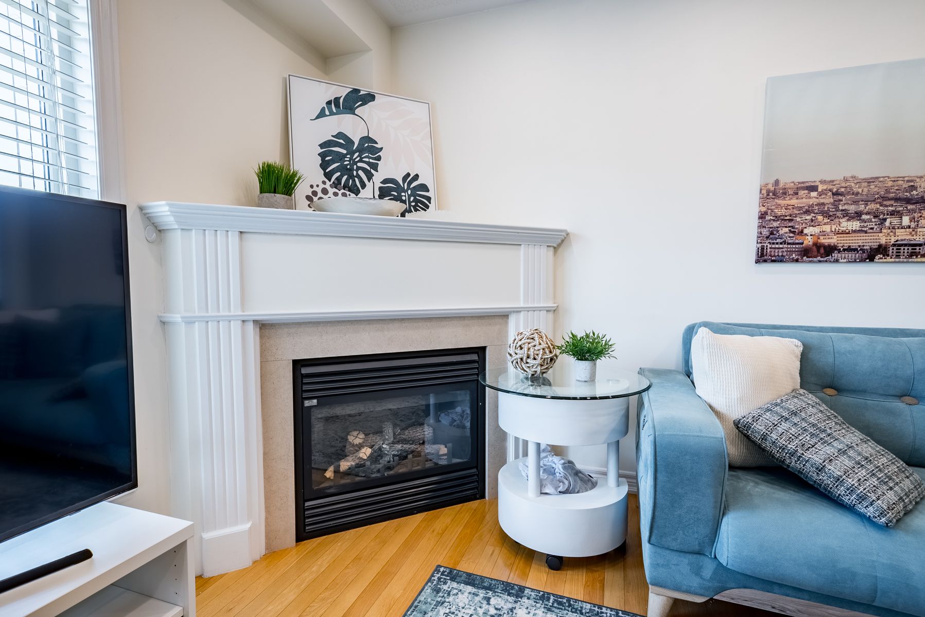 The main floor features an updated kitchen, pot lights & hardwood in the living and dining, as well as a gas fireplace in the living room.