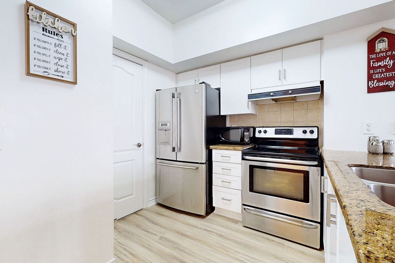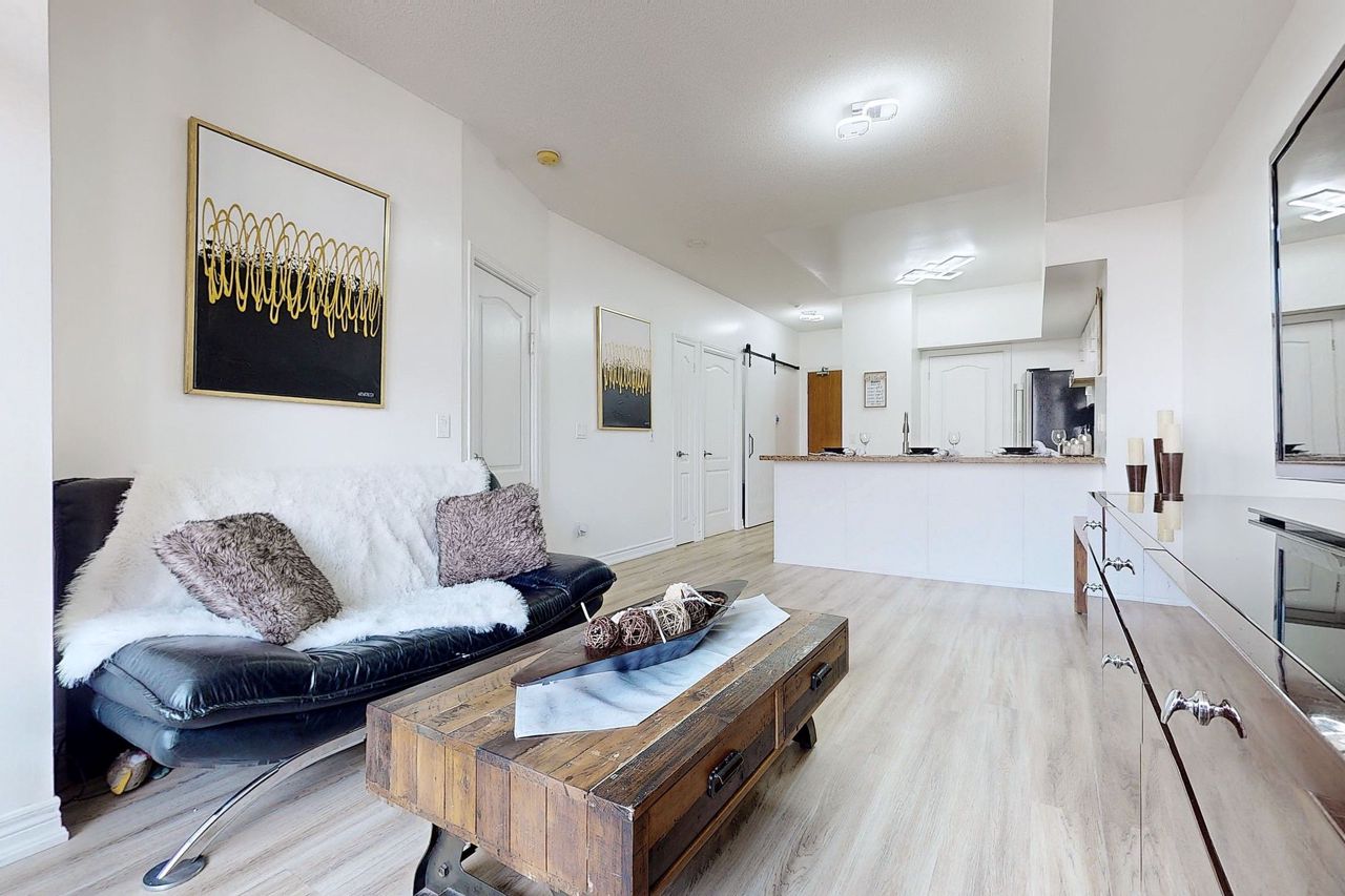 Remarks Luxury Building; Beautiful Spacious Unit lower penthouse 9 ft celing new vinyl Floors Throughout; Modern Kitchen included:S/S Appliances, Granite Counter Tops ; Primary Br With Walk In closet 4Pc Ensuite; Den is Converted To Second Bedroom; Porcelain Tiles ! Open View ;Best Amenities ,Steps To Best Schools, Restaurants , Walmart, Promenade, Transportation. Hwy 7 And 407 Very Rarely To Offer