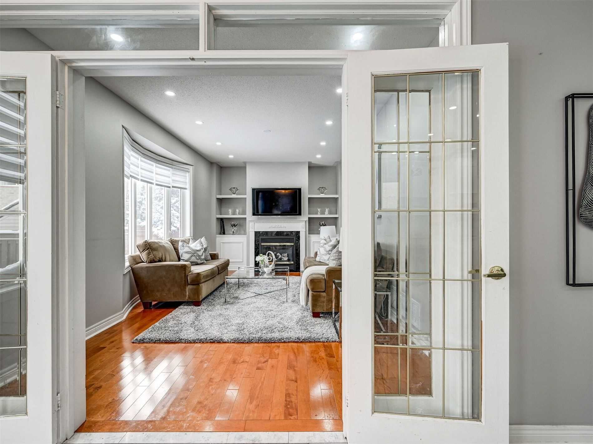Hardwood Floor Bay Window Gas Fireplace
