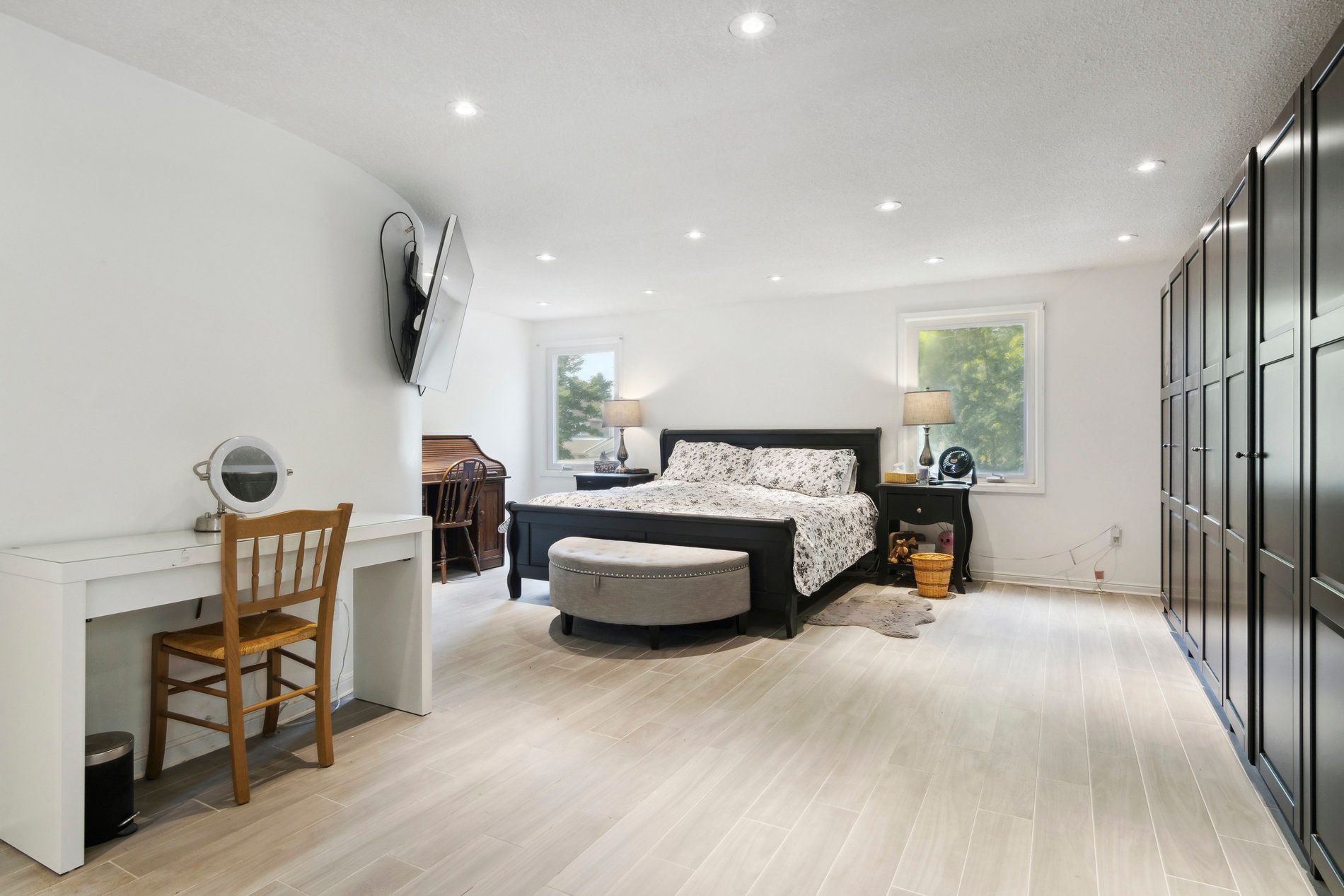 Double Closet Parquet Floor Picture Window