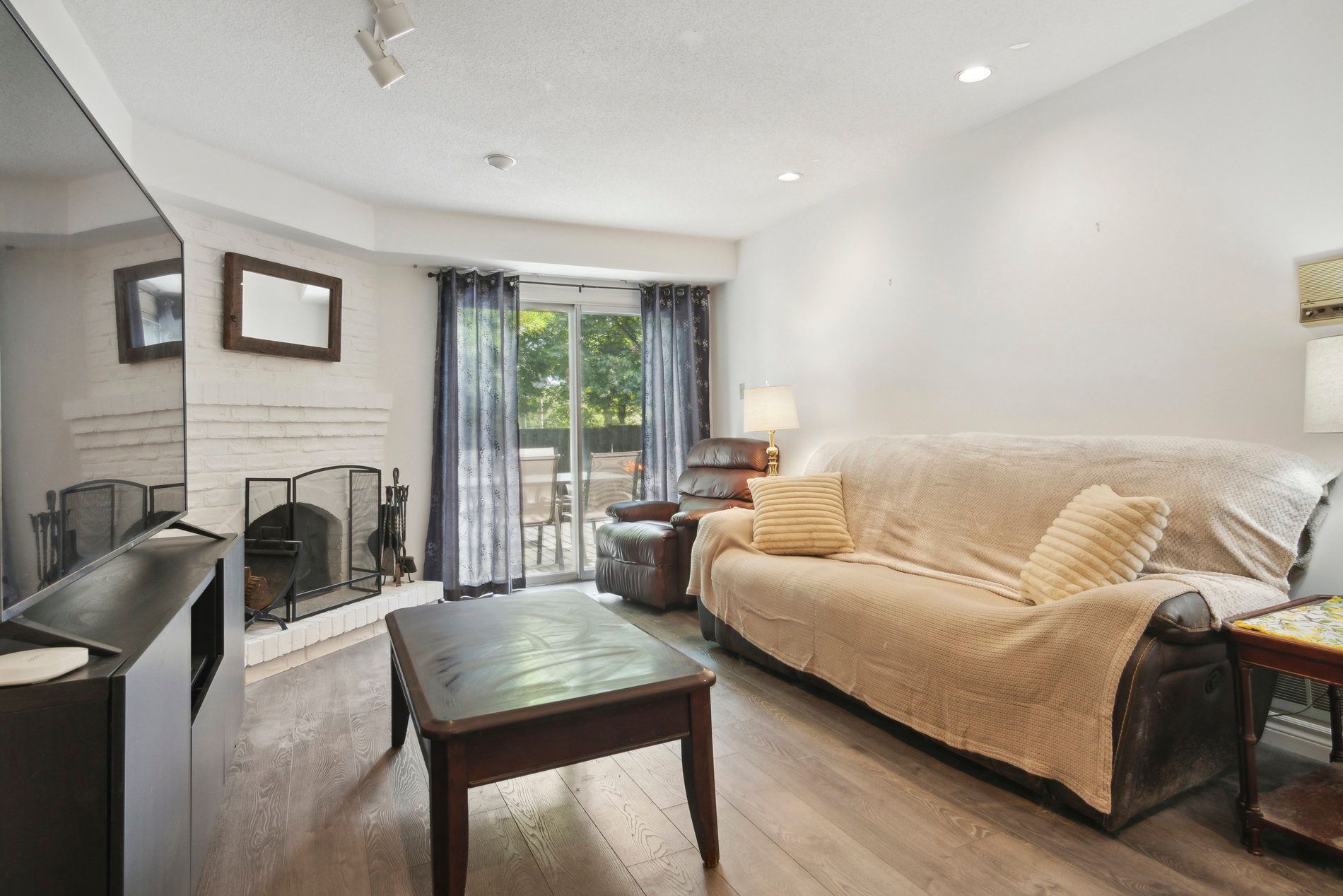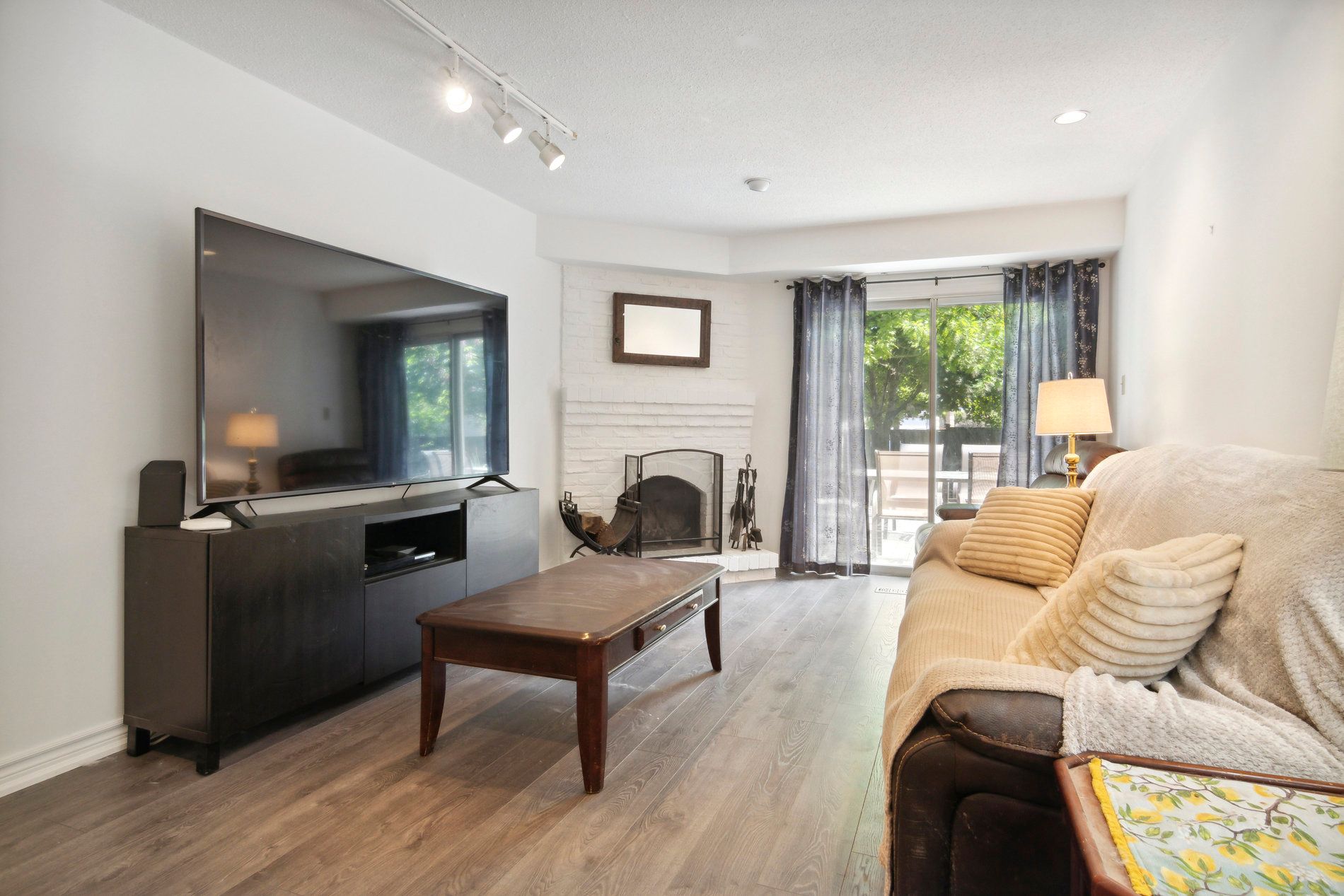 W/O To Deck Brick Fireplace Pot Lights