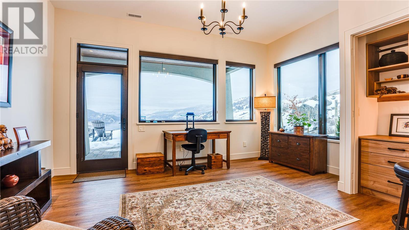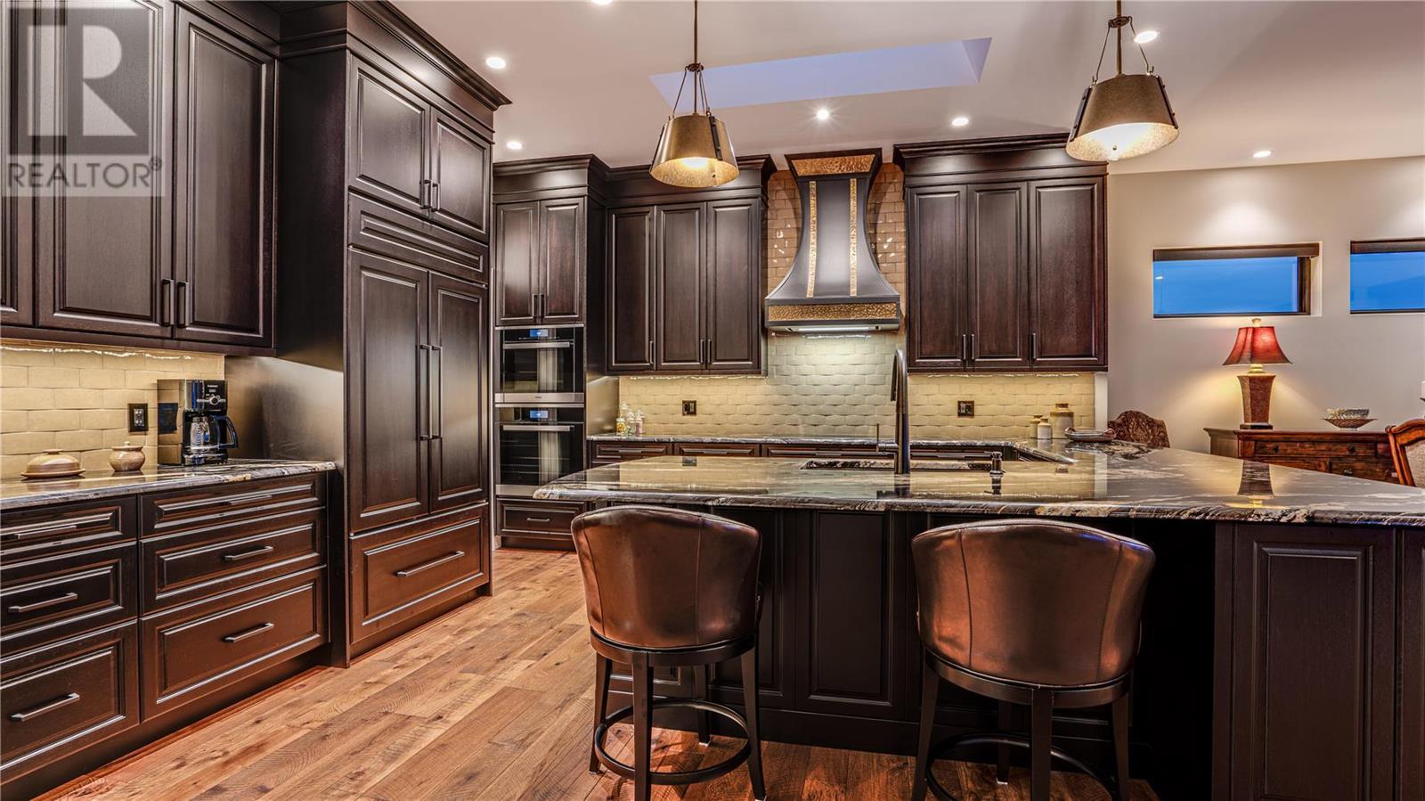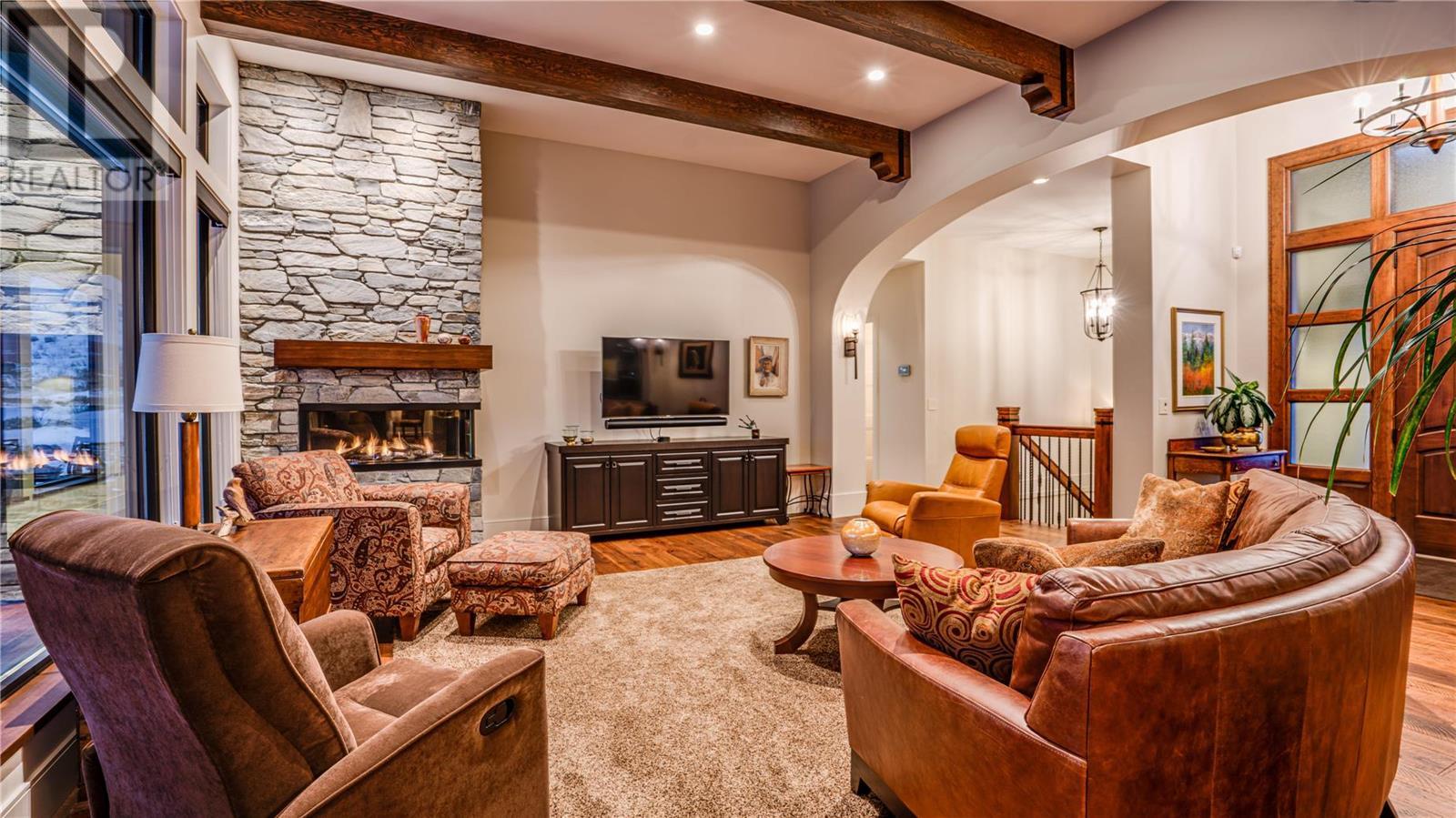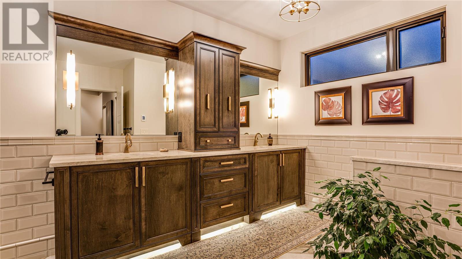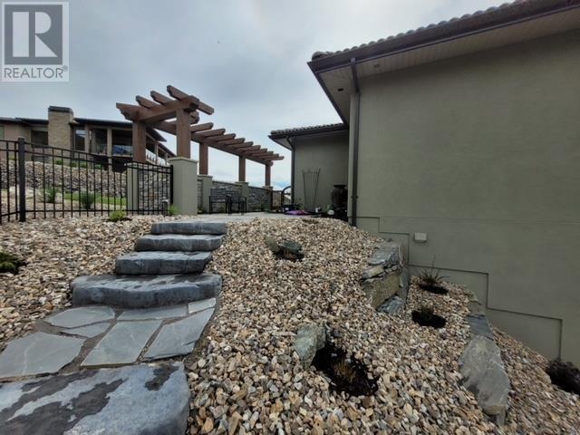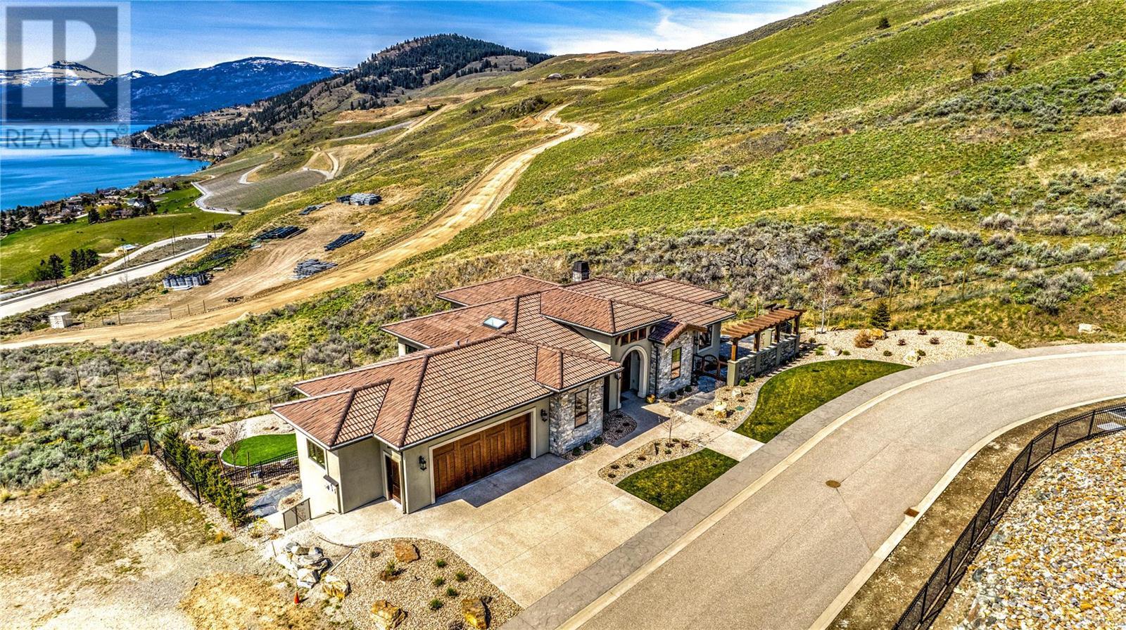 Perched above Okanagan Lake, with breathtaking unobstructed views awaits this spectacular property within a gated community that prioritizes both indoor and outdoor living and entertaining. Inside, a large open-concept layout awaits with exposed beams and natural hickory hardwood flooring. A gourmet kitchen with state-of-the-art appliances with custom made cabinetry stands adjacent to the living area with handsome natural stone-faced gas fireplace. Doors from this area lead directly out to the upper deck, ideal for seamless grill parties and al fresco dining. A main floor master suite comes complete with his and hers walk-in closets and spa-like ensuite bathroom with-in floor heating, soaker tub, walk-in glass shower and under counter motion activated lighting. Further extras on this level, include a two-piece powder room, large laundry room with great storage and a mudroom which doubles as a butler’s pantry. The lower level boasts a massive family room, complete with free standing gas fireplace, wet bar with drawer dishwasher and wine fridge. From this space, access the covered patio with sunken hot tub and impressive inground salt-water pool. Three additional bedrooms on this level combined with a bonus room and full bathroom with sauna to offer space for larger families and guests. Located within The Watermark at The Rise, this fabulous property offers access to incredible amenities for the golf enthusiast. (id:22211)